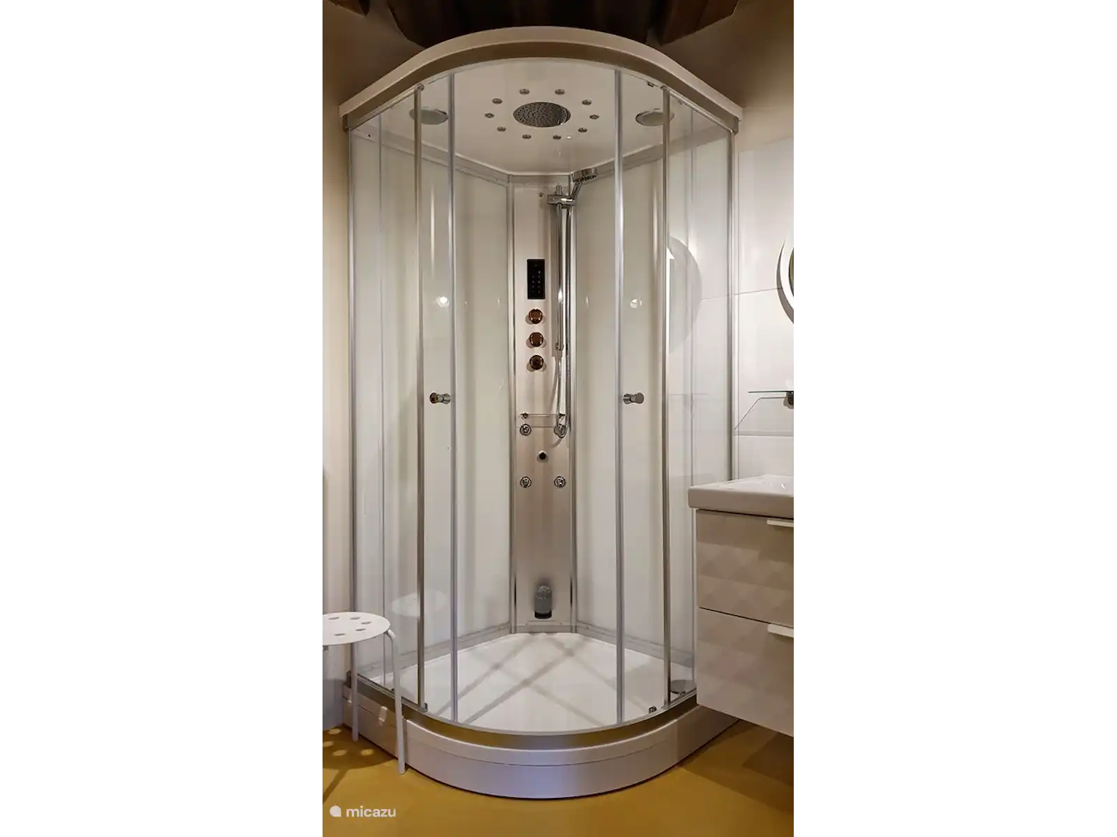 Aquadomum biedt overnachtingsmogelijkheid voor maximaal 10 personen. Eventueel kun je er met 12 personen verblijven als je de Boomhut erbij boekt. Er zijn 2 grote slaapkamers die beide geschikt zijn voor 4 personen en er is een slaapkamer voor 2 personen. Daarnaast is er een kinderbedje aanwezig, inclusief matrasje en toebehoren. Alle slaapkamers zijn voorzien van goede (boxspring)bedden inclusief linnengoed. Een van de slaapkamers heeft een eigen badkamer met stoomcabine en wastafelmeubel. De luxe badkamer op de begane grond heeft een ligbad, douche met sunshower (infrarood- en zonnepaneel), toilet/bidet, en een wastafelmeubel. Ook vind je op de begane grond een sauna en nog eens 2 aparte toiletten. In de bijkeuken staat de wasmachine en zijn er droogmogelijkheden. Er staat een extra koelkast en er zijn opbergruimtes.