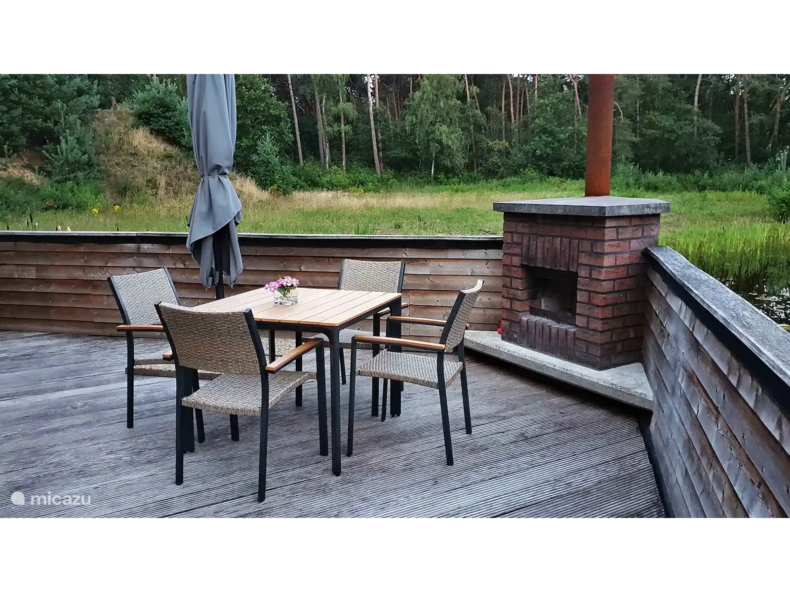 De vuurplaats (iets vanaf het huis gelegen) is een fijne plek om een heerlijk vuurtje te stoken en bijvoorbeeld broodjes te bakken, te barbecueën of marshmallows te roosteren.