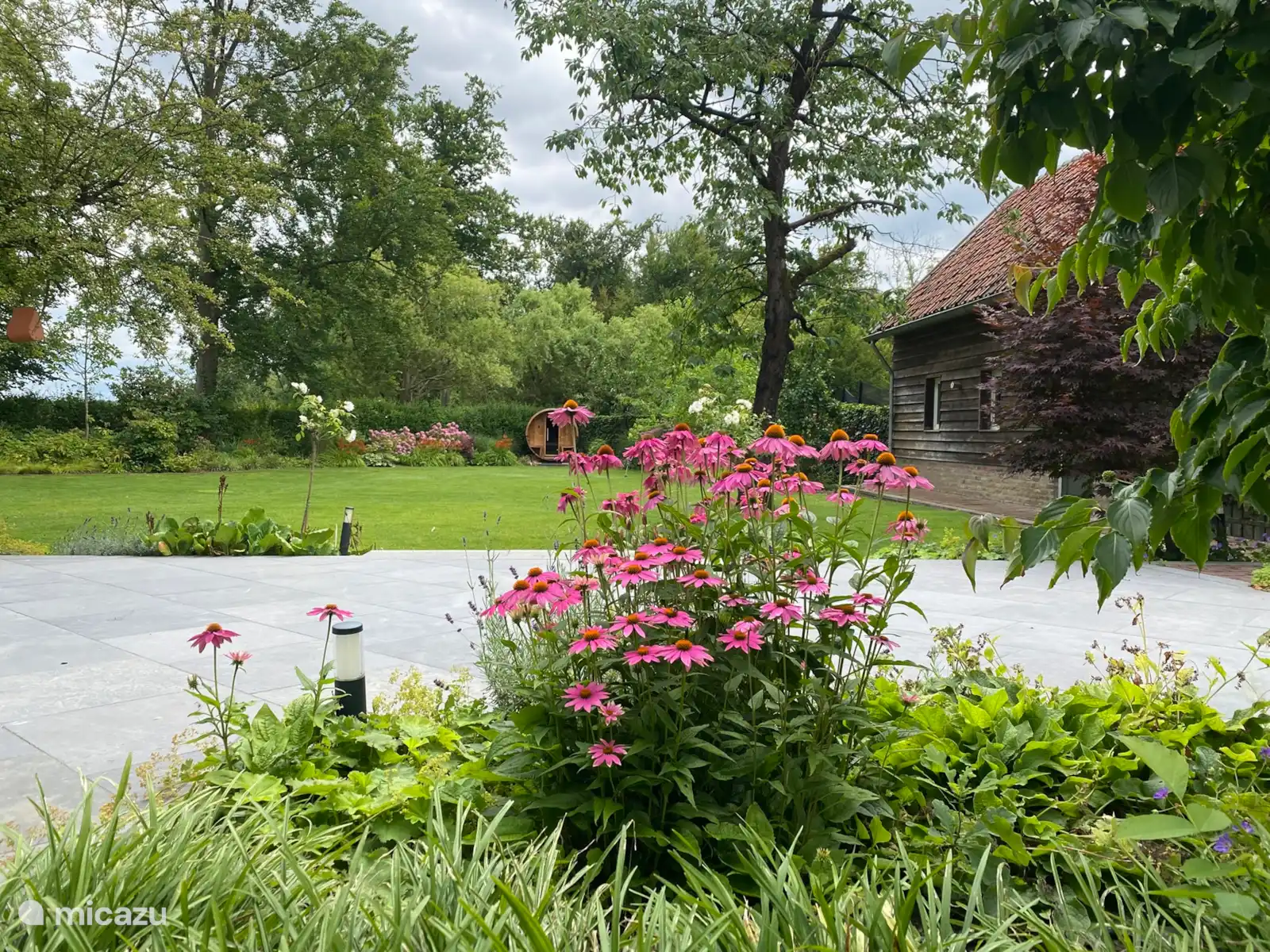 De buitenruimte van de Kasteelhoeve is eveneens aantrekkelijk, met een uitgestrekte tuin die perfect is voor ontspanning en buitenactiviteiten. Een barrel sauna in de tuin biedt een unieke mogelijkheid om te genieten van totale rust, te midden van de natuur. Of je nu een rustig moment wilt doorbrengen met een boek of een gezellige barbecue organiseert, de tuin biedt de perfecte setting.