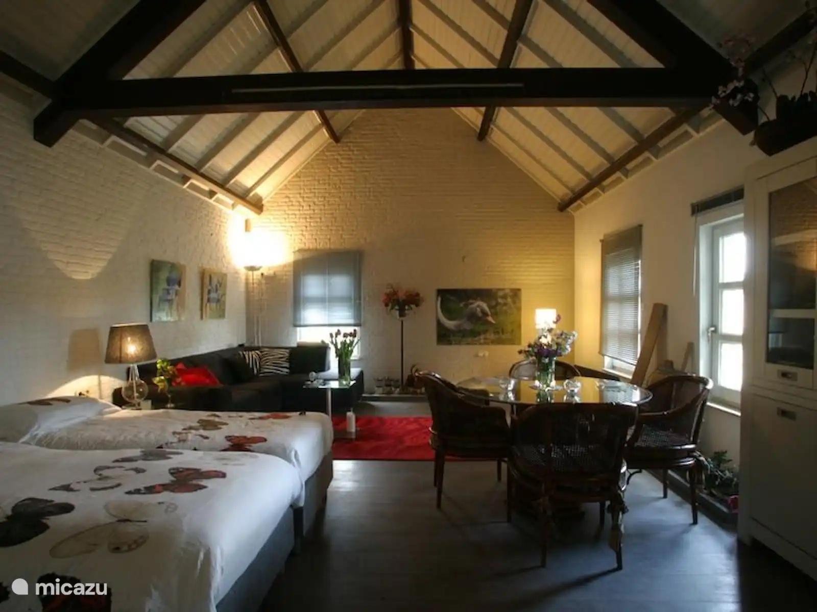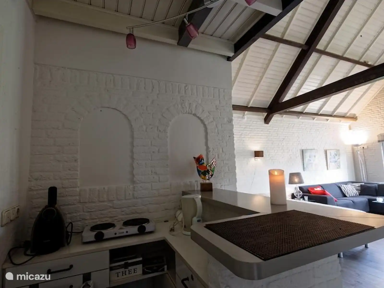 Ruimte te huur met eigen ingang, woongedeelte van 40 vierkante meter met bank, twee eenpersoonsbedden, tafel en zitstoelen en Interactieve Tv en Netflix, Disney+, Videoland, Amazon Prime als streaming diensten beschikbaar. Gratis internet via kabel (glasvezel) en Wifi aanwezig. Radio (Denon Avr) met Spotify Connect. Eigen badkamer met toilet en douche. Een koelkast en een koffiemachine en waterkoker is aanwezig. Geen keuken, wel een los electrisch kookplaatje en combi magnetron. Terras aan de zijkant van de woning die prive gebruikt kan worden. Verder BBQ op gas aanwezig in de tuin.