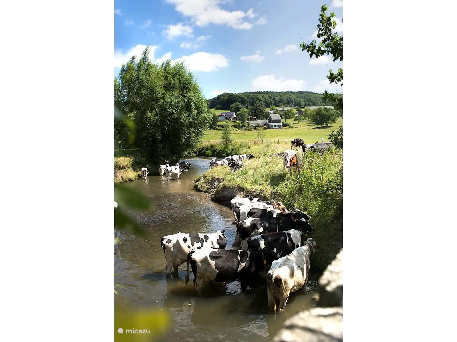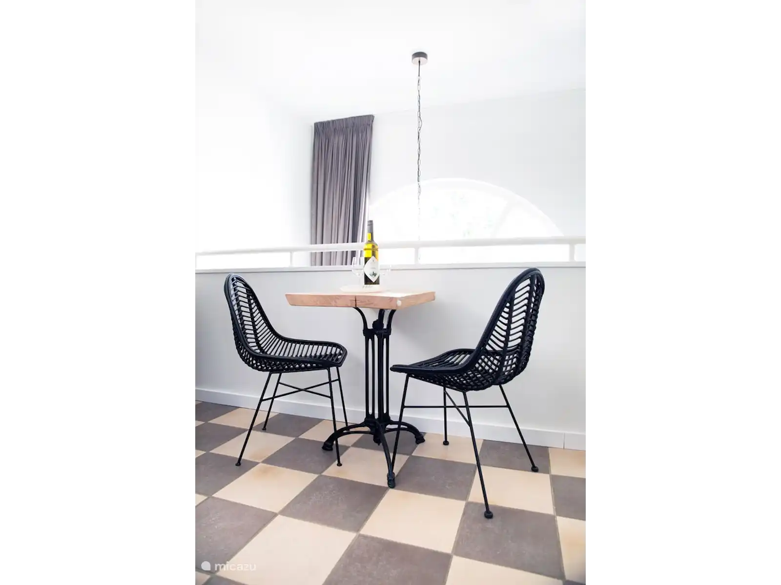 Op de eerste etage is de sfeervolle ruime woonkamer. Voorzien van een heerlijke lounge-bank, zithoekje en flat screen tv. Vanaf de vide heeft u een magnifiek uitzicht over het mooie Limburgse heuvellandschap.