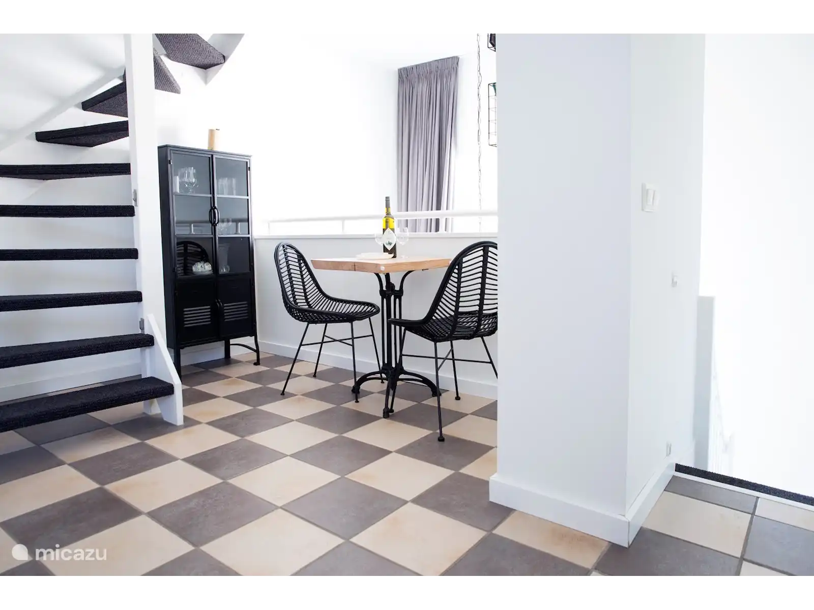 De entree is in de kleine maar goed uitgeruste keuken met eethoek. De keuken is voorzien van een vaatwasmachine, combi-magnetron, waterkoker en koffiezetapparaten (filter én Nespresso). Op de begane grond is eveneens een toilet.