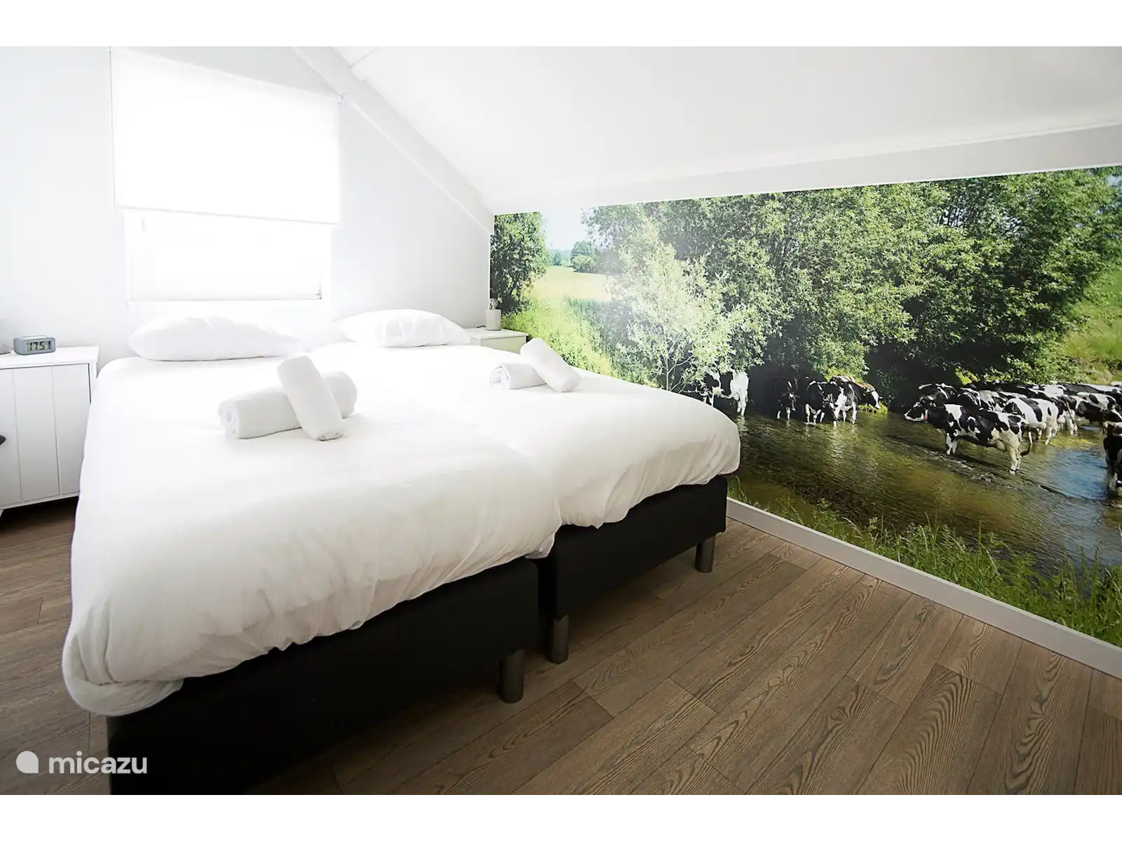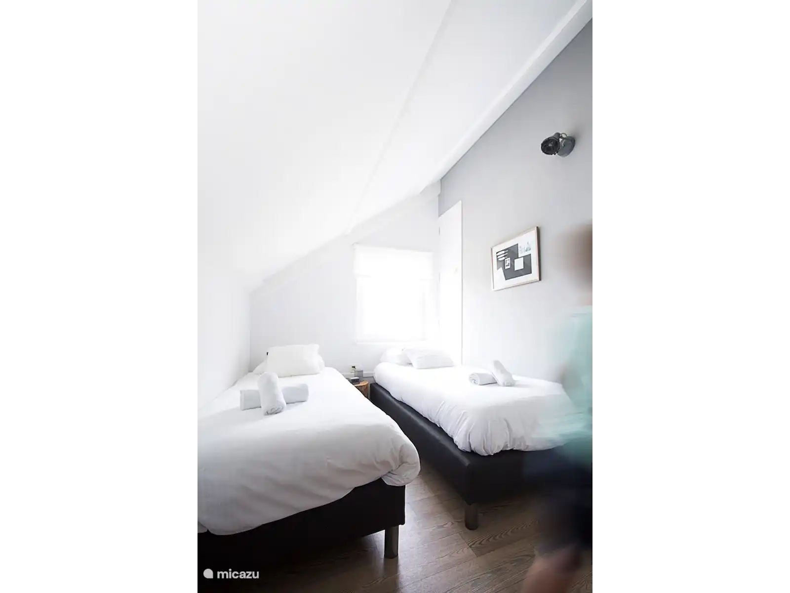 Op de tweede etage zijn twee slaapkamers met eenpersoons boxspring-bedden. Het separaat toilet en een moderne badkamer met douche bevinden zich tussen deze slaapkamers. De woning is voorzien van twee toiletten.