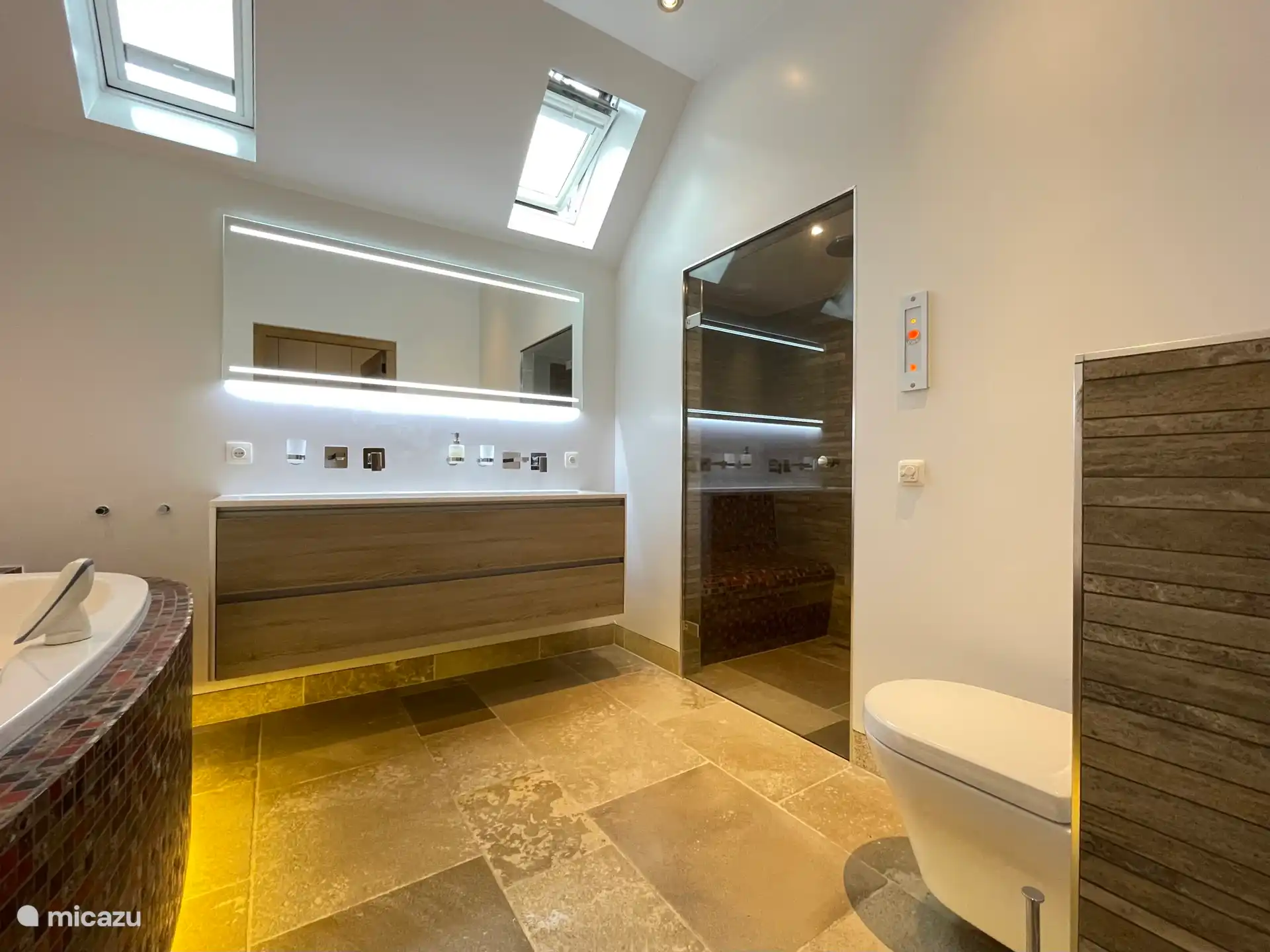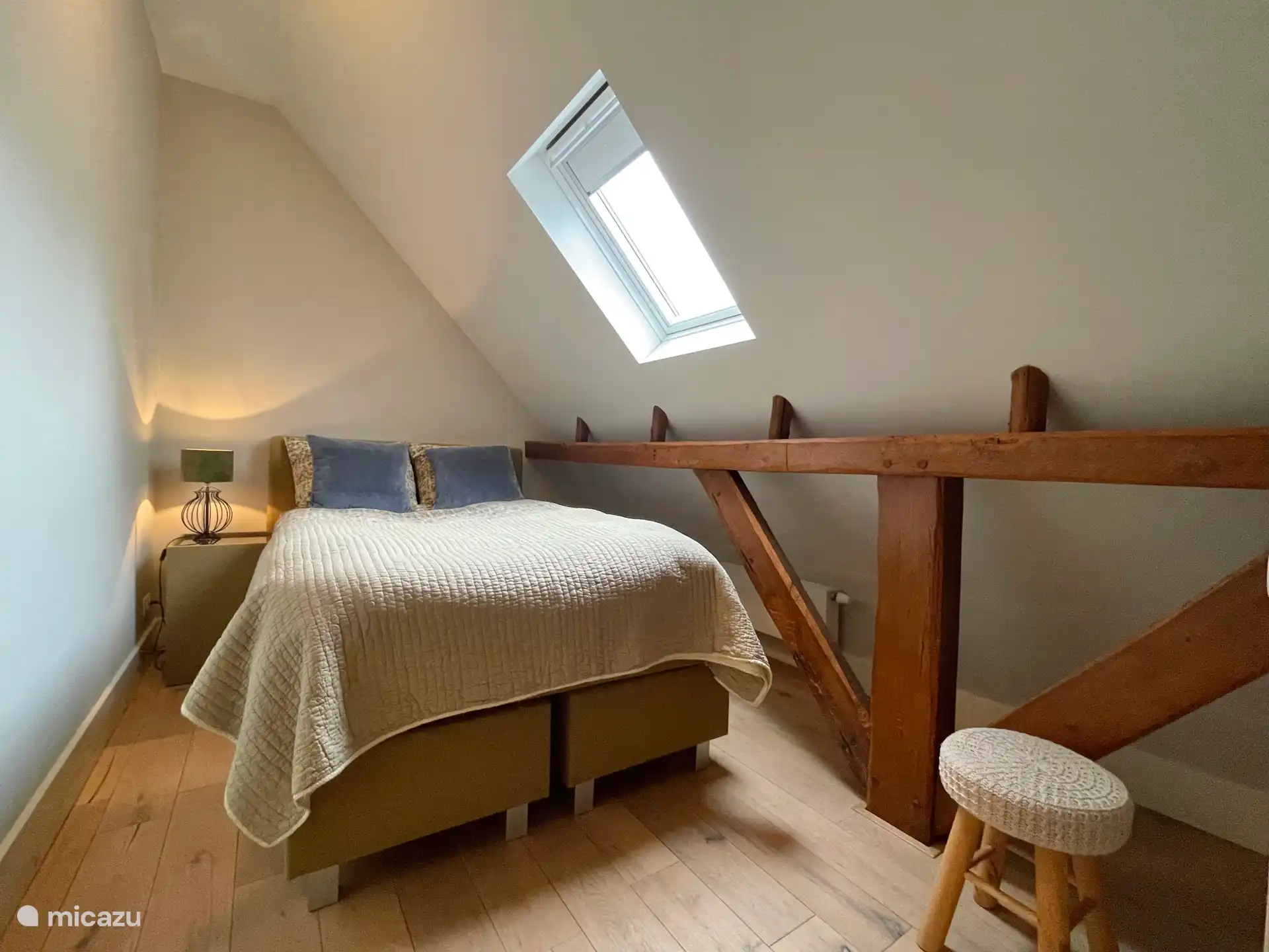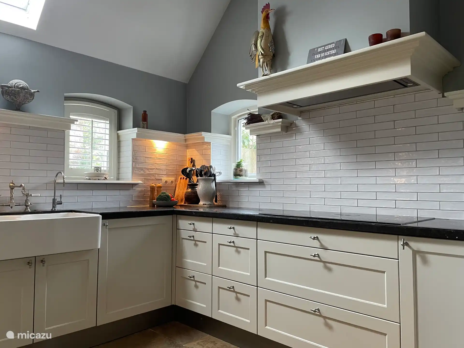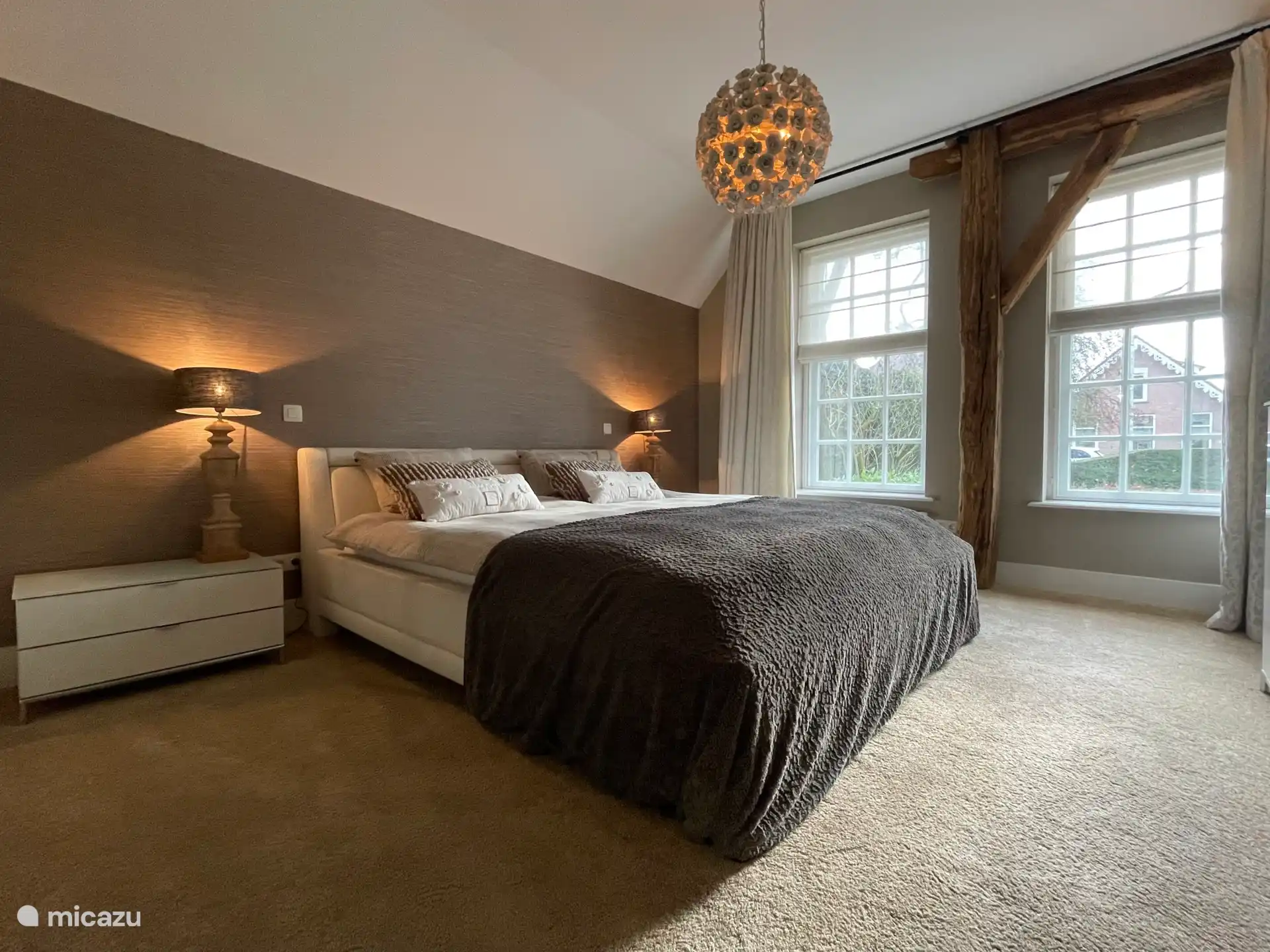 Op de begane grond bevinden zich de woonkamer met uitzicht op de molen, een knusse zithoek en een open haard, een TV, de eettafel, een moderne en volledig ingerichte keuken en een apart toilet. Via de openslaande deuren stap je zo het terras op en de tuin in. Op de eerste etage zijn er 3 lichte slaapkamers (2 slaapkamers met een tweepersoons bed en een slaapkamer met 2 eenpersoons bedden) en een prachtige badkamer met een douche, wastafel en zelfs een sauna!