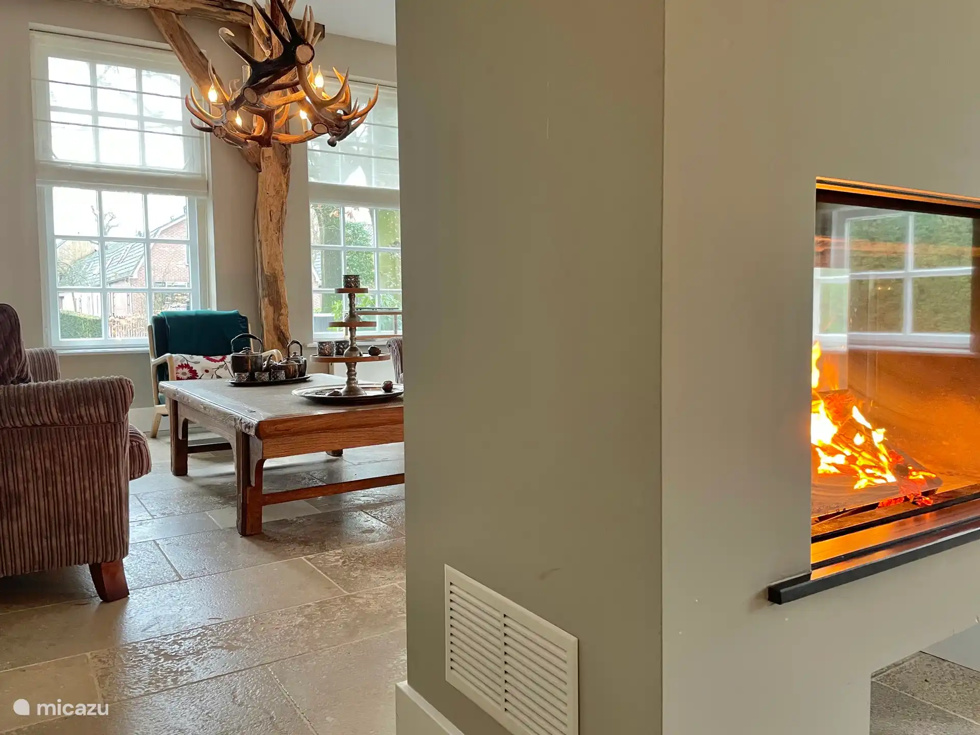 Zonnestralen is een gezellig, luxe vakantiehuis gelegen op een mooi, kleinschalig recreatiepark in de duinen van Egmond. Vanaf je terras kijk je op de gerenoveerde molen en het duinlandschap. Ook binnen geniet je van alle gemakken die je wenst in een vakantiehuis en op een koude dag zit je heerlijk bij het haardvuur.