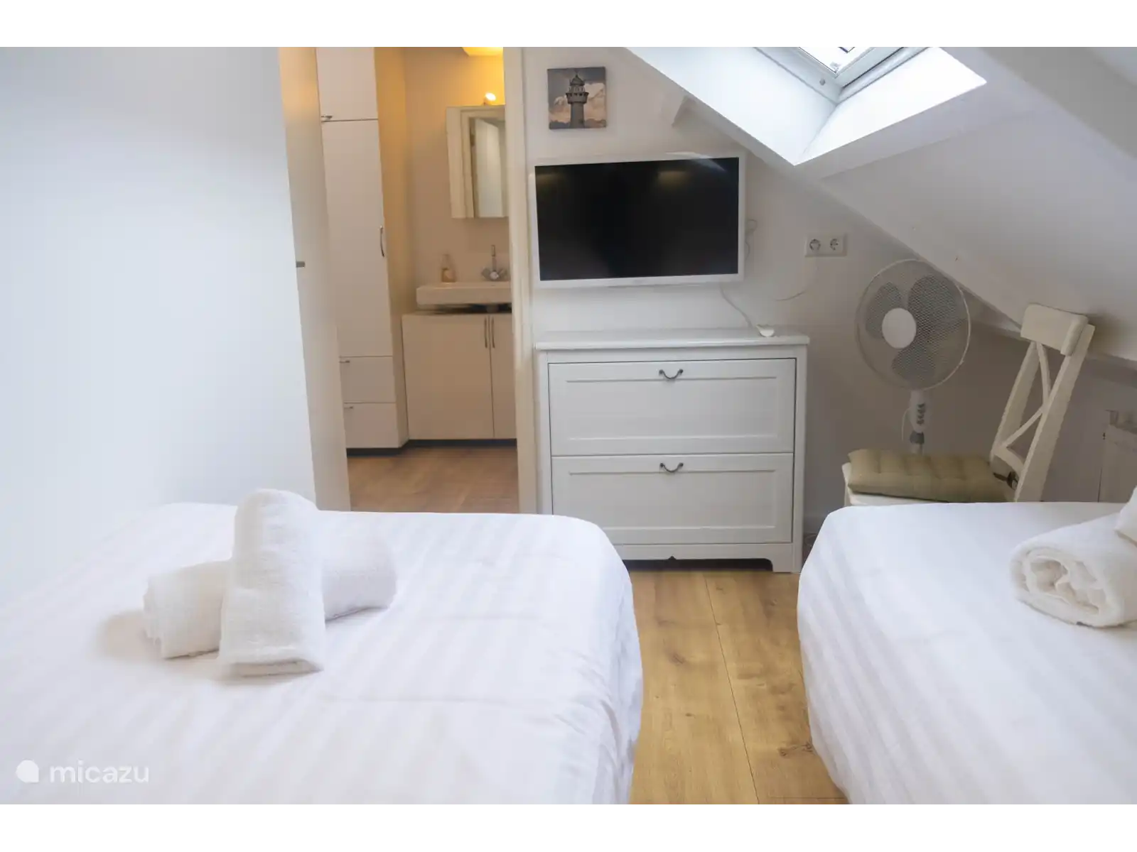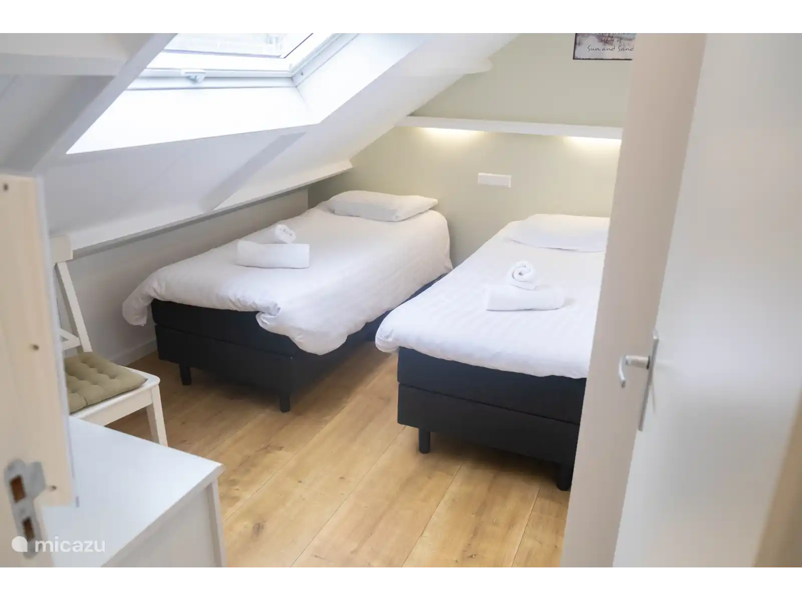 Gestrand is geschikt voor 4 personen en huisdieren zijn toegestaan. Kom binnen via uw eigen ingang. De gemonderniseerde keuken valt direct op, uiteraard van alle gemakken voorzien, zoals een Nespresso macine, filter koffie en een vaatwasser. Daarna kunt u zo de fijne ruime woonkamer binnen treden, met zowel de eettafel als een fijne zithoek met tv. De slaapkamers bevinden zich boven, deze zijn te bereiken via een open steile trap, 2 aparte slaapkamers, waarvan 1 slaapkamer beschikt over twee 1 persoonsbedden, en de tweede slaapkamer beschikt over een stapelbed. Ook is er nog een fijne kledingkast en wastafel boven. De badkamer bevindt zich op de begane grond, daar vindt u het toilet en een douche. Het terras vindt u aan de achterzijde van de woning, het afgeschermde terras geeft privacy.