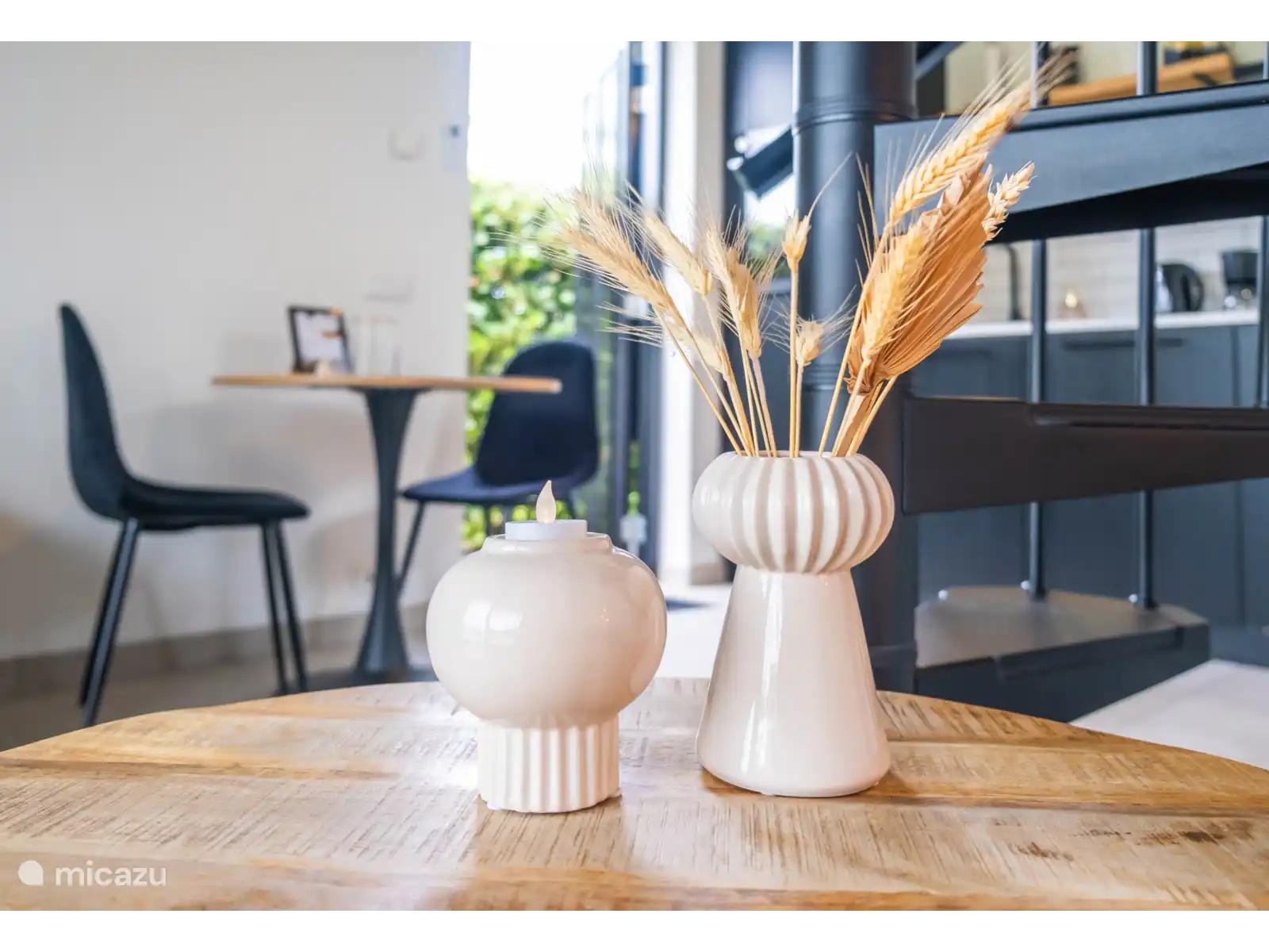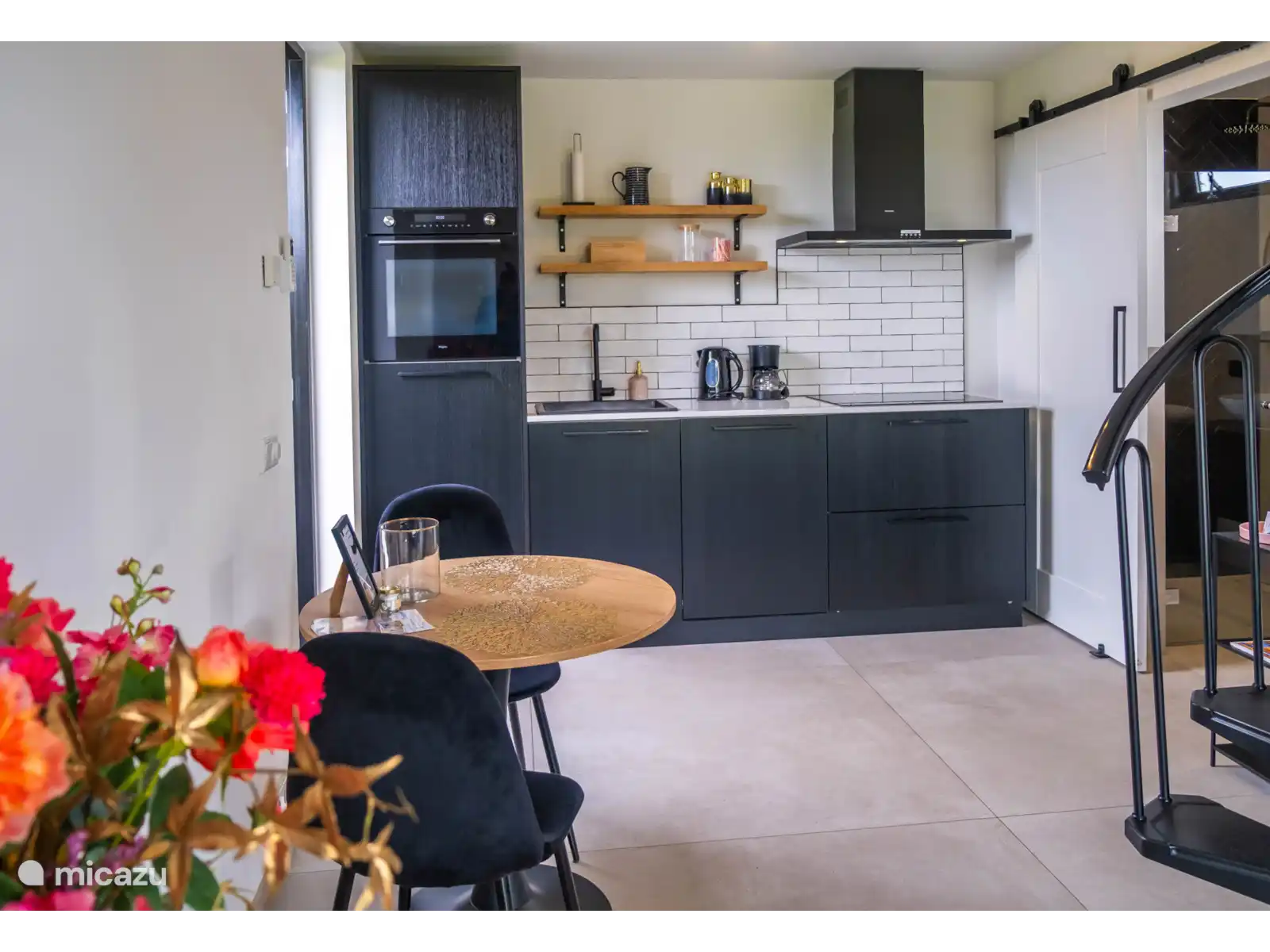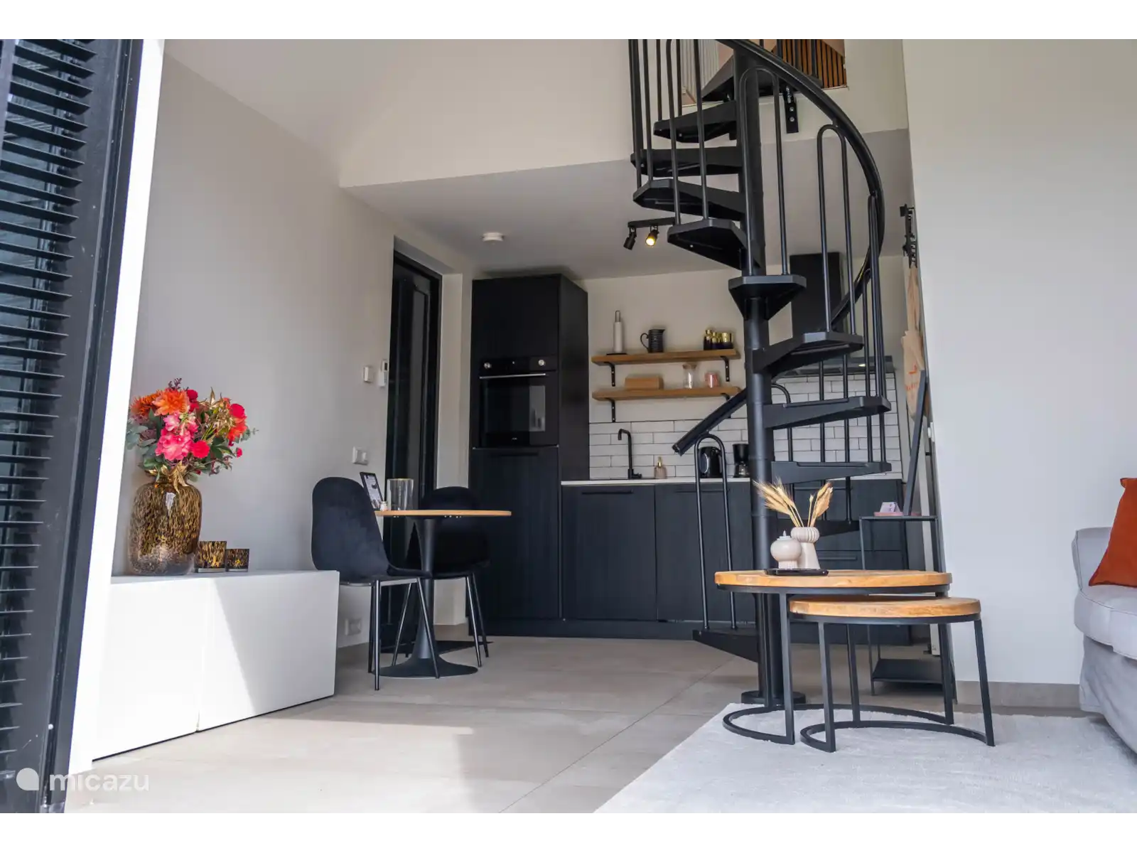 Het huis is sfeervol en met oog voor detail ingericht voor twee personen. Via de elegante wenteltrap komt u in de gezellige slaapkamer met een comfortabel tweepersoonsbed. Op de begane grond vindt u een lichte, gezellige woonkamer met Smart TV, een moderne en volledig uitgeruste keuken en een ruime badkamer met douche en toilet. De hoge plafonds geven het huisje een heerlijk ruimtelijk gevoel, terwijl de grote openslaande deuren naar de tuin een natuurlijke overgang creëren tussen binnen en buiten. Zo kunt u in elk seizoen optimaal genieten van de omgeving.