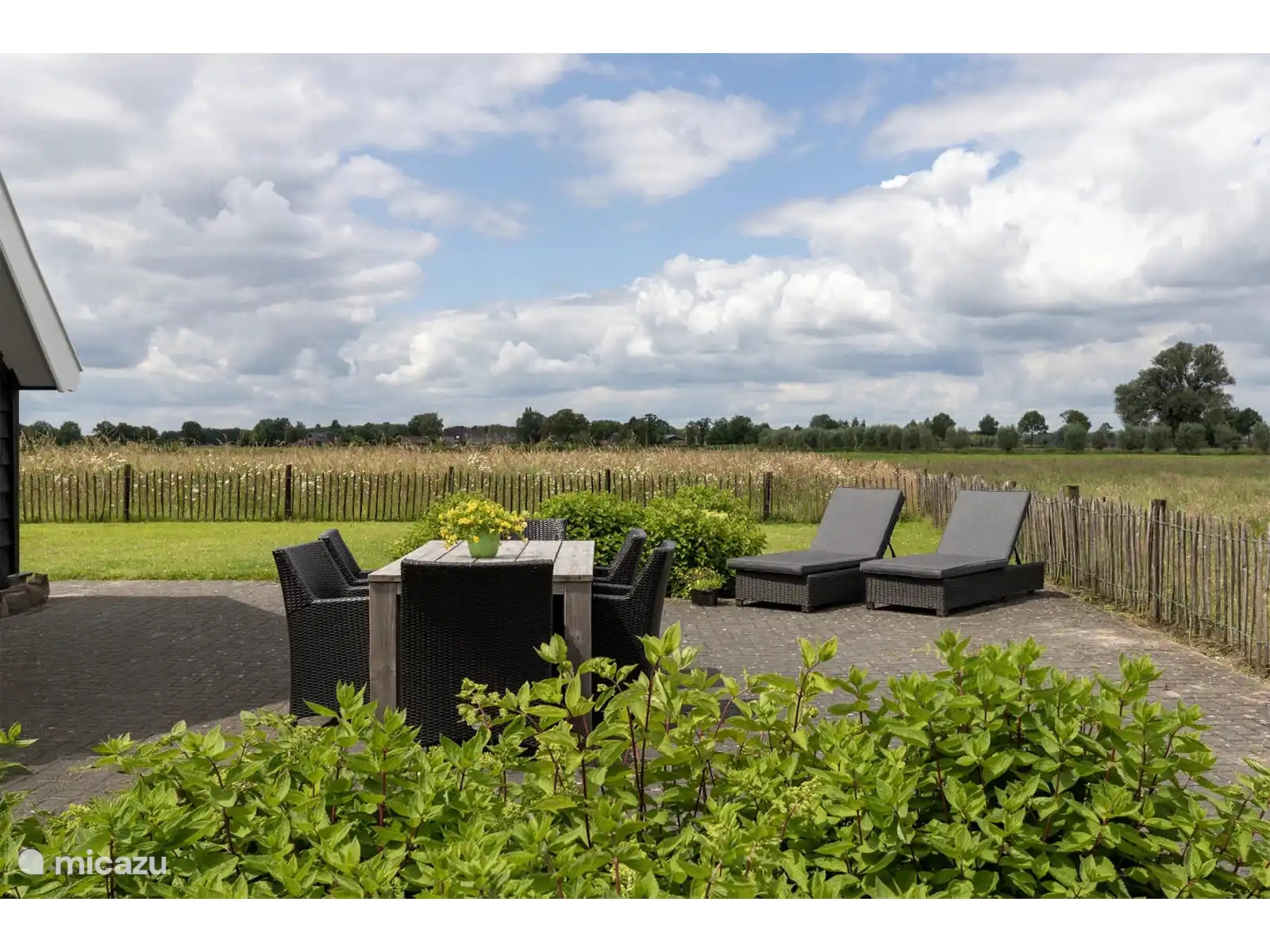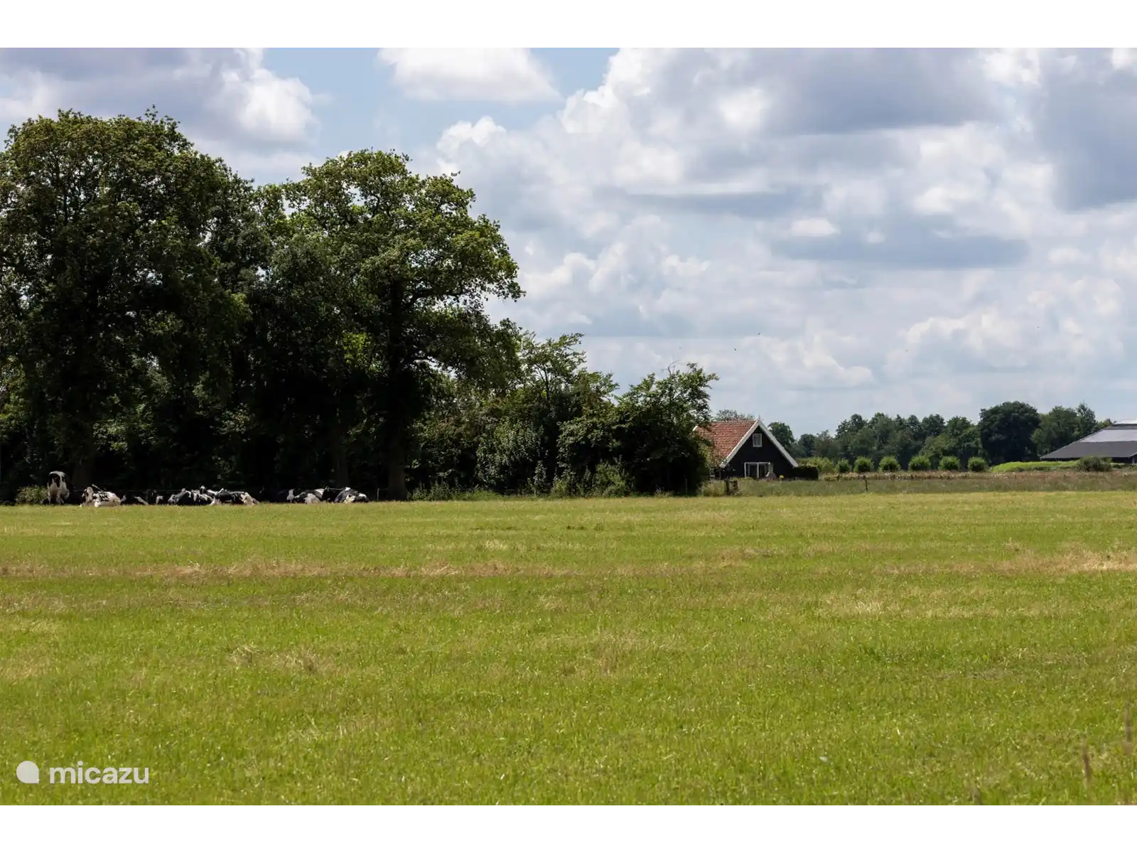 Het zomerhuisje staat aan het eind van een doodlopende weg midden in de weilanden waar de koeien grazen en veel weidevogels te bewonderen zijn. Je zult dus geen last hebben van verkeer. Het huisje ligt zo'n vier kilometer van het mooie & gezellige brinkdorpje Den Ham waar zomers genoeg te beleven valt voor jong en oud. Den Ham grenst aan het Eerderbos waar veel mooie wandel- en fietsroute uitgestippeld zijn (steile oever, sahara, kasteel Eerde). Maar ook de Lemeleberg, de Sallandse Heuvelrug en Engbertsdijkvenen zijn een aanrader om te bezien en liggen op een kleine afstand van Den Ham. Naast een bosrijke omgeving zul je in de buurt van Den Ham ook genoeg water aantreffen (Bekke, Regge, Vecht). Langs het water zult u mooie plekjes vinden om te bekijken, maar ook om te vissen. Zwemmen behoord ook tot de mogelijkheden. Den Ham beschikt namelijk over een mooi openluchtzwembad "de Groene Jager" met twee glijbanen en een mooie lig- en speelweide.