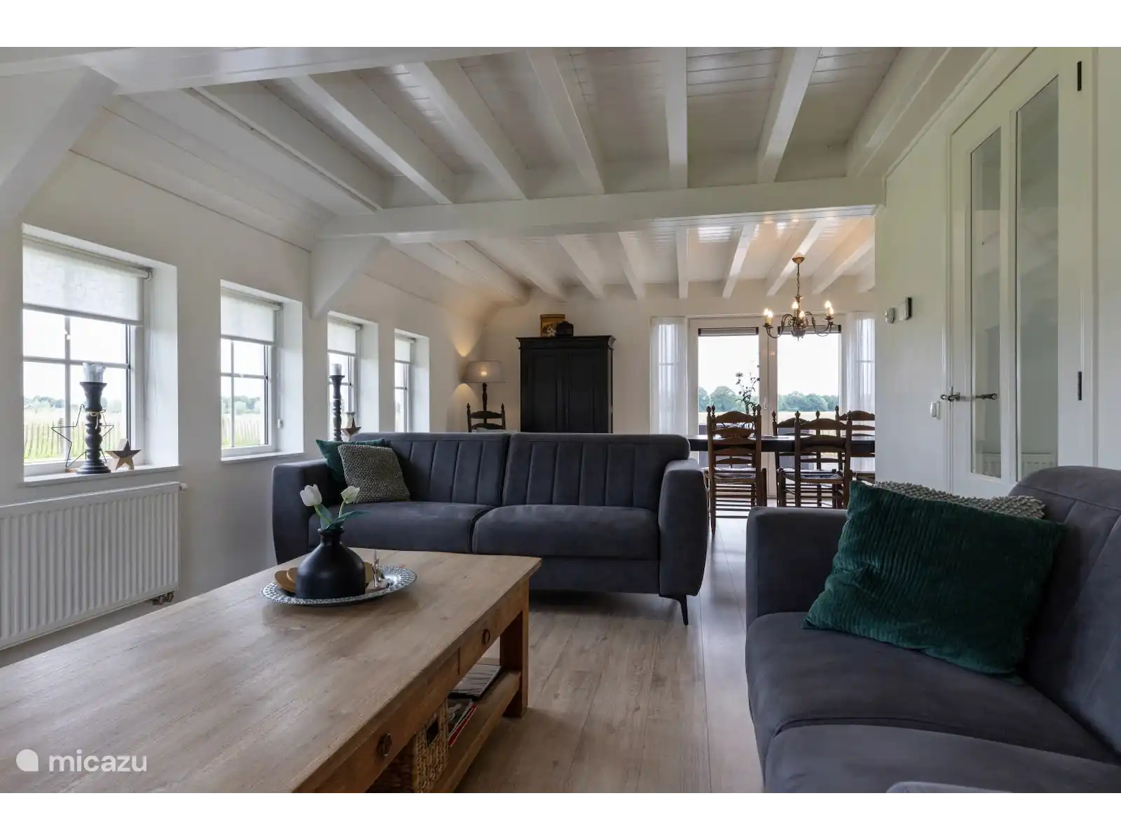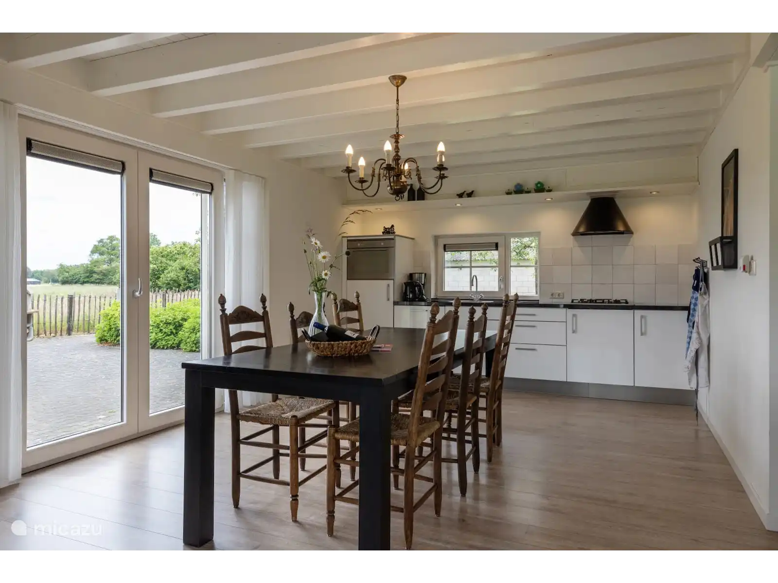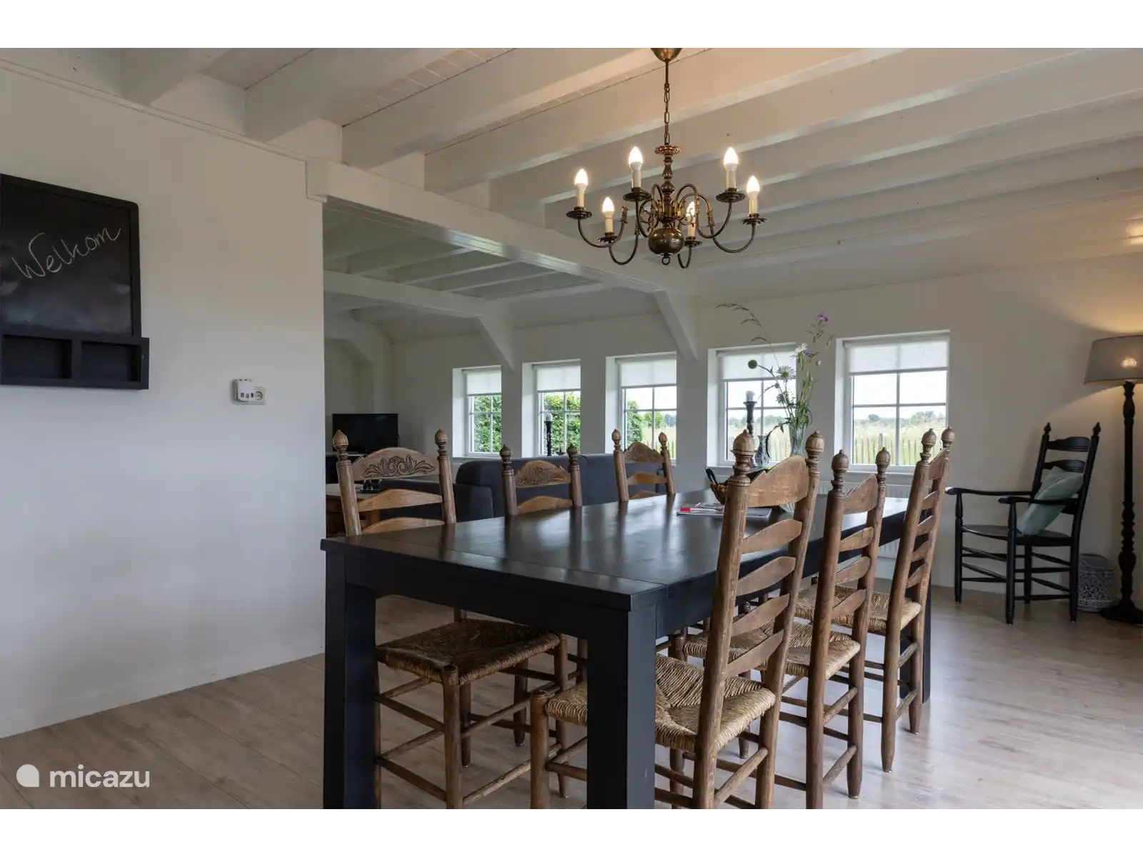 Het Assenhoekje is gelegen aan het eind van een doodlopende weg en bied een zee aan ruimte en de nodige rust. Het zomerhuis staat op het erf van de verhuurders en geeft je een mooi uitzicht over de weilanden waar zomers de koeien grazen. Het biedt plek aan 5 volwassenen. Op de eerste verdieping tref je twee knusse slaapkamers en een badkamer aan. Eén slaapkamer beschikt over 2 eenpersoonsbedden (boxspring) en een ladenkast. De andere slaapkamer heeft 3 eenpersoonsbedden (boxspring). De badkamer op deze verdieping heeft een verwarmde vloer, een regendouche, toilet en een wastafel. Op de begane grond tref je een apart toilet, een badkamer met verwarmde vloer, regendouche en wastafel en de woonkamer en eetkeuken aan. Via de terrasdeuren in de keuken loop je zo naar uw eigen terras. Hier staat een grote houten tafel met zes wicker stoelen. Wij hopen dat je daar veel tijd door zult brengen om zo heerlijk te kunnen relaxen onder het genot van een drankje of een eigen gemaakt etentje op de BBQ die aanwezig.