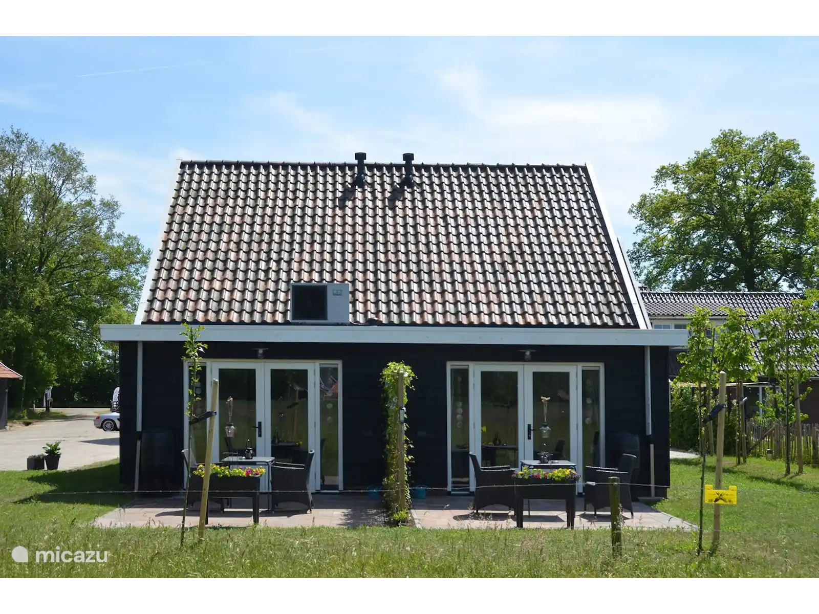 - Eigen terras met tafel, stoelen en natuurlijk vrij uitzicht over het weiland