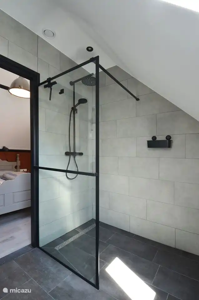 - Luxe badkamer voorzien van regen- en handdouche, wastafel, toilet en föhn