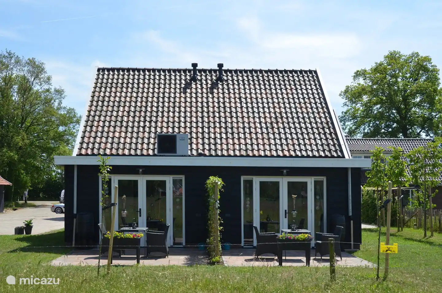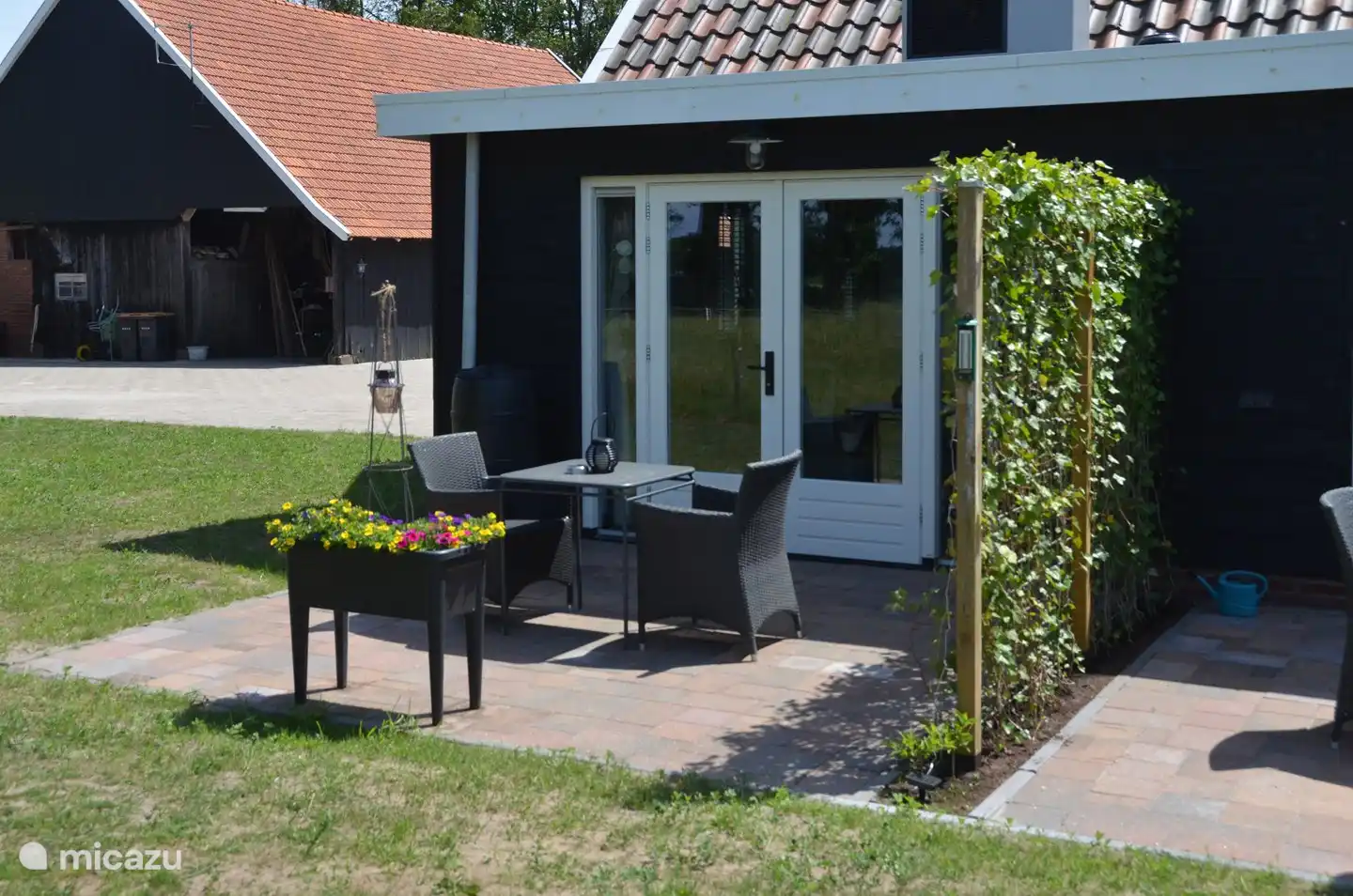 - Eigen terras met tafel, stoelen en natuurlijk vrij uitzicht over het weiland