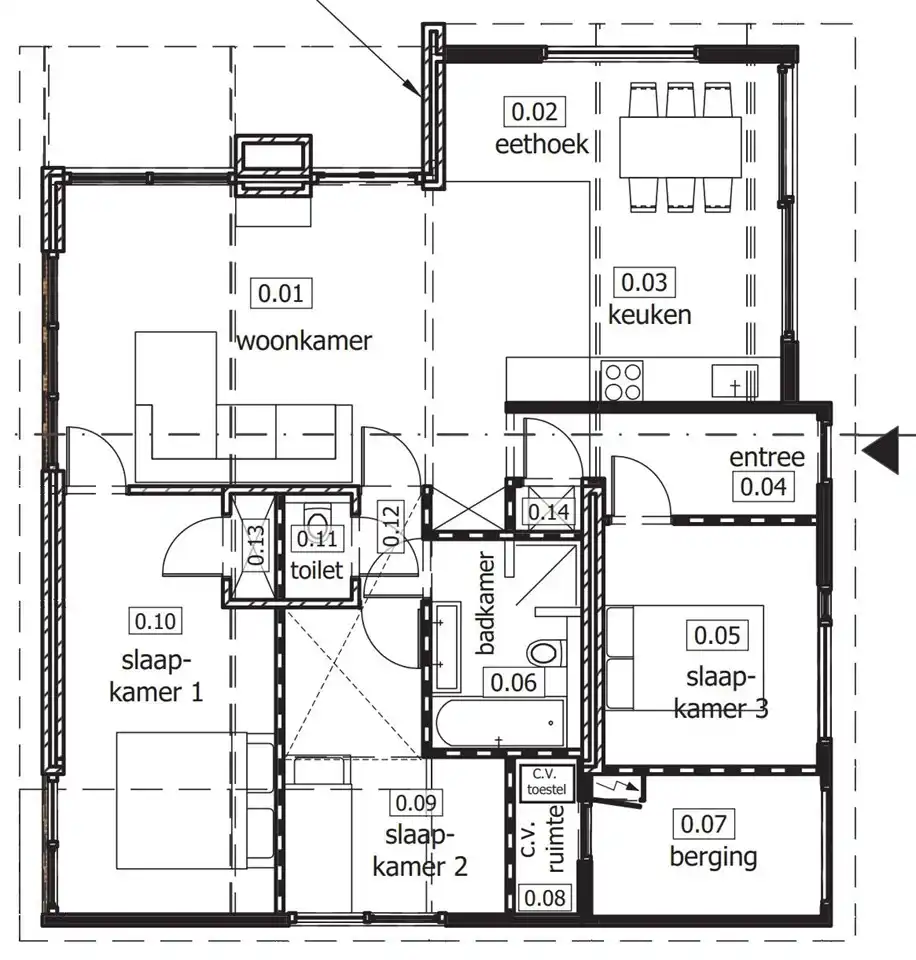 Let op: Tussen de woonkamer en de keuken/eettafel is een hoogteverschil aanwezig. Dit maakt de woning minder geschikt voor minder validen en het is sowieso iets om rekening mee te houden. Vooral tijdens een nachtelijk toiletbezoek, bijvoorbeeld.