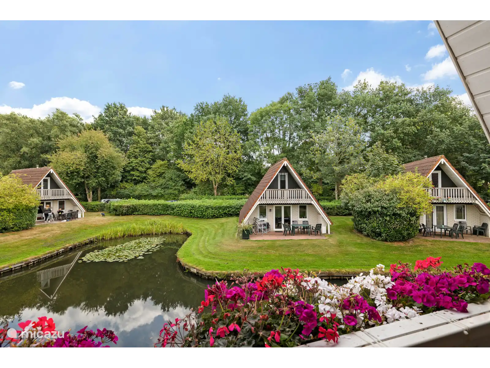 De tuin van dit vakantiehuis is uitgerust met terrasmeubilair. Vanaf het terras heb je een mooi uitzicht over de visvijver. Zowel de wasmachine als de wasdroger zijn te vinden in de compacte berging.