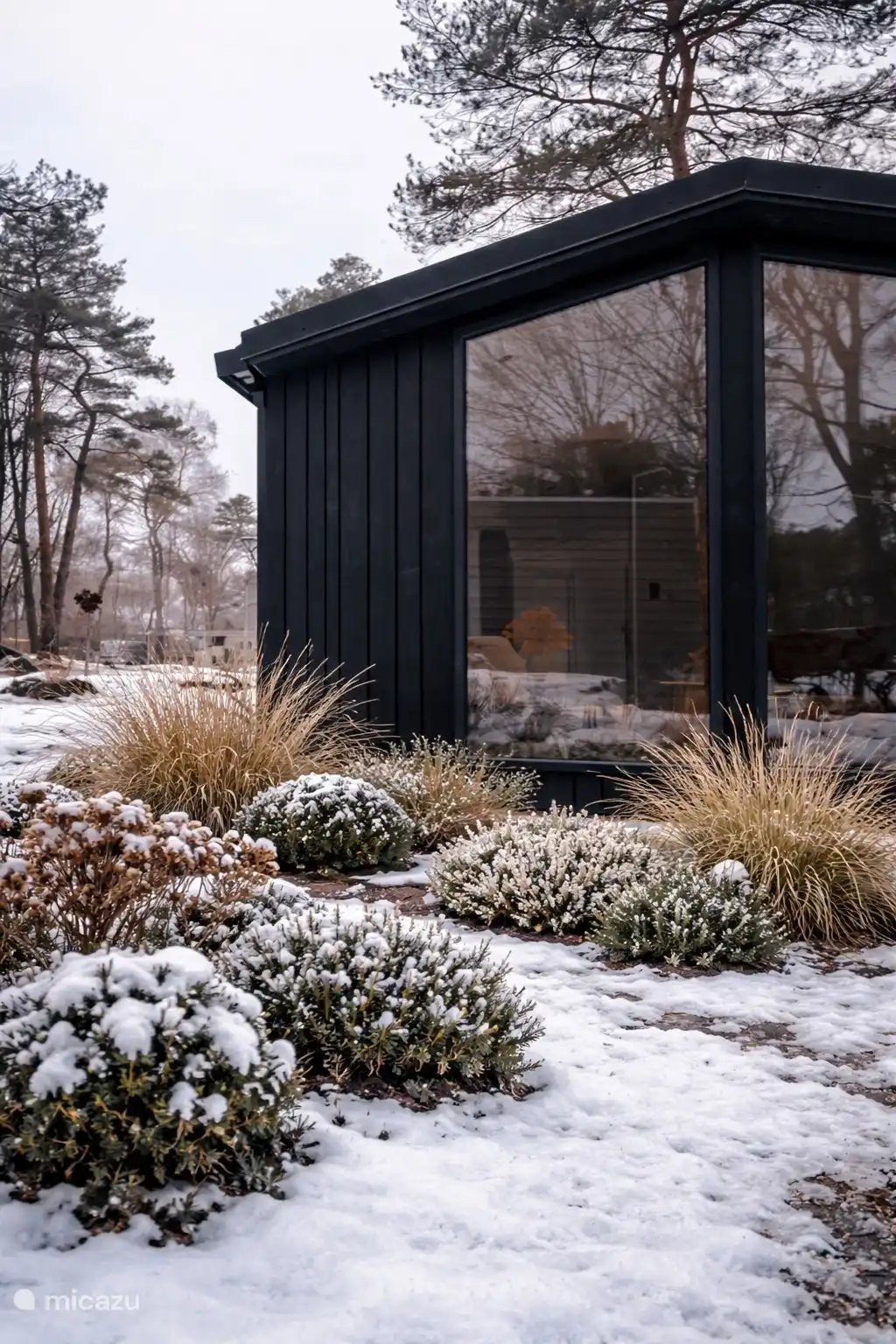 Wakker worden in een serene Japandi-stijl cabin gelegen in een bosrijke omgeving? Dit kan in boshuisje Nero voor 1-4 personen!
