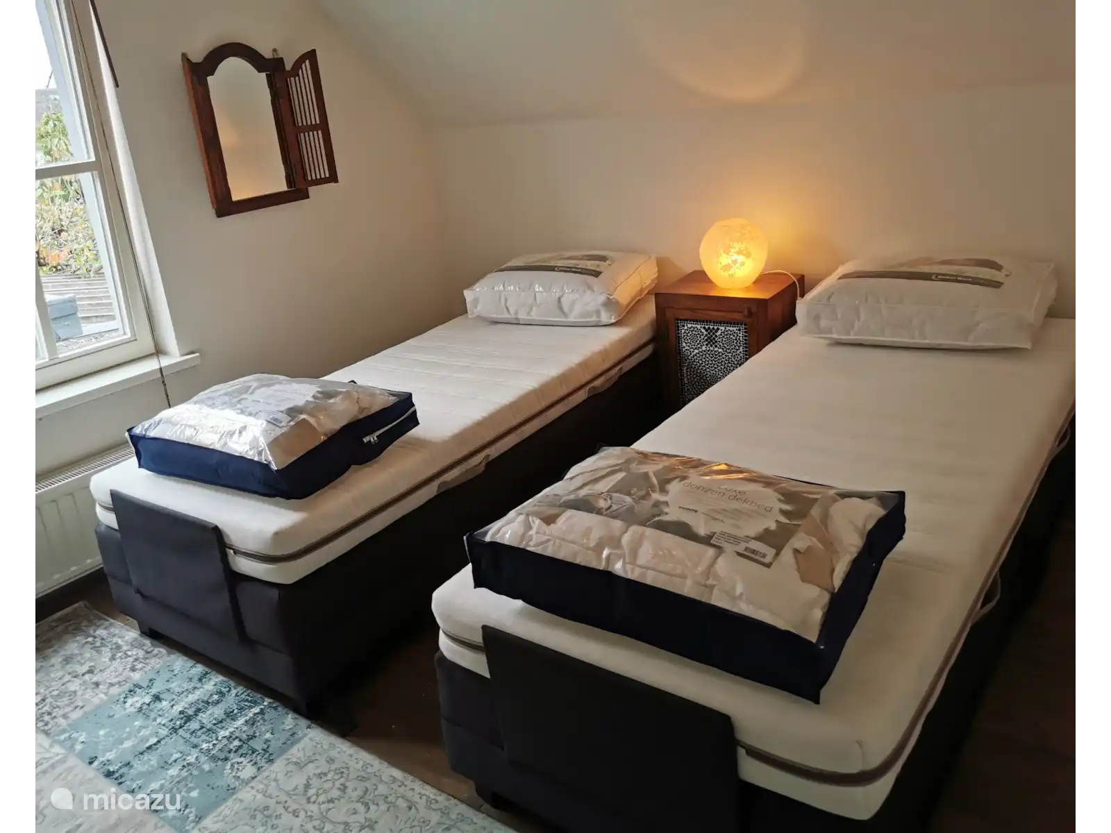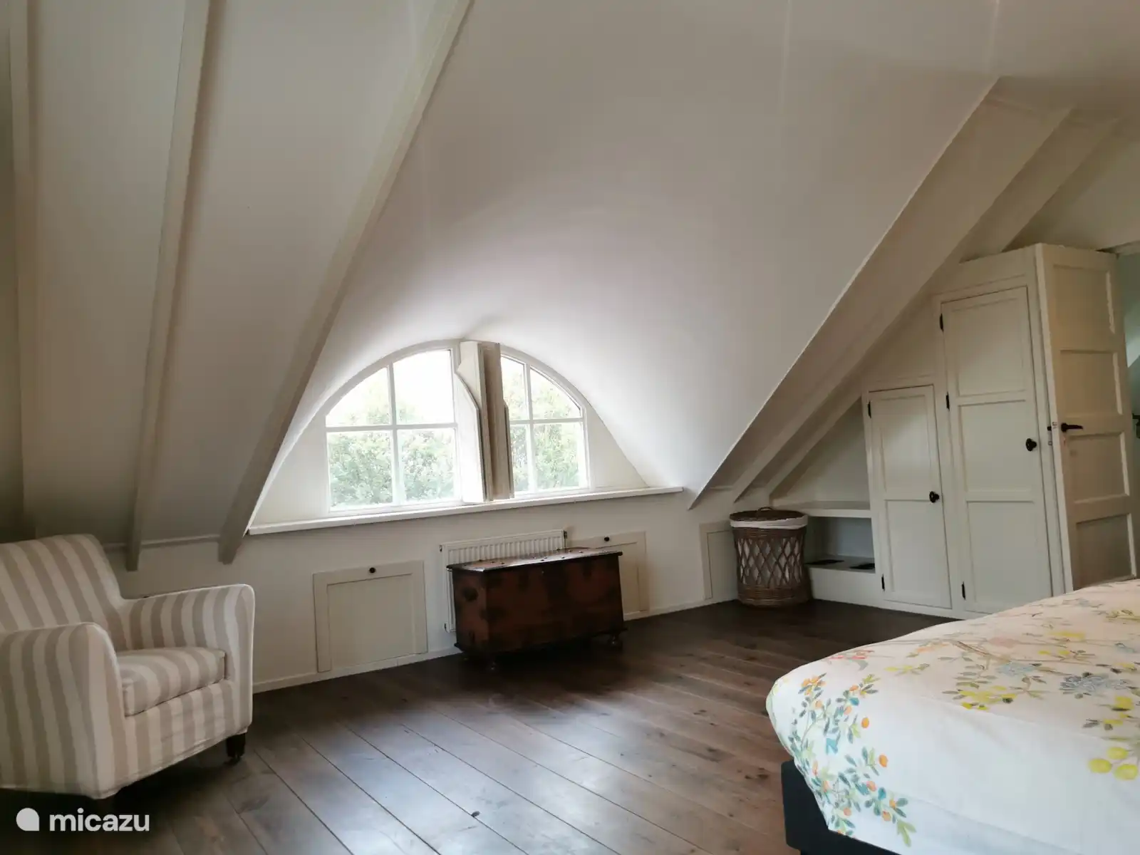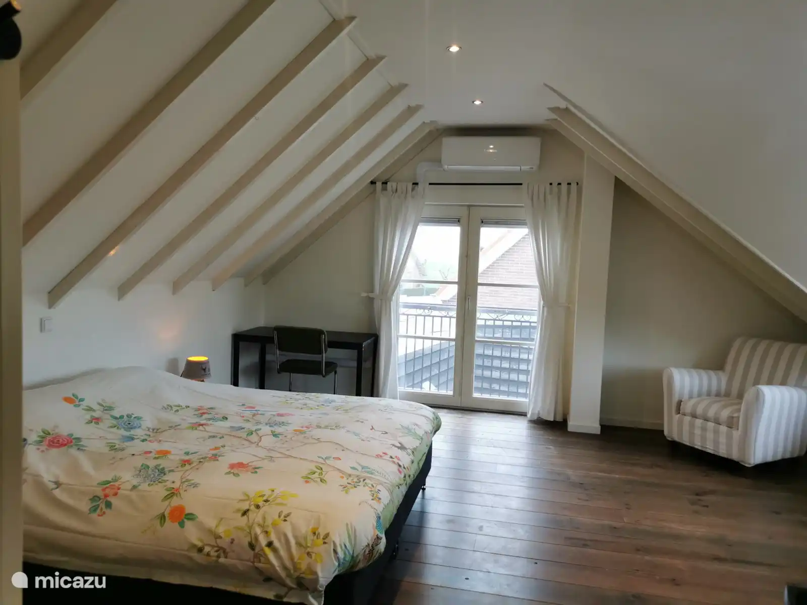 Boven wachten twee ruime slaapkamers. De luxe master bedroom van 30 m² beschikt over een kingsize bed dat kan worden gesplitst in twee enkele bedden, een Frans balkon, airconditioning en een prachtig, karakteristiek rond raam. De tweede slaapkamer van 16 m² biedt een queen-size elektrisch bed, dat ook kan worden gescheiden in twee enkele bedden, en een bureau – ideaal voor werken op afstand. Blijf verbonden met gratis high-speed Wi-Fi en geniet van je favoriete series op een Smart TV. Met gratis koffie en thee, opgemaakte bedden en handdoeken, hoef je alleen maar te ontspannen en te genieten van de serene sfeer.