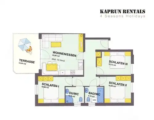 Dit design appartement bestaat uit drie grote slaapkamers en twee badkamers, waarvan één badkamer direct toegankelijk is vanuit één van de slaapkamers. De woonkamer is ruim opgezet met een gezellige grote eettafel en open keuken. In de zithoek, vanwaaruit u een schitterend uitzicht heeft op de Kitzsteinhorn, kunt u heerlijk nagenieten bij de open haard van weer een geslaagde dag. Het terras, gelegen op het zuiden, is direct vanuit de woonkamer bereikbaar. Vanaf het terras kunt u perfect genieten van de zon en het uitzicht op de Kitzsteinhorn en Maiskogel.