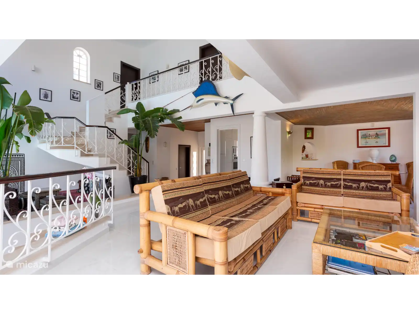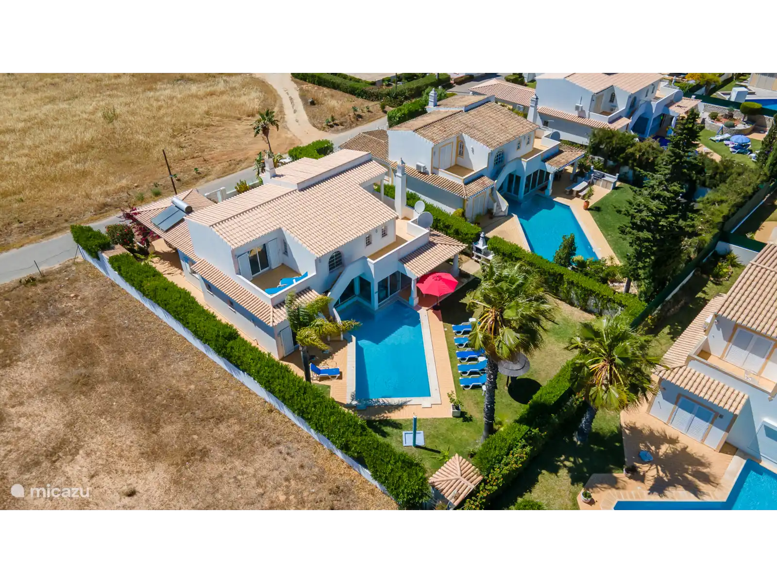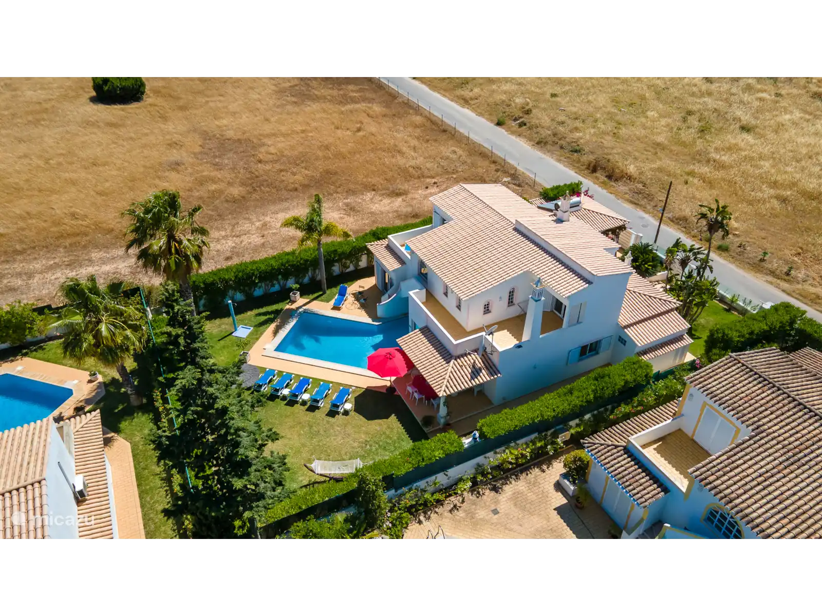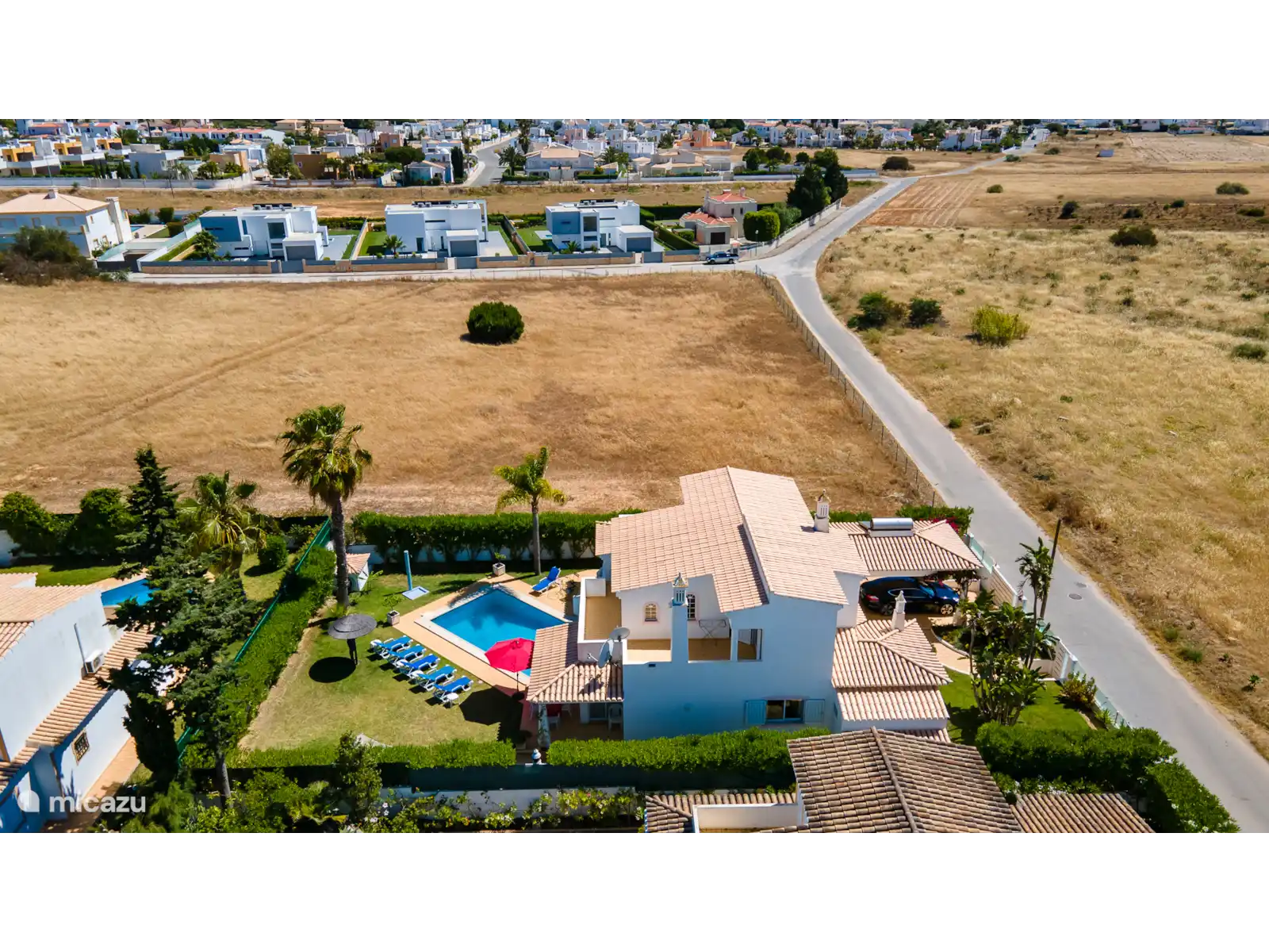 Deze moderne villa is gelegen in de buurt van Galé, wat een prachtig zandstrand en goede restaurants bezit. Er is een carport en een kleine tuin aan de voorkant van het huis. Vanuit de hal komt u via 2 treden in de woon / eetkamer die ruim en licht is wat de kamer zeer aantrekkelijk maakt. Er staan twee zeer comfortabele bamboe sofa's, een open haard en een hoekbar. Er zijn openslaande deuren naar het terras en het zwembad. De slaapkamer op de eerste verdieping heeft een nautisch thema en via een terras met een trapje komt u bij het zwembad. Er is een grasveld en een oleander haag rondom de tuin.