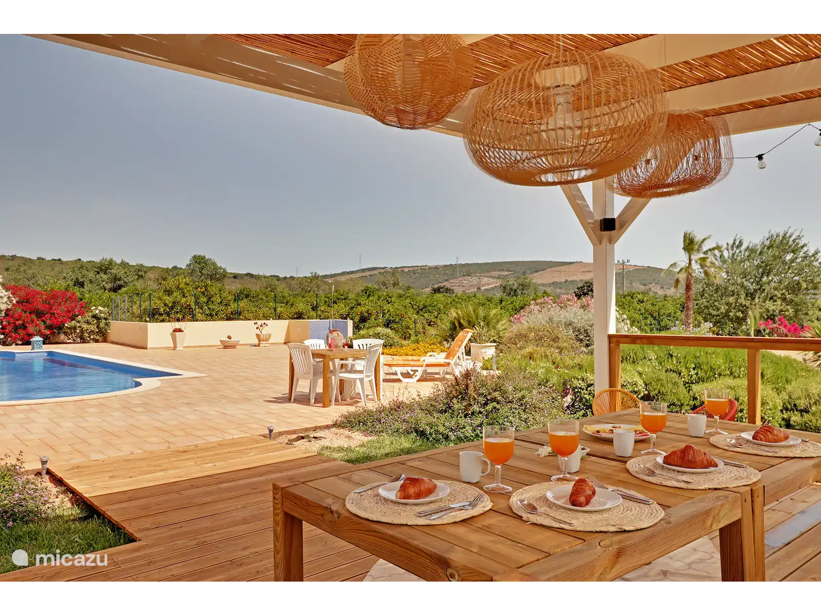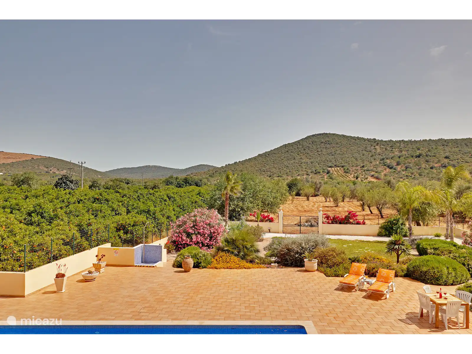 De buitenruimte van Casa Pomar is werkelijk bijzonder. De grote, aangelegde tuin is gevuld met volwassen bomen en bloeiende planten, en zorgen voor natuurlijke schaduw en privacy. Het 15-meter lange zwembad is perfect om te zwemmen of te zonnen op het omliggende terras. De buitenkeuken en barbecue zijn ideaal voor het bereiden van maaltijden en gezellige avonden onder de sterrenhemel, met sfeerverlichting voor extra charme.