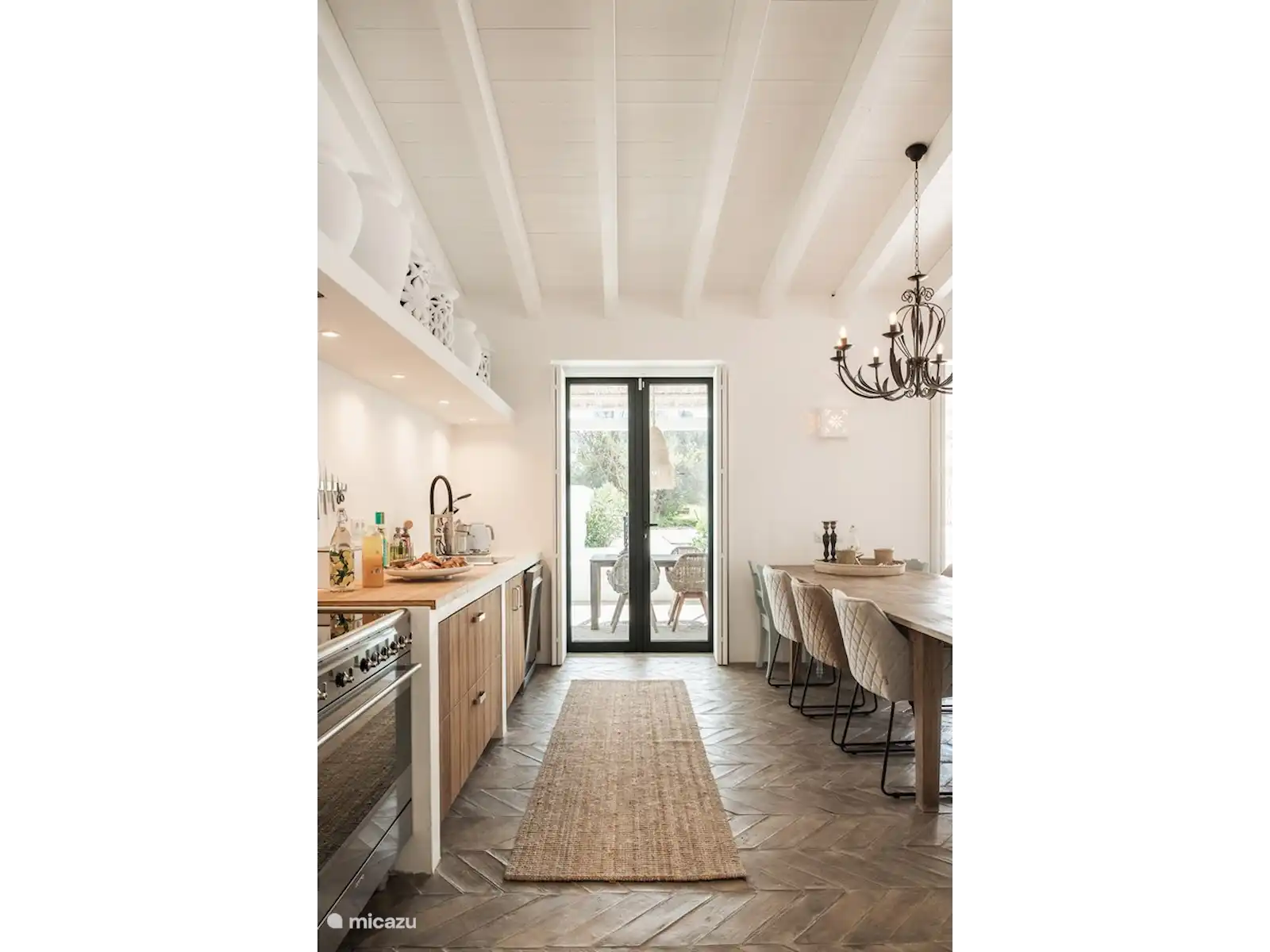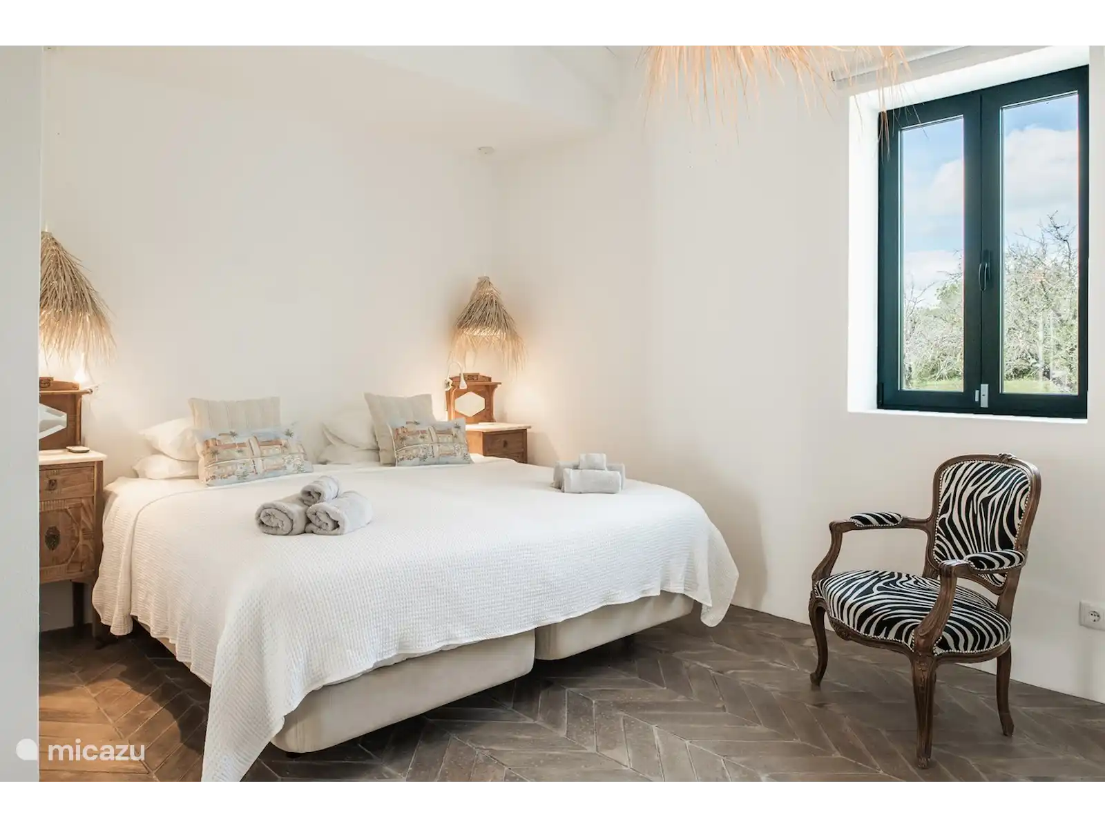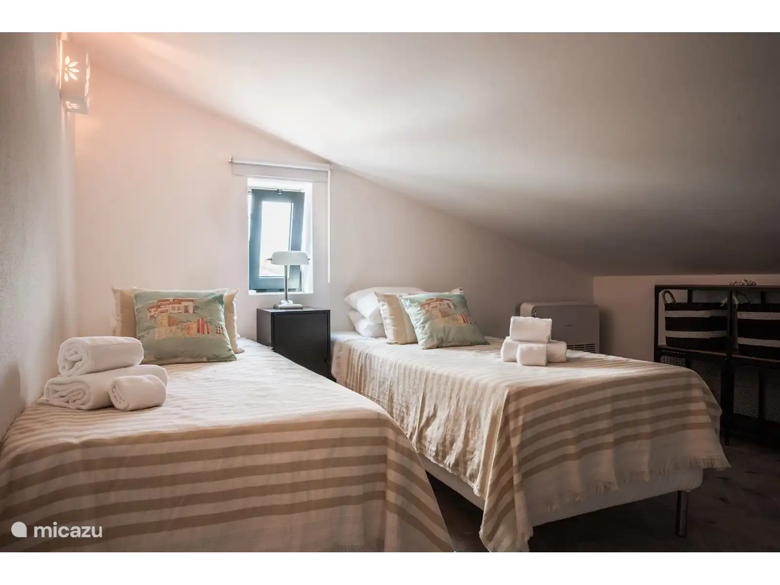 Het interieur van Quinta Romanzeira is ruimtelijk en sfeervol. De buitenkant behoudt de kenmerkende witte muren, terwijl binnen houten meubels, een oude vloer, kunstwerken en hoogwaardige materialen een warme en stijlvolle ambiance creëren. Het huis beschikt over twee slaapkamers met zeer comfortabele bedden: de slaapkamer op de begane grond heeft een tweepersoonsbed en de slaapkamer boven twee losse bedden, met een veilig hekje bij de trap. De badkamer is uitgerust met een ruime inloopdouche en luxe handdoeken. De living met open keuken en eettafel biedt uitzicht op de tuin en het zwembad. De volledig uitgeruste keuken maakt het eenvoudig om heerlijke maaltijden te bereiden, die u kunt serveren op de veranda en zo optimaal van het Portugese buitenleven geniet.