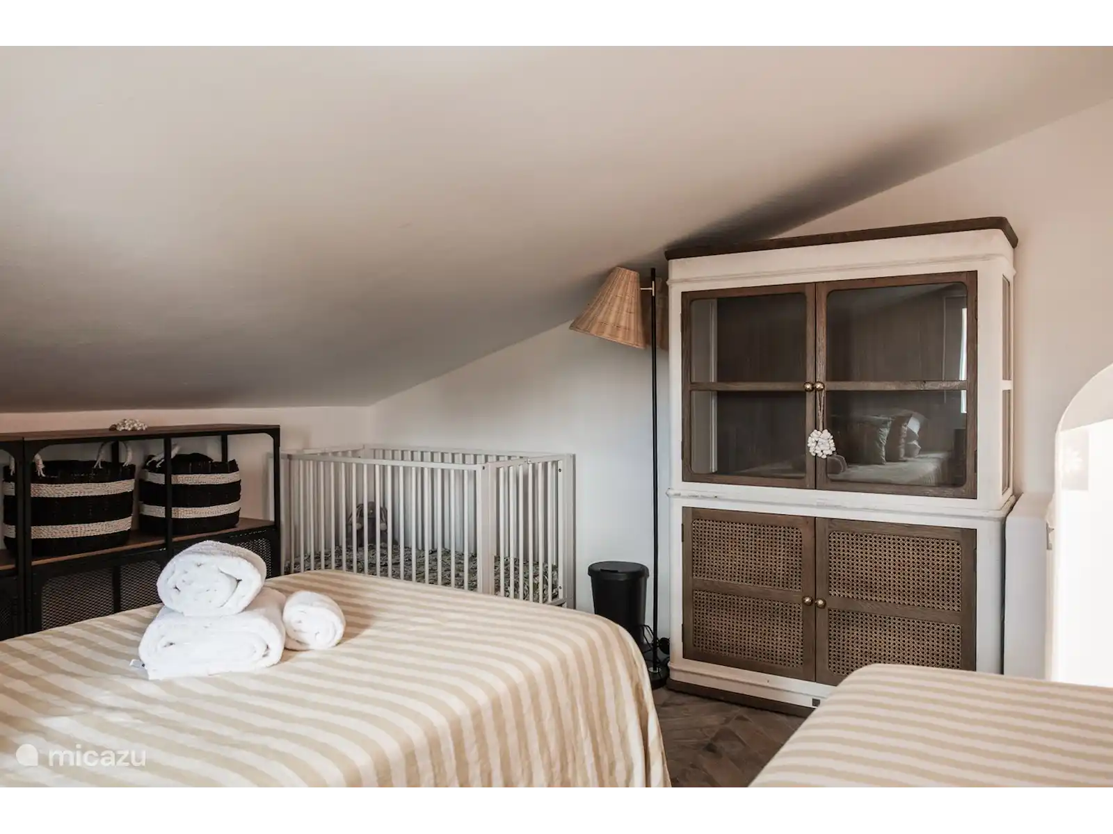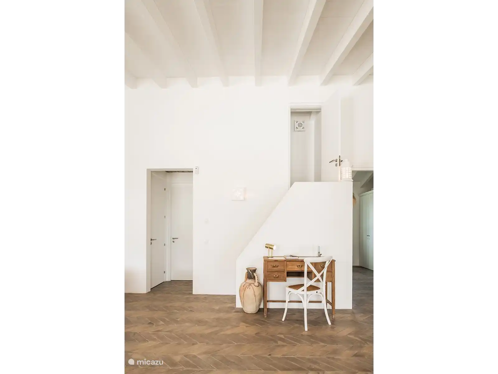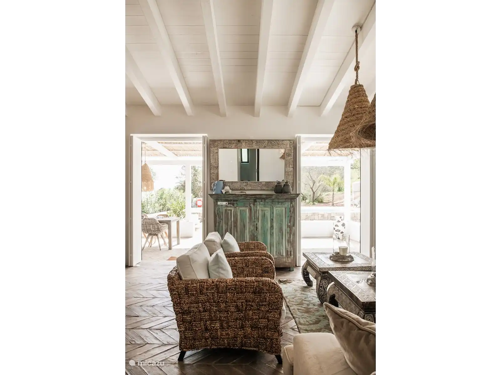 Het interieur van Quinta Romanzeira is ruimtelijk en sfeervol. De buitenkant behoudt de kenmerkende witte muren, terwijl binnen houten meubels, een oude vloer, kunstwerken en hoogwaardige materialen een warme en stijlvolle ambiance creëren. Het huis beschikt over twee slaapkamers met zeer comfortabele bedden: de slaapkamer op de begane grond heeft een tweepersoonsbed en de slaapkamer boven twee losse bedden, met een veilig hekje bij de trap. De badkamer is uitgerust met een ruime inloopdouche en luxe handdoeken. De living met open keuken en eettafel biedt uitzicht op de tuin en het zwembad. De volledig uitgeruste keuken maakt het eenvoudig om heerlijke maaltijden te bereiden, die u kunt serveren op de veranda en zo optimaal van het Portugese buitenleven geniet.
