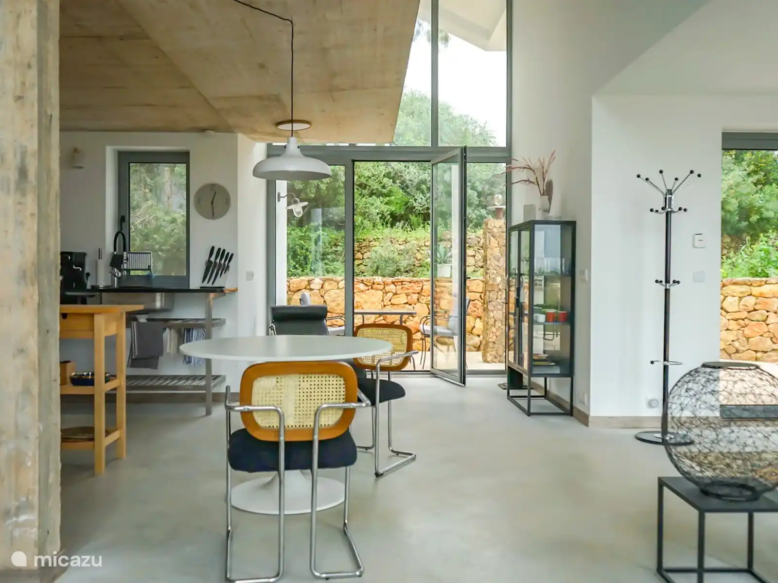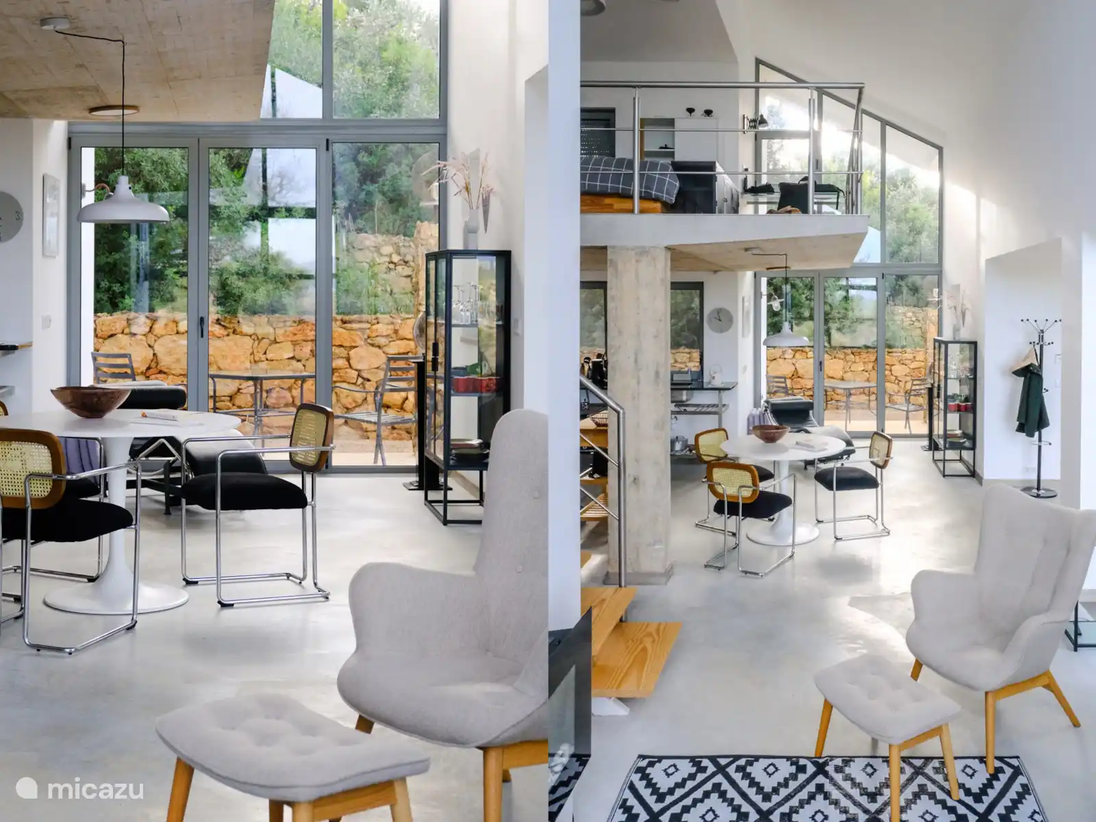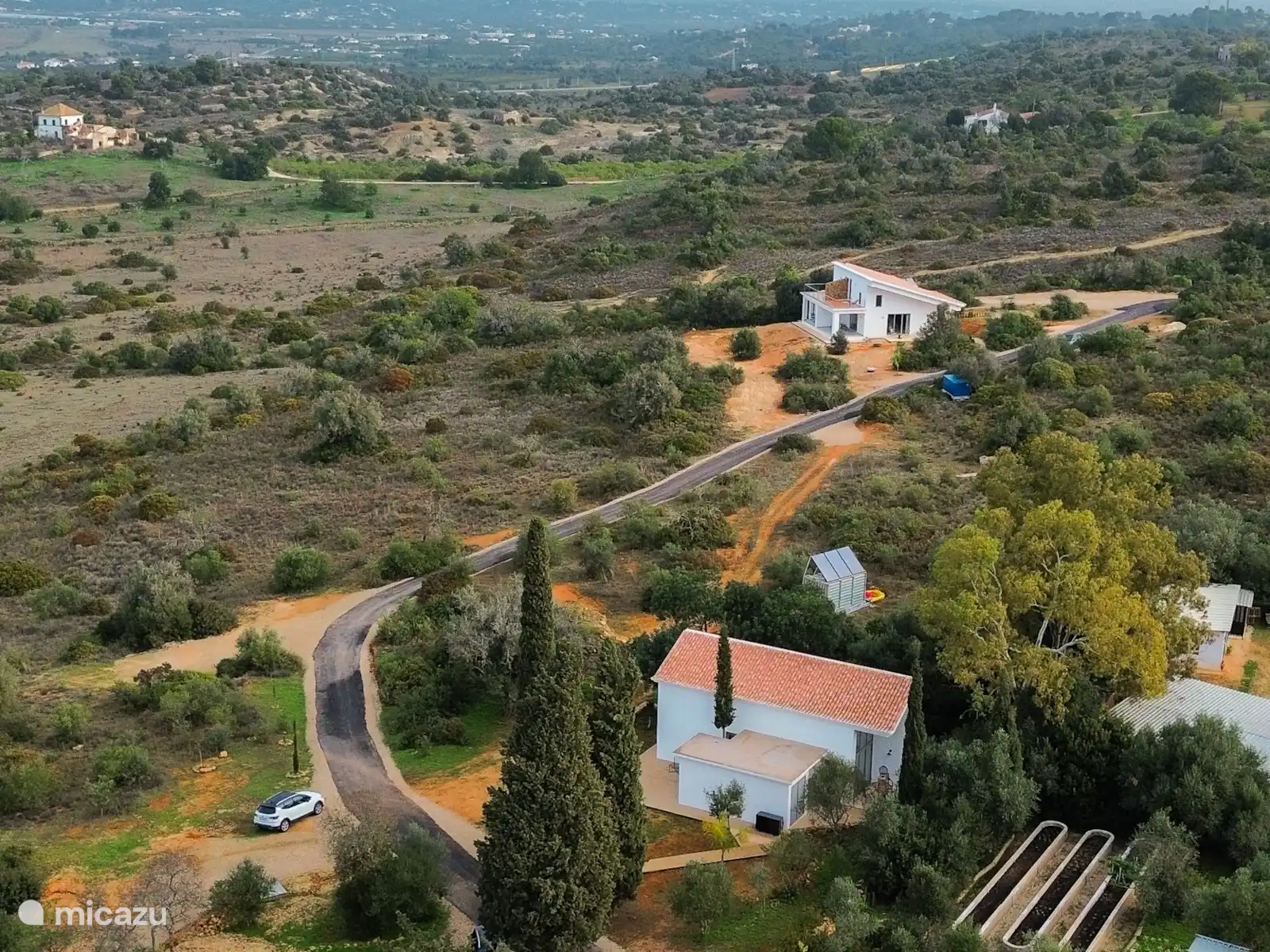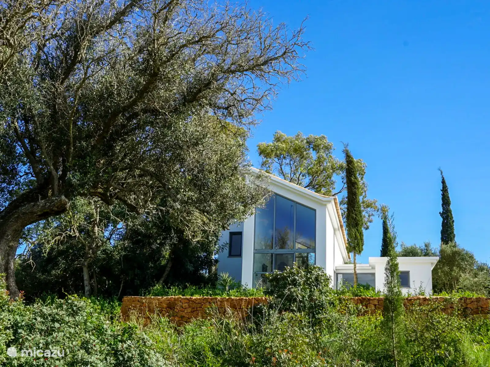 De noordgevel is over de volledige hoogte met dubbelglas voorzien en biedt een uitzicht op het berglandschap van Monchique.
