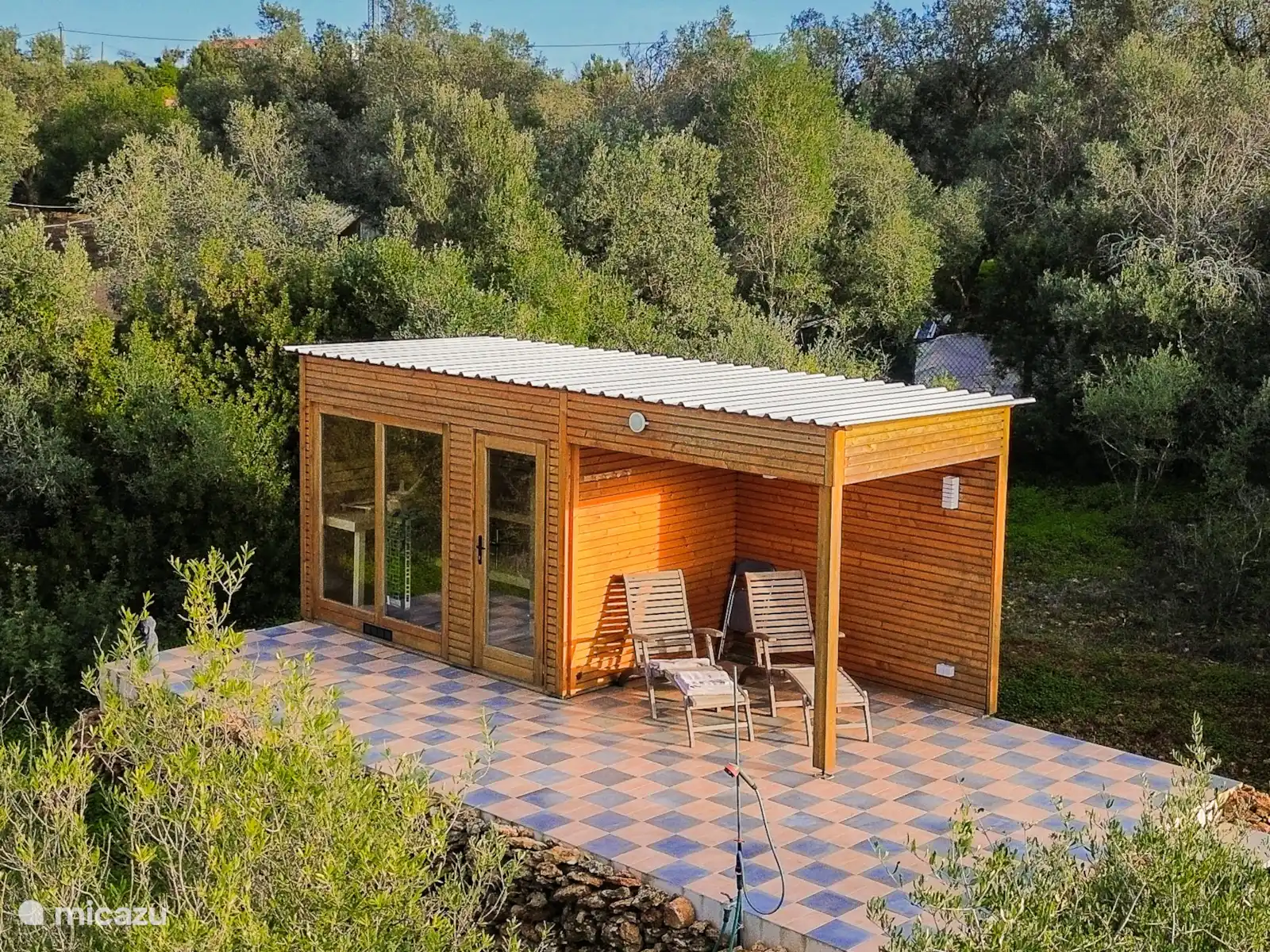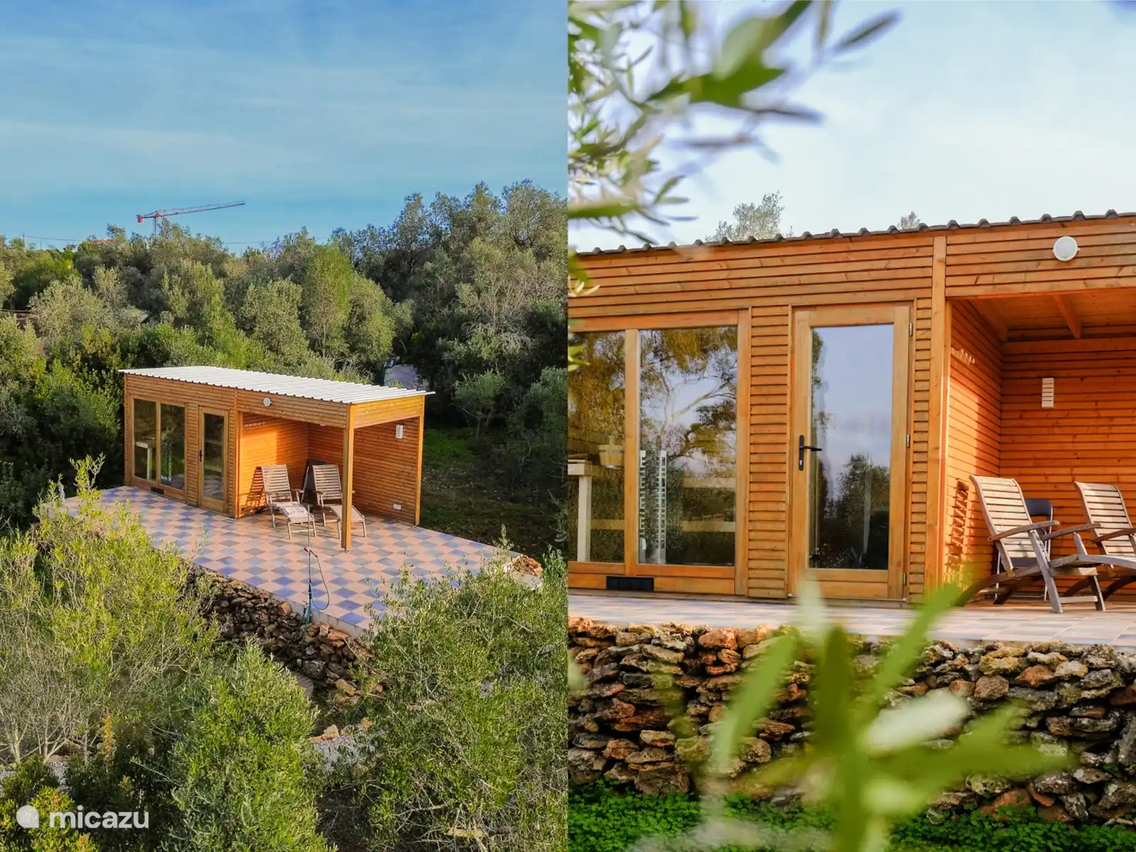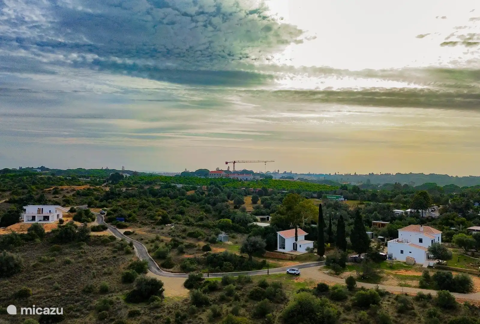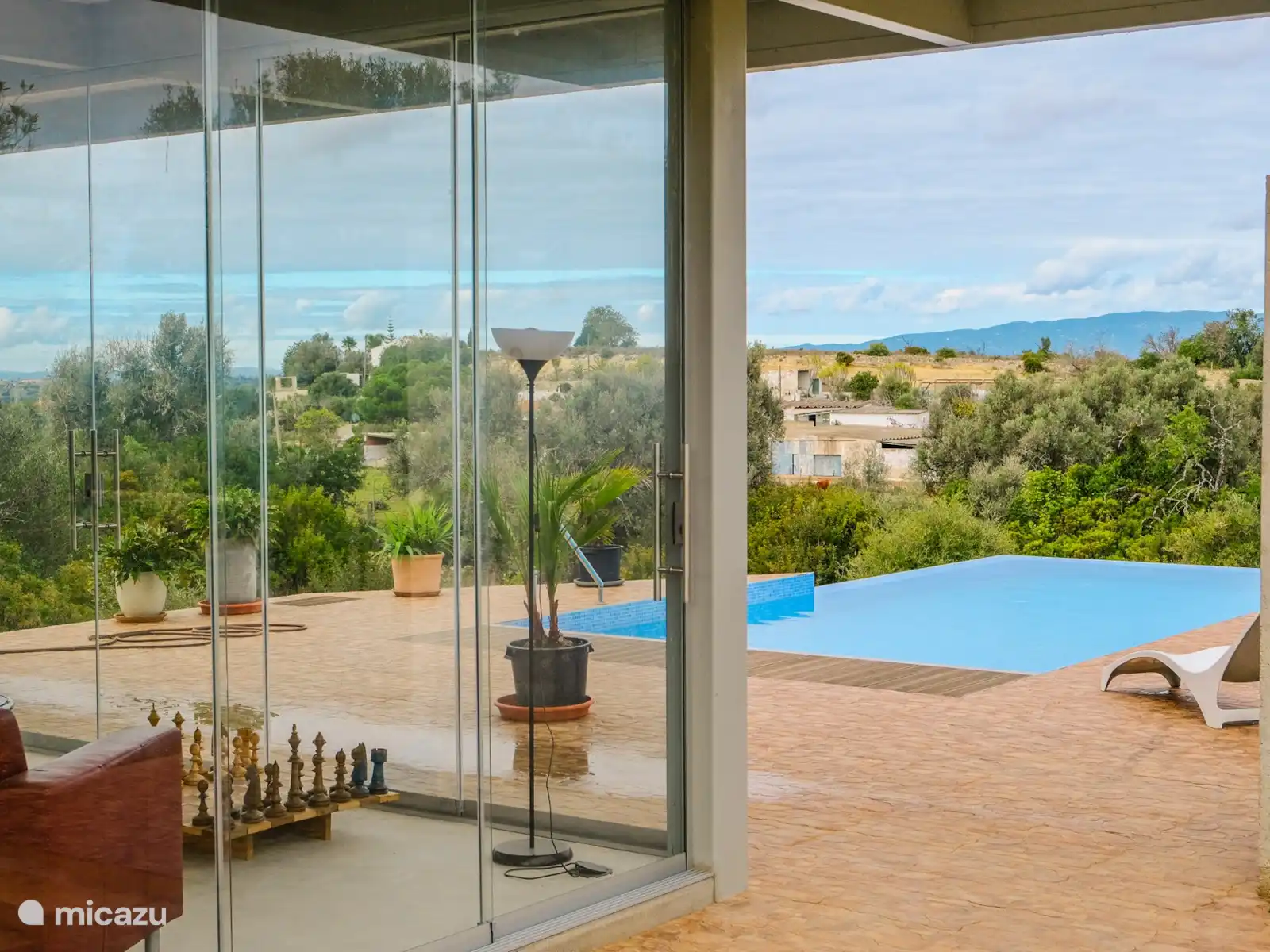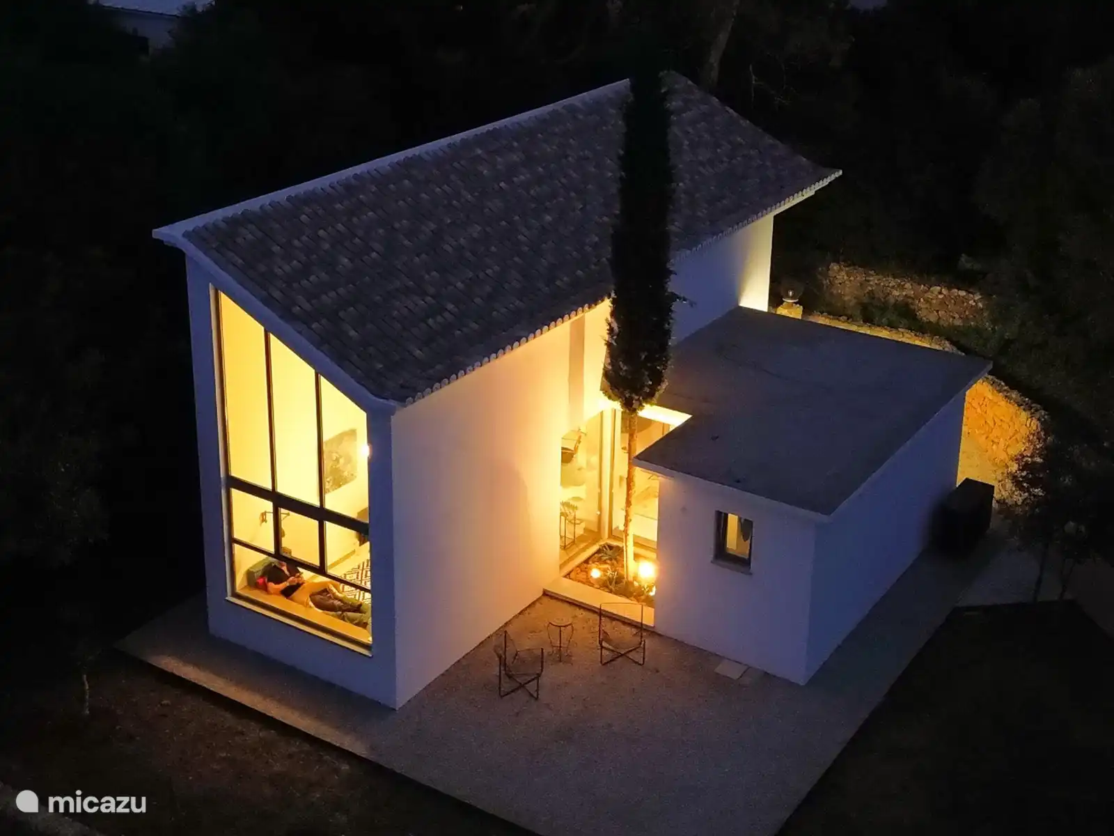 De noordgevel is over de volledige hoogte met dubbelglas voorzien en biedt een uitzicht op het berglandschap van Monchique.