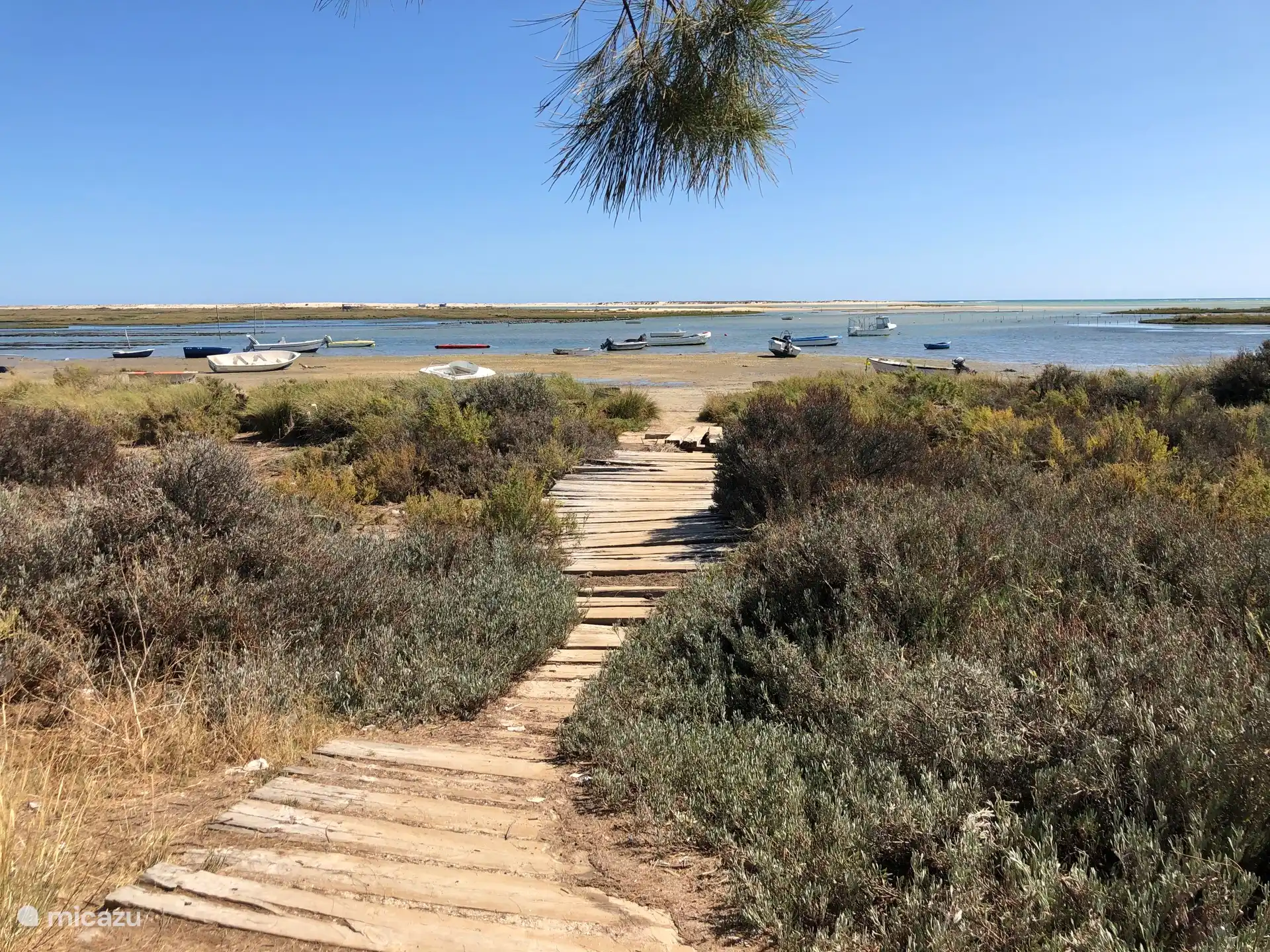 Onze huiselijke en comfortabele vakantiewoningen hebben een eigen entree, terras en grote mediterrane tuin. En uitzicht op de Atlantische oceaan, het vissersdorpje Fuseta, natuurgebied "Ria Formosa" en de olijfboomgaard van onze buren.