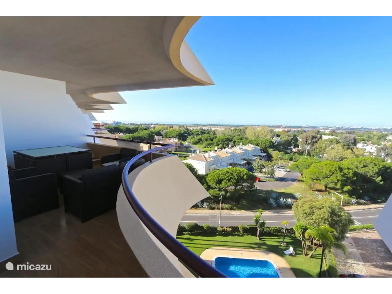 Dit appartement is gelegen op de 6e verdieping en heeft daardoor een panoramisch uitzicht richting zee en de heuvels. Het is gunstig gelegen in Vilamoura, dicht bij voorzieningen en het strand. Het appartement heeft een zwembad, kinderbadje, een ondergrondse parkeergarage en een lift. Het appartement heeft een ruime woonkamer met bank dat ook als slaapbank kan dienen, eetkamertafel met 6 stoelen en een balkon op het westen met voldoende ruimte om buiten te zitten. Grenzend aan de woonkamer is er een volledig ingerichte keuken met wasmachine, koel/vriescombinatie, magnetron, vaatwasser en een ontbijthoek. De  badkamer heeft een grote douche, wastafel, toilet en daarnaast is er nog een apart gastentoilet. De slaapkamer heeft inbouwkasten en toegang tot het balkon. Er is airconditioning in de woonkamer en slaapkamer.