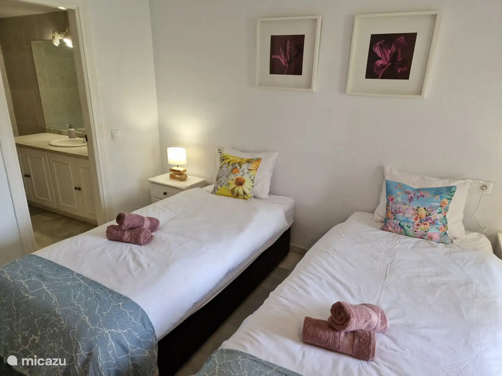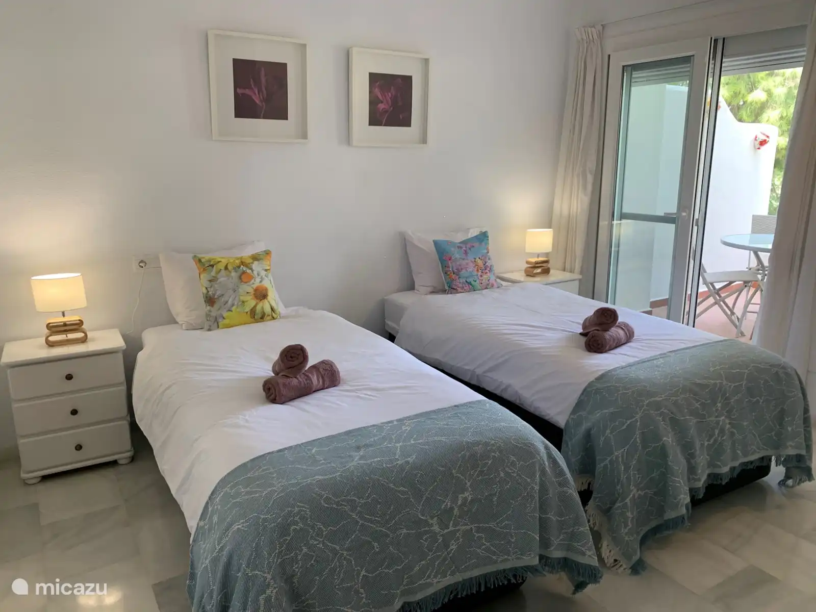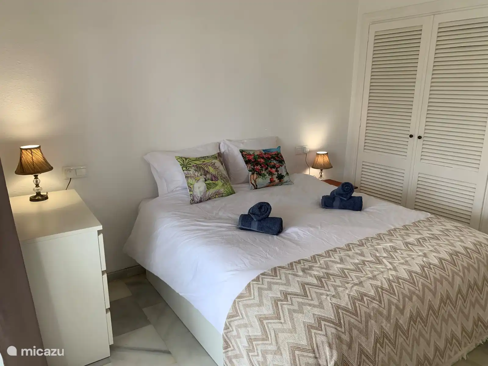 - 2 slaapkamers. 1 slaapkamer met een 2 persoonsbed en 1 slaapkamer met 2 1 persoonsbedden