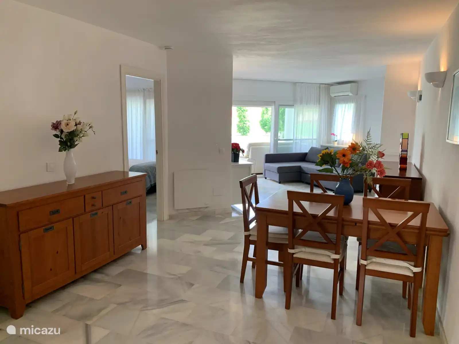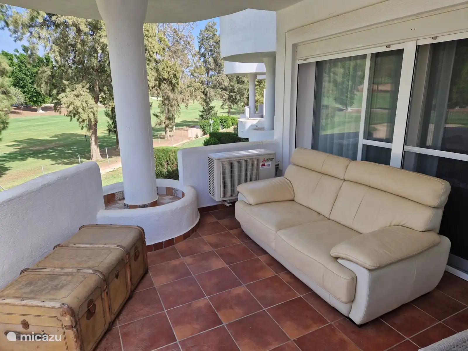 - 2 terrassen. Een terras gelegen op het zuiden met zicht op gedeelde zwembaden en een terras op het noorden, met een rustgevend uitzicht op de golfbaan. Afhankelijk van het tijdstip is er dus altijd de keuze om in de zon of in de schaduw te zitten.