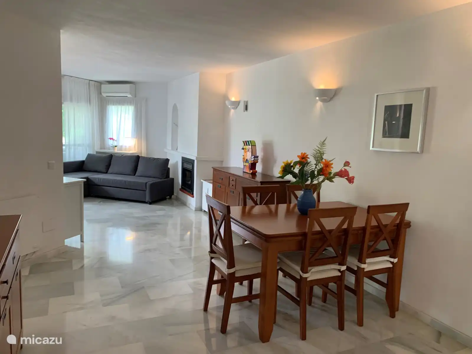 - Woonkamer met bank die tevens ook kan dienen als een extra bed.