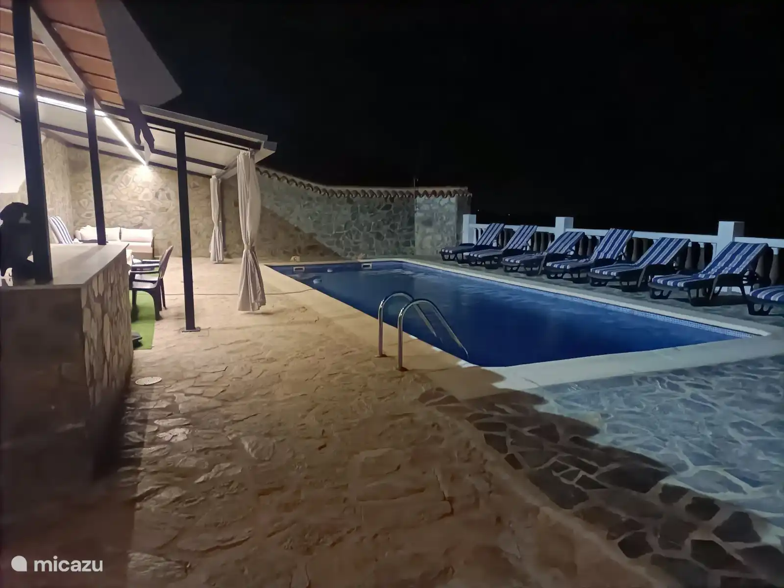 Casa Ana heeft een groot prive zwembad met een buitenkeuken, douche, toilet en ligstoelen.