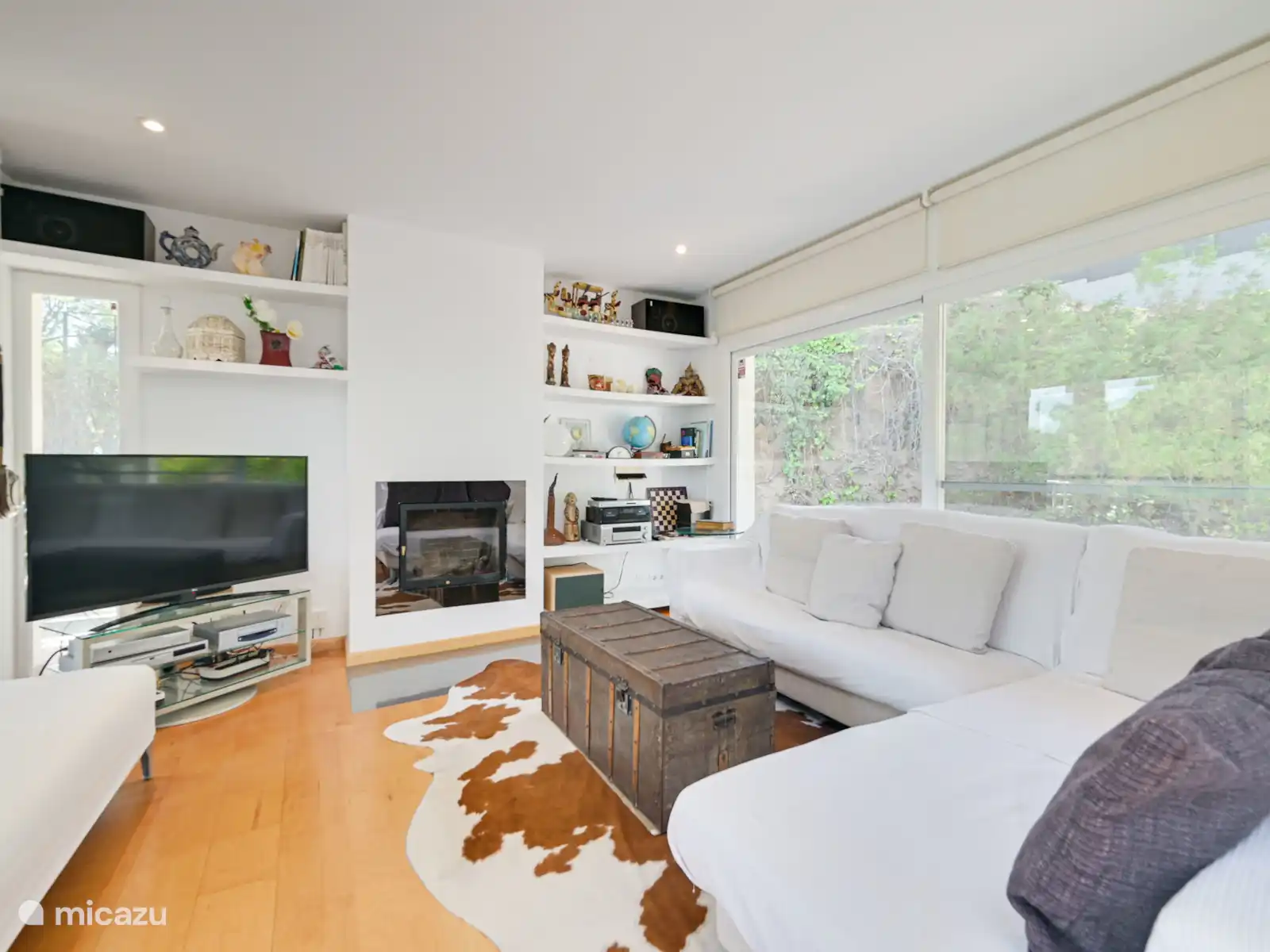 Er is ook een woonkamer met open haard, tv en een gastentoilet.