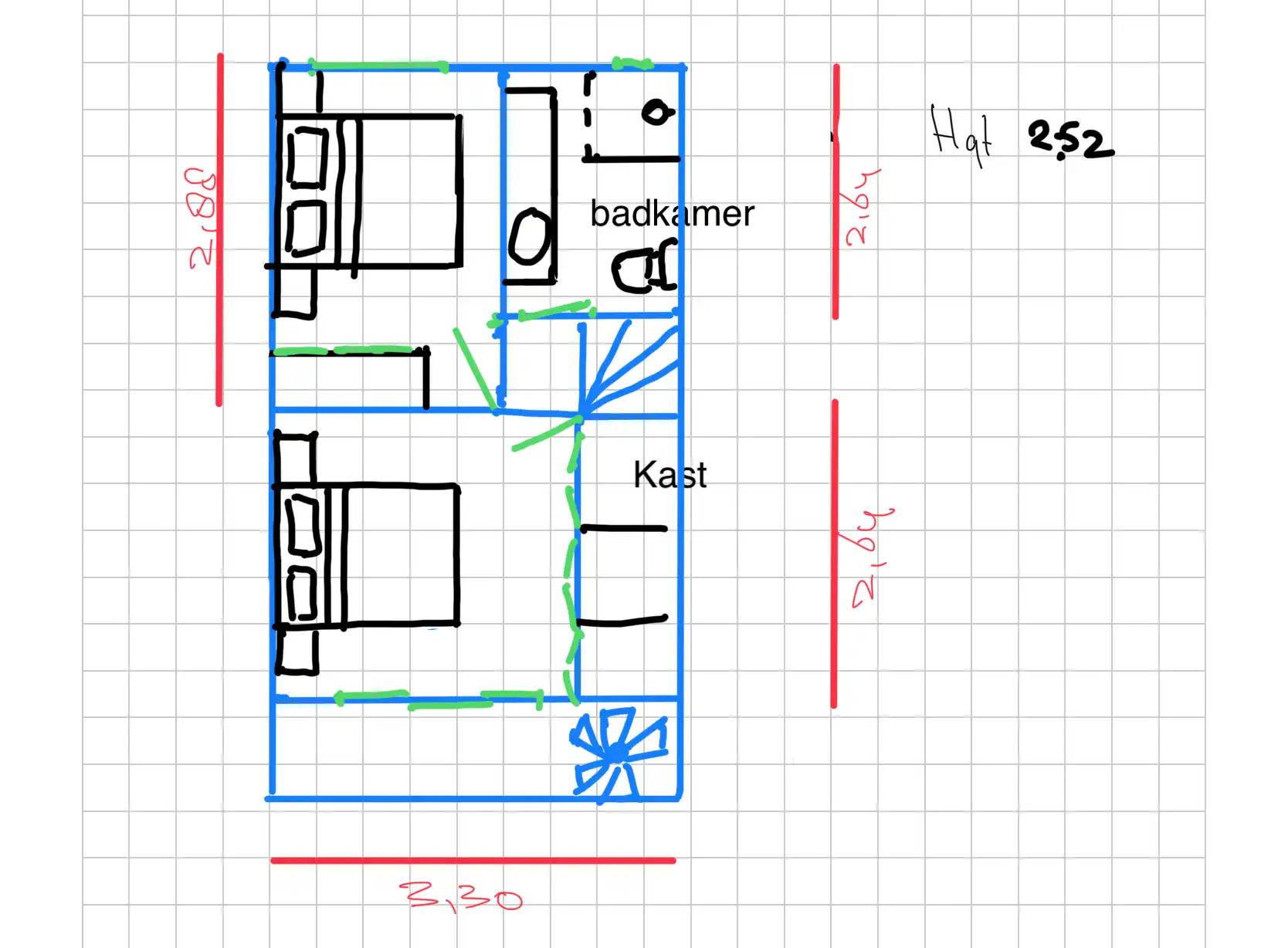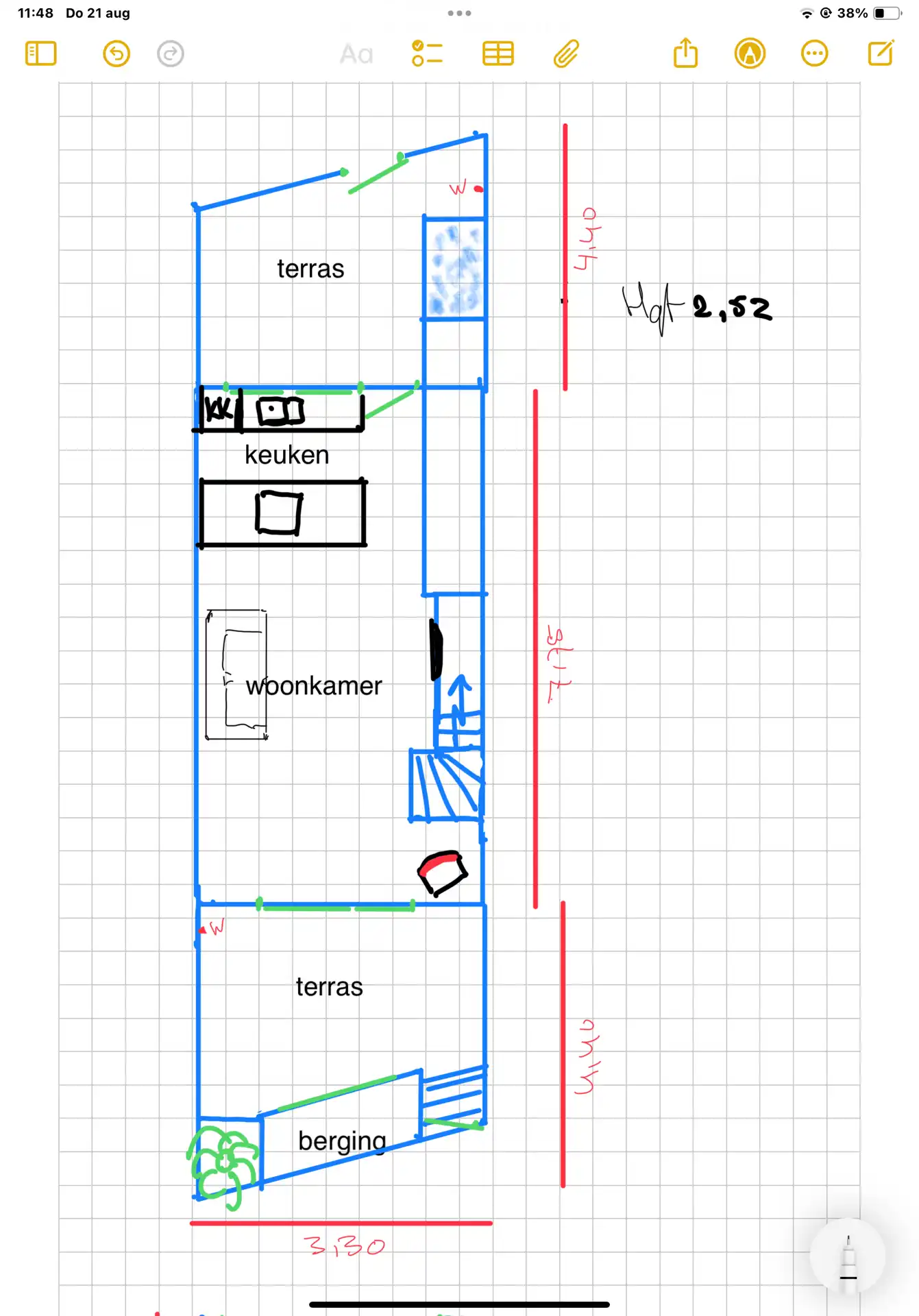 Het toilet ligt naast de achterdeur en biedt ruimte aan de wasmachine.