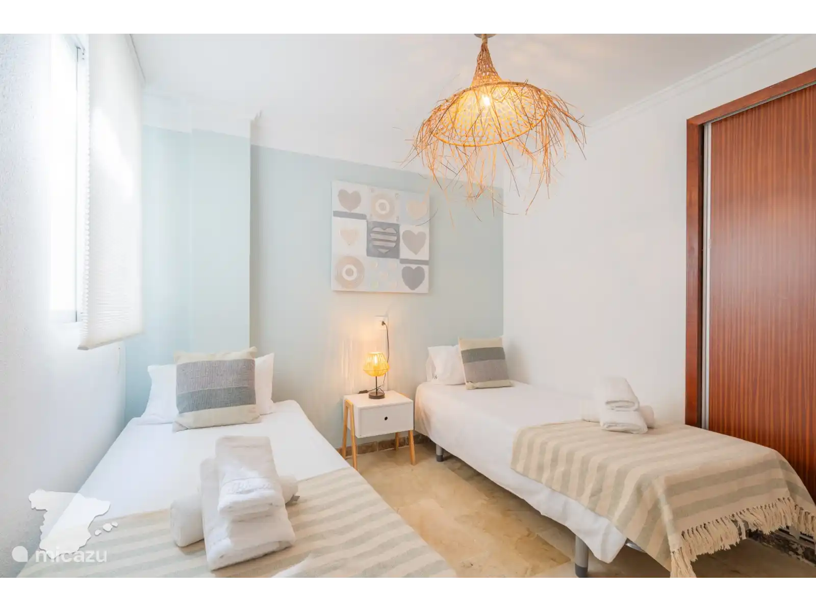 Geniet van een rustgevend verblijf in de goed ingerichte slaapkamers, waarvan één met een knus tweepersoonsbed en de andere met twee comfortabele eenpersoonsbedden. Het appartement beschikt voor uw gemak over twee badkamers. De hoofdbadkamer beschikt over een inloopdouche, toilet en wastafel, terwijl de tweede badkamer is voorzien van een wastafel en toilet.