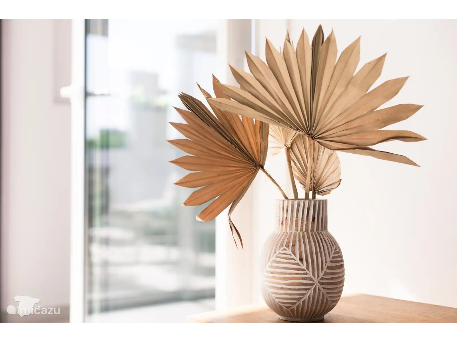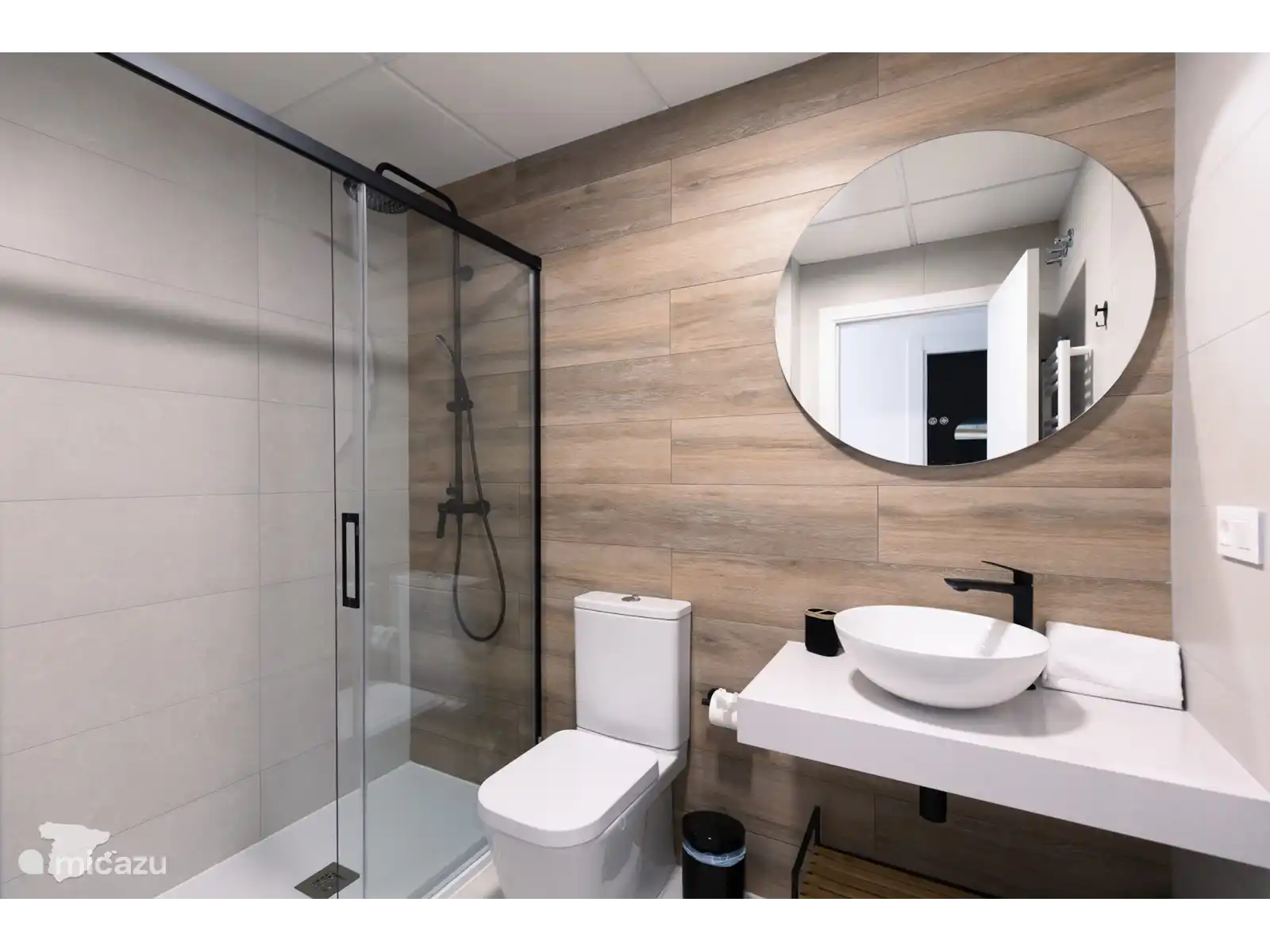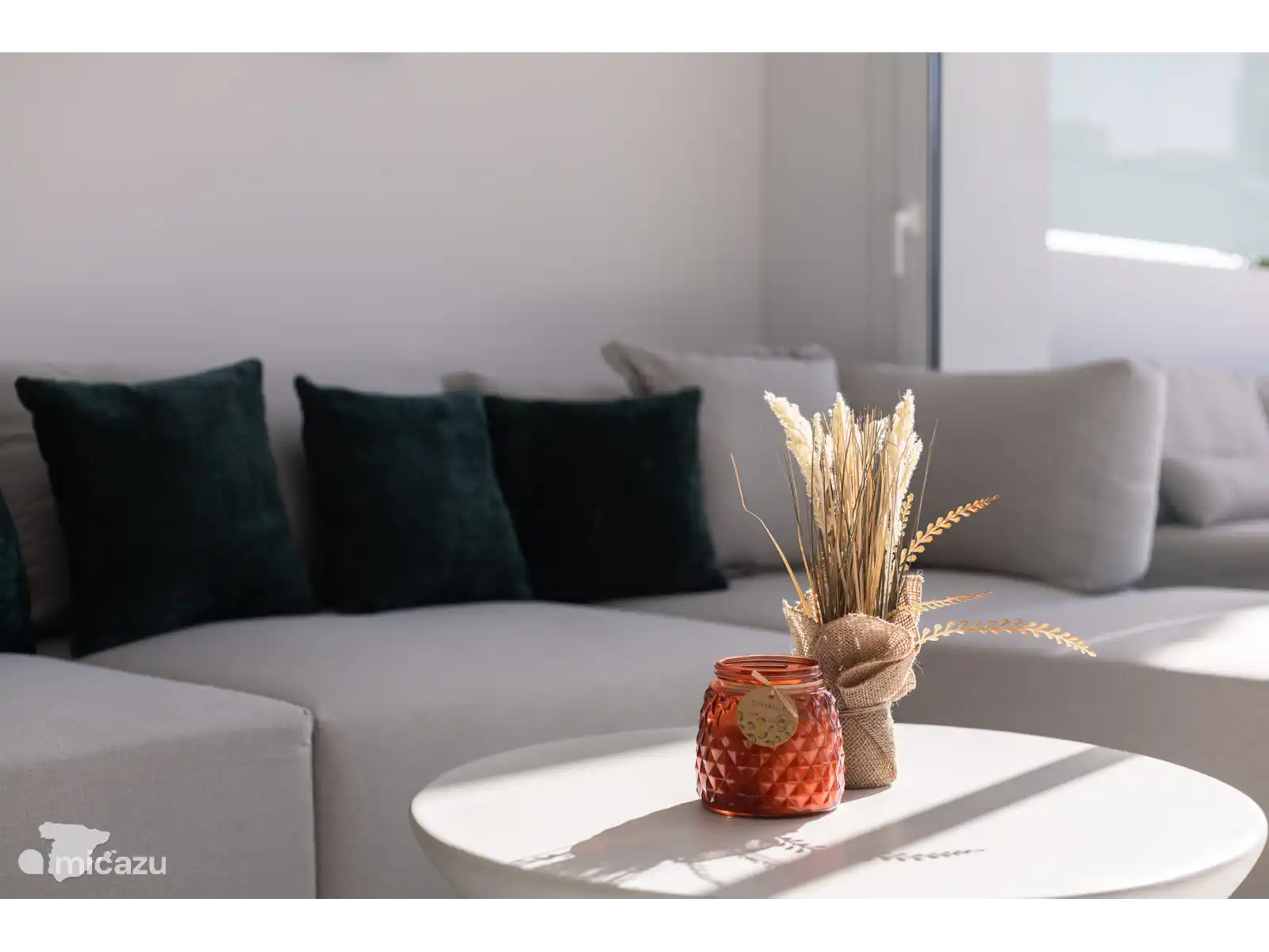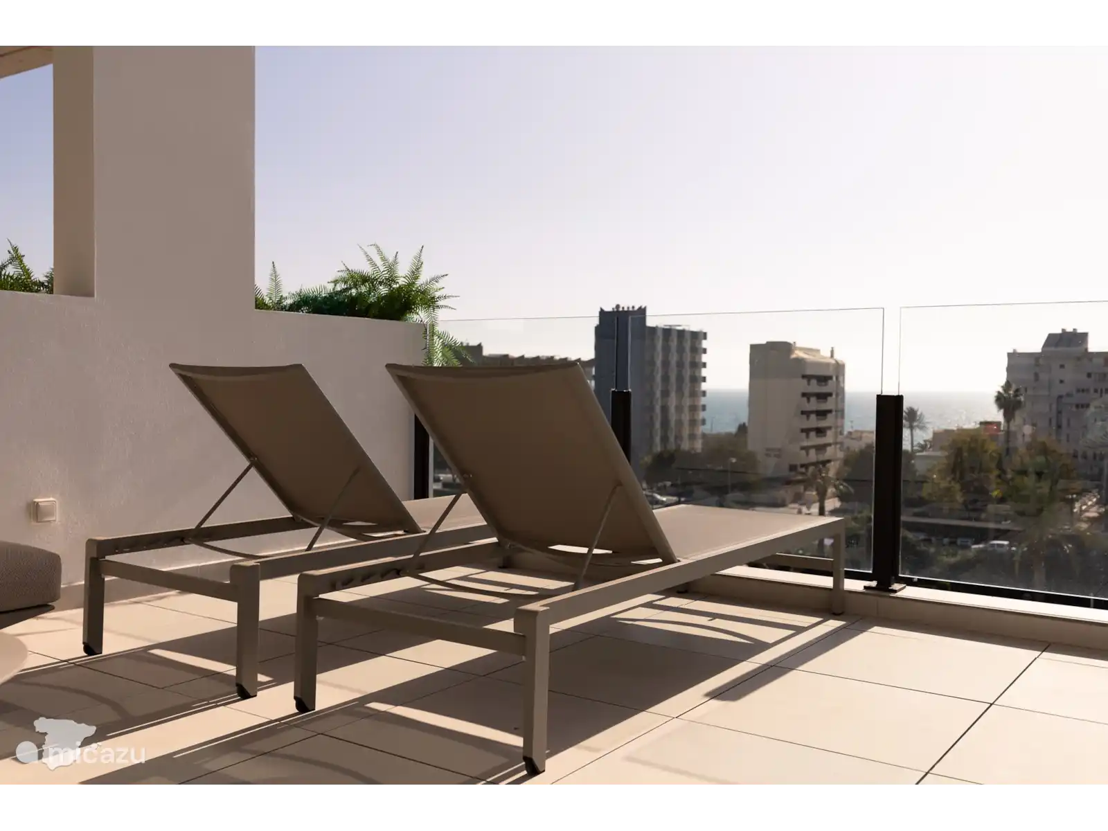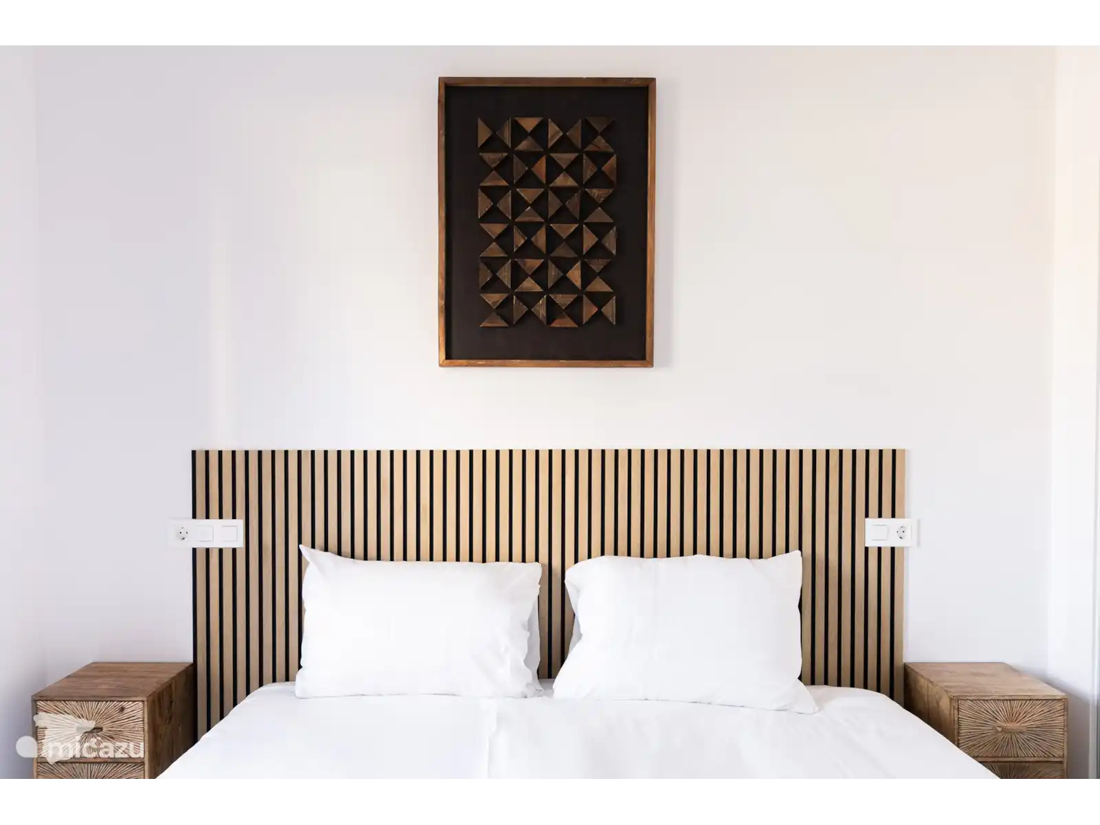 Binnen biedt het appartement drie goed ingerichte slaapkamers met airconditioning en twee moderne badkamers. De master suite dient als een oase van rust, met een comfortabel tweepersoonsbed, voldoende kastruimte, een smart-tv en een prachtig uitzicht op zee. De ensuite badkamer is voorzien van dubbele wastafels, een luxe douche en een toilet. De tweede en derde slaapkamer hebben beide twee eenpersoonsbedden en kastruimte. Een aparte badkamer verderop in de gang biedt extra gemak, met een douche, wastafel en toilet. Voor extra praktisch gemak is er ook een bijkeuken met een wasmachine.
