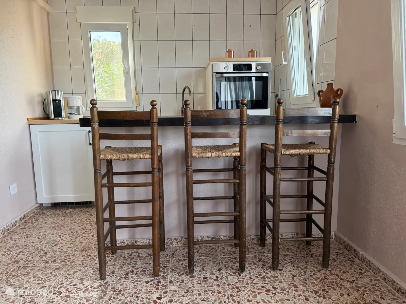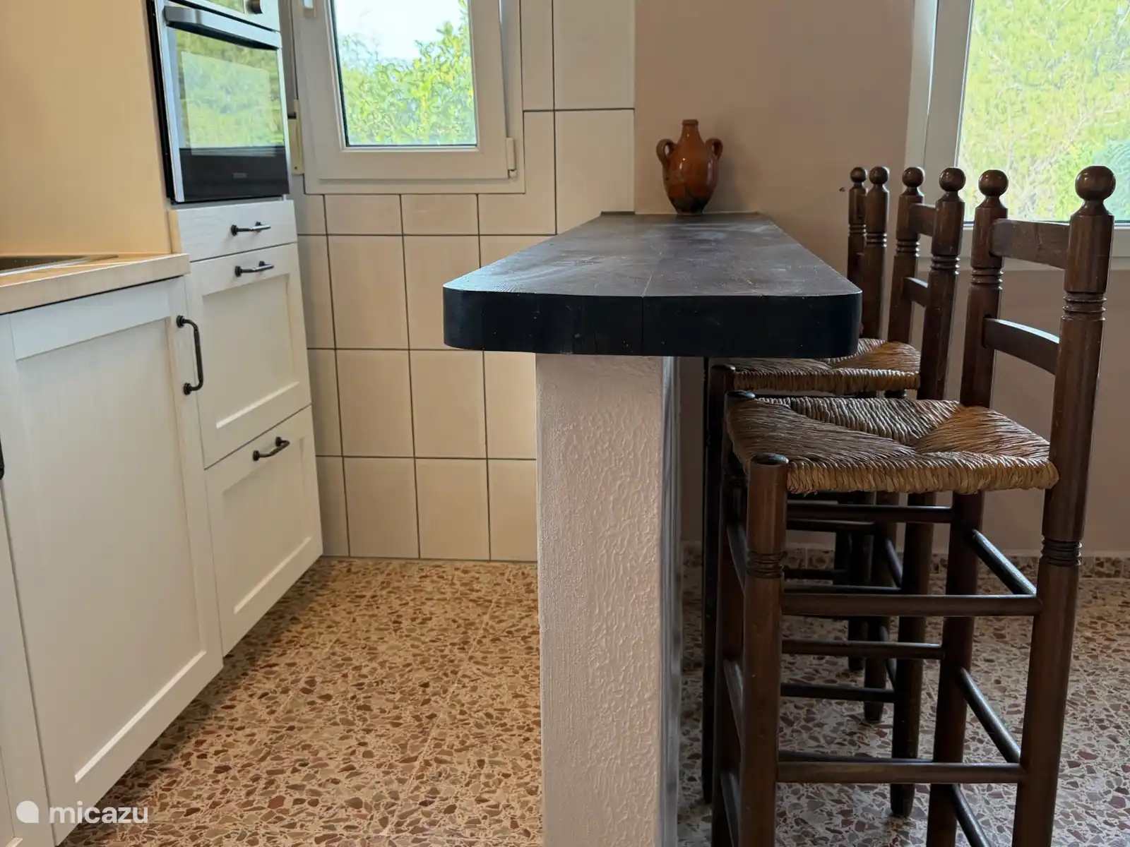 Lichte woonkamer en volledig ingerichte keuken