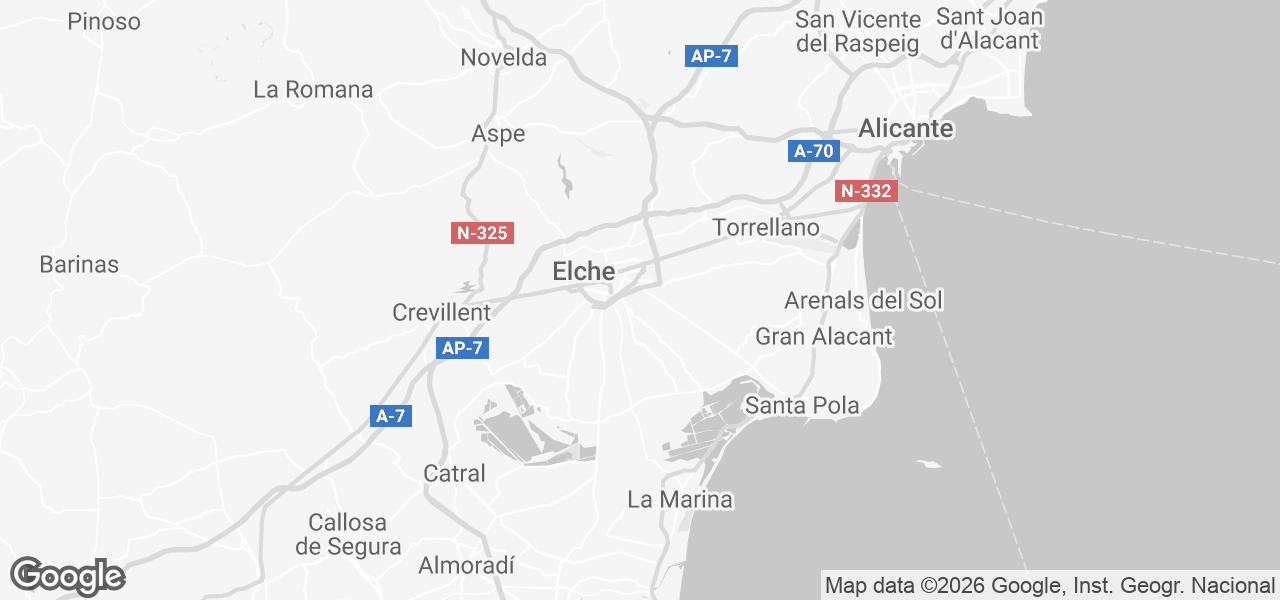 Het ligt op 11 km van de Middellandse Zee. 2 km van het stadscentrum van Elche. Een stad waarin er twee werelderfgoedlocaties zijn.