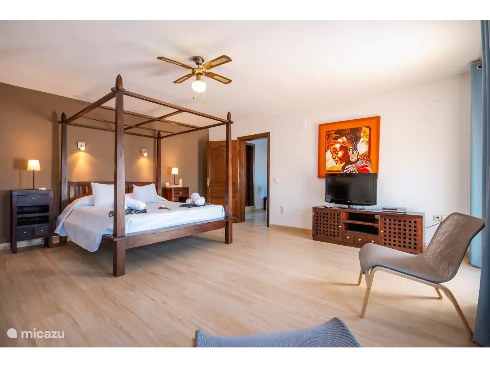 - Slaapkamer met queensize bed (van 200 x 160cm)