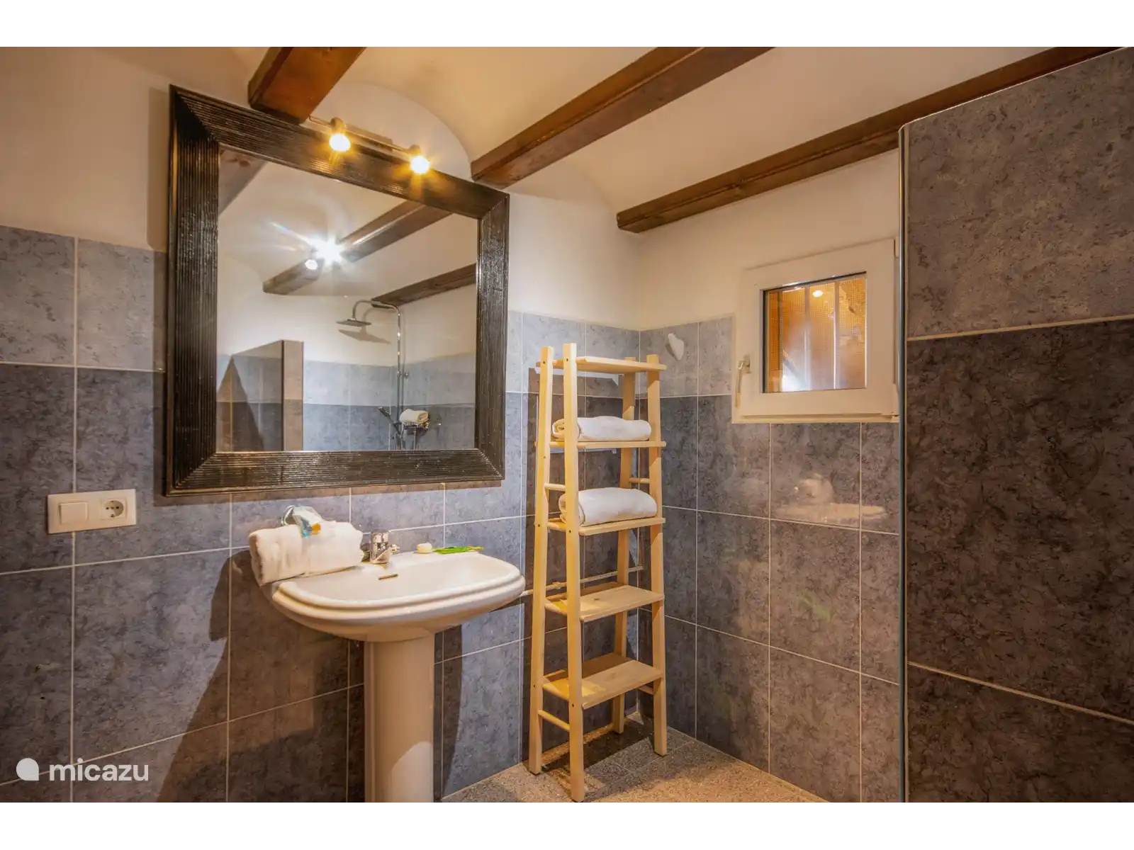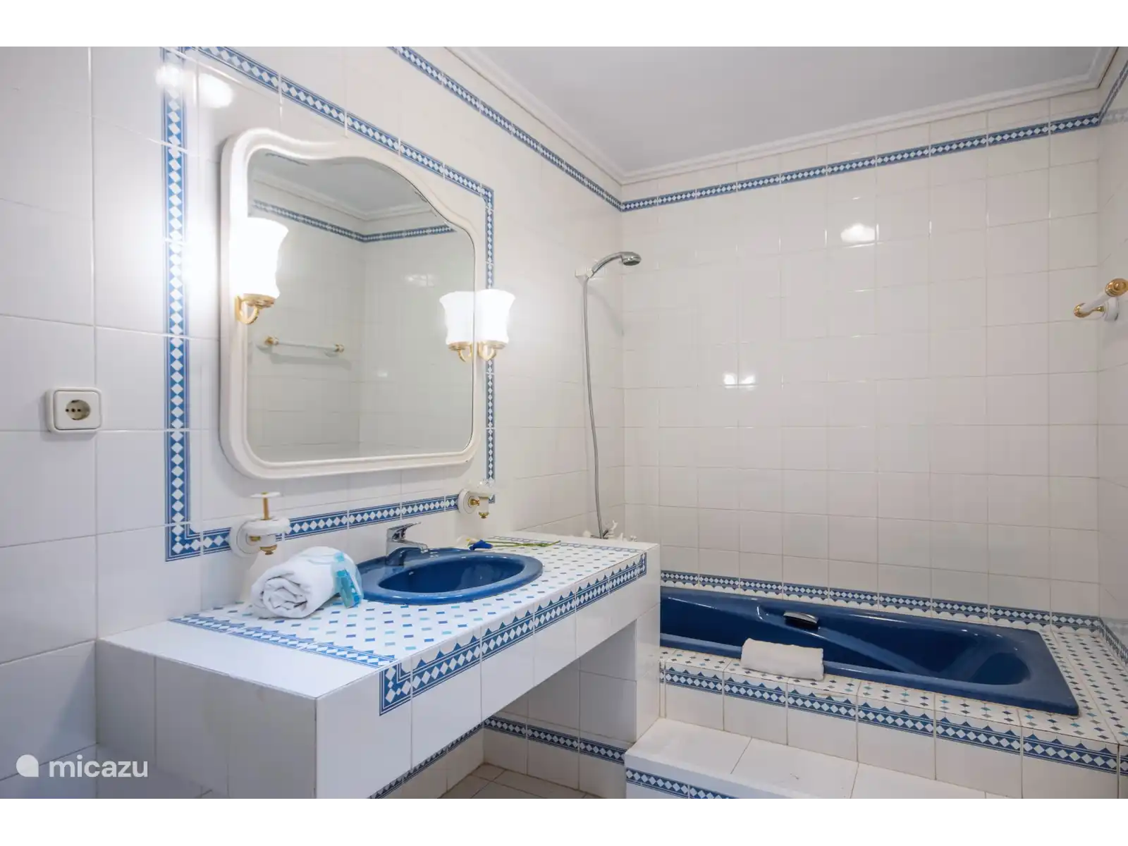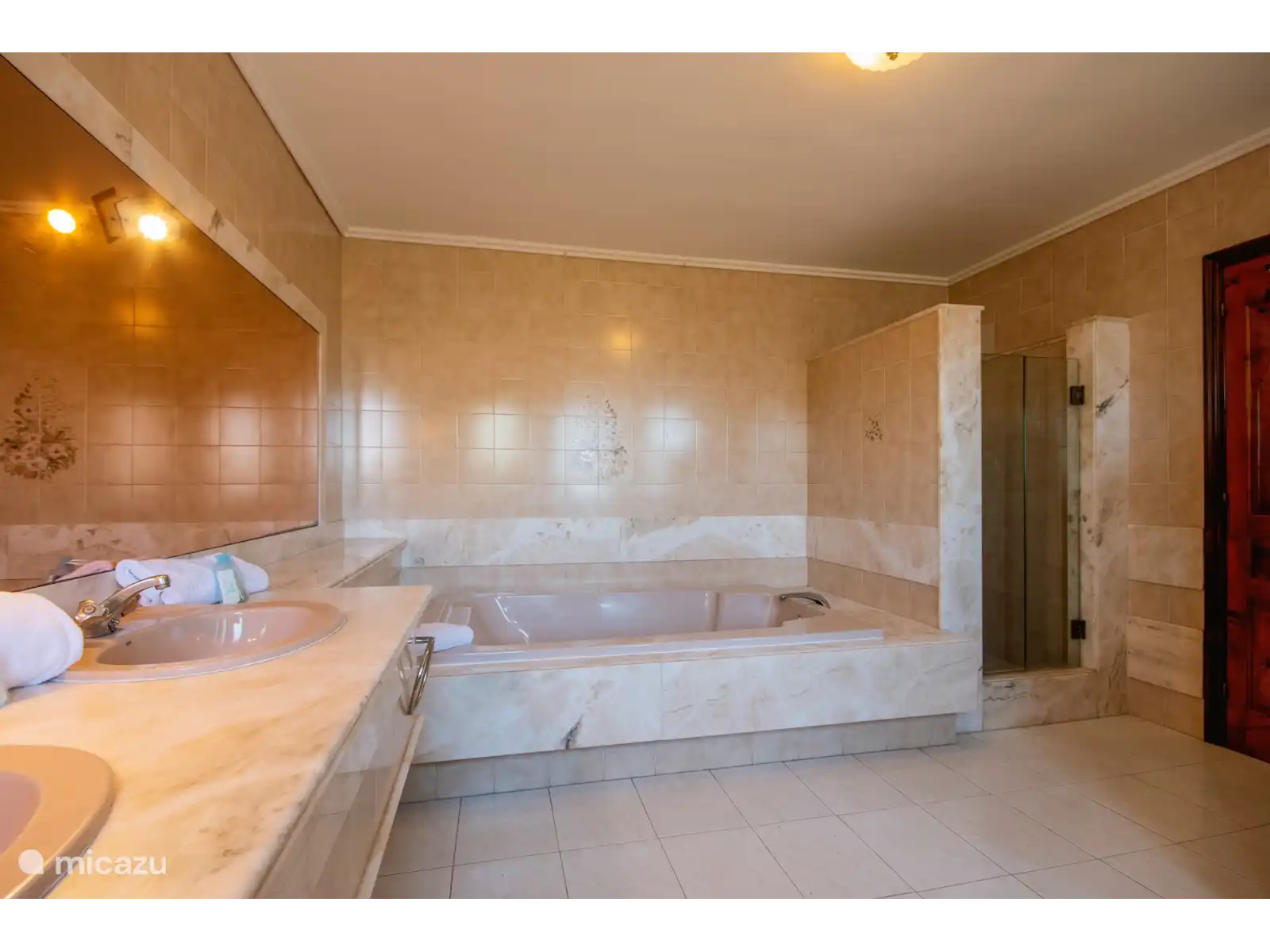 - 2 badkamers ensuite, elk met een enkele wastafel, douche, bidet en toilet
