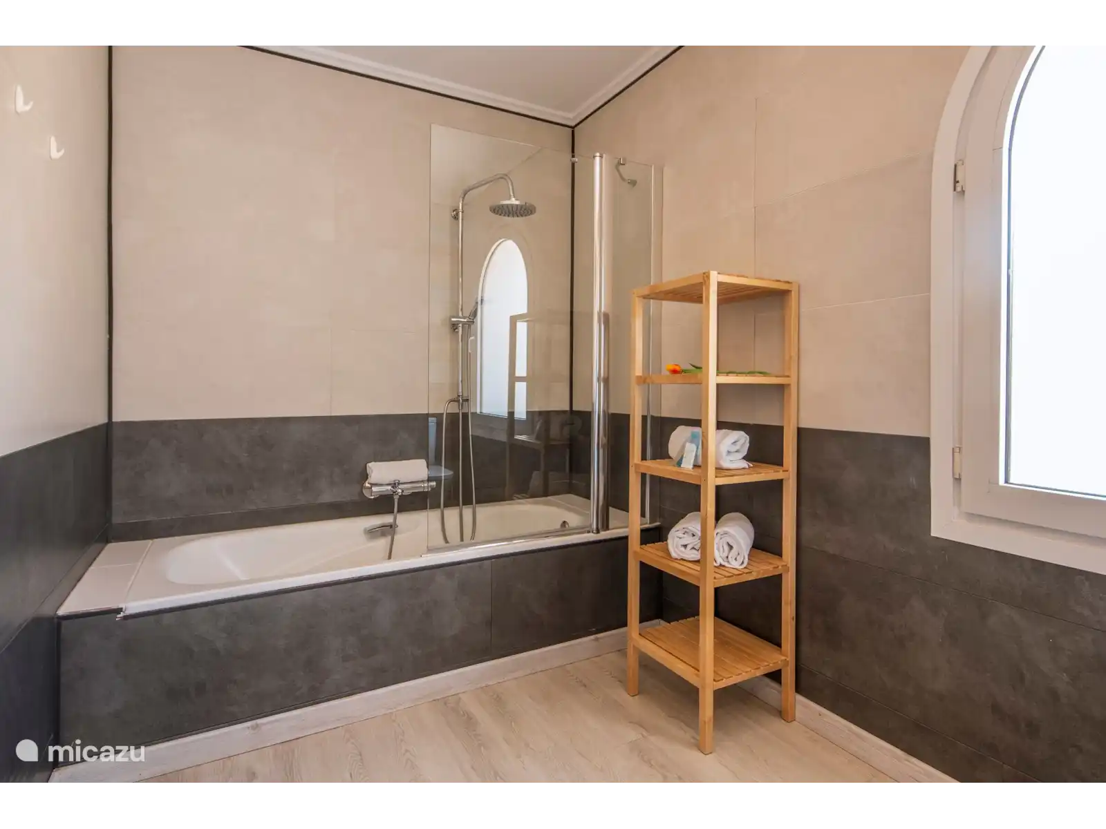 - ensuite badkamer met enkele wastafel, ligbad, douche en toilet