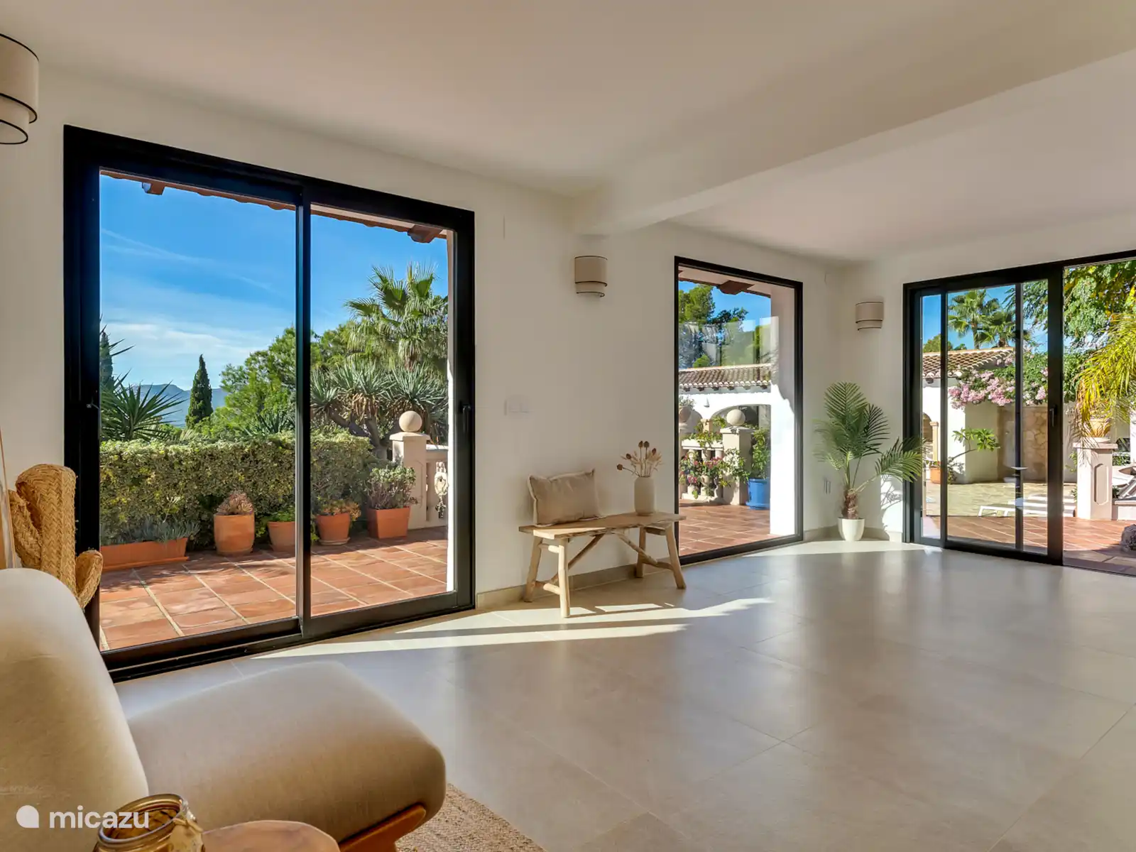 De villa ligt op het zuiden, in een rustige woonwijk; Met een prachtig 180 graden uitzicht over de vallei en de bergen van de Sierra Bernia, heeft het een zeer aangename tuin van 20 are met fruitbomen. De buitenruimtes zijn perfect ingericht om te ontspannen: verschillende overdekte buitenterrassen, prachtig zwembad met buitendouche, jeu de boulesbaan, tafeltennis. Aan de kant van het zwembad heeft het 'naya' terras een loungehoek, eetkamer en een volledig uitgeruste keuken (een grote oven (120cm), koelkast en vaatwasser, bar). Er is ook een barbecue (gas).