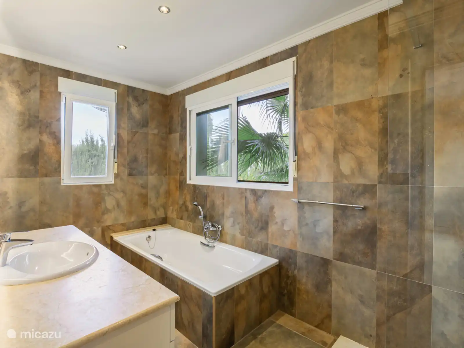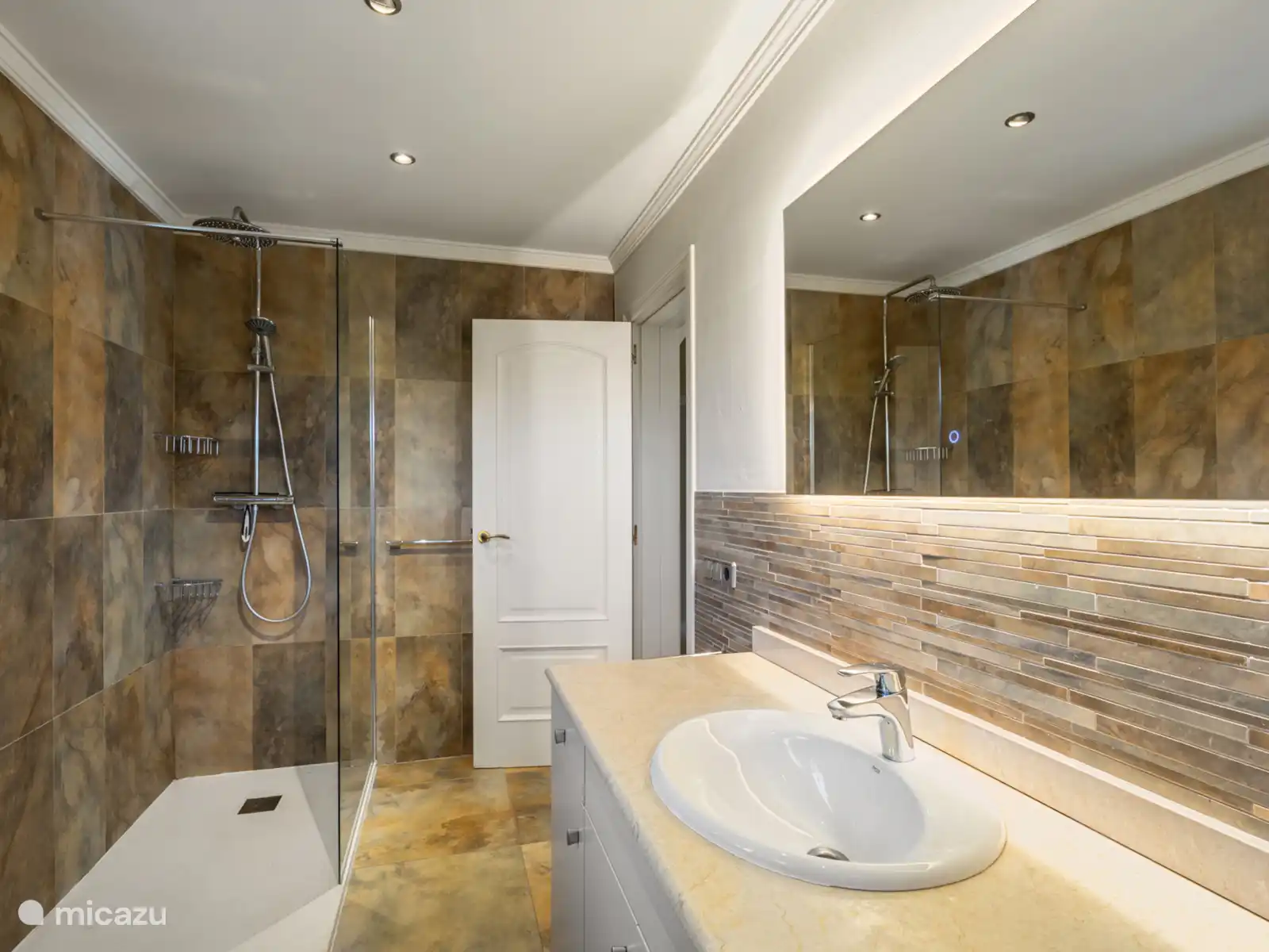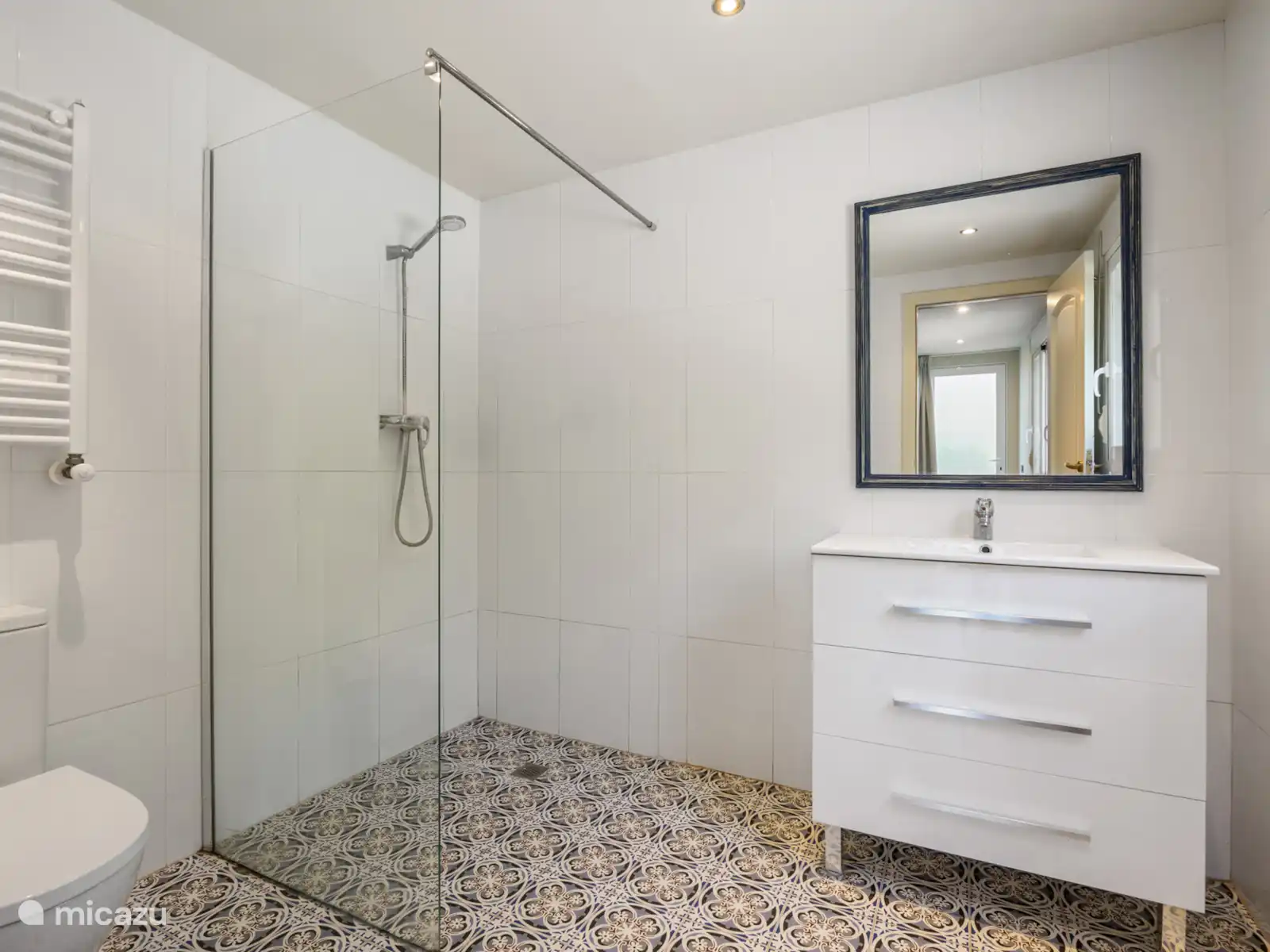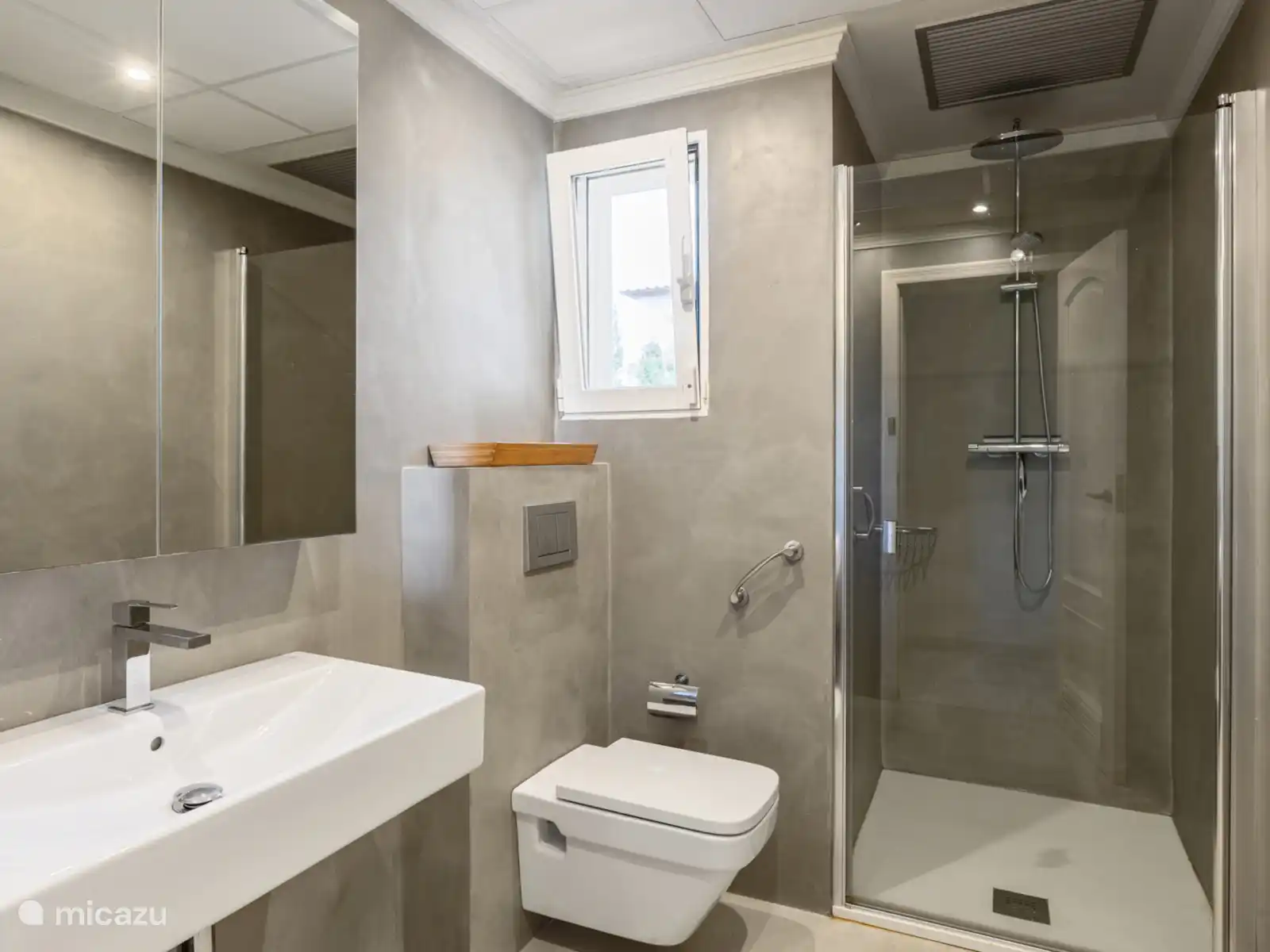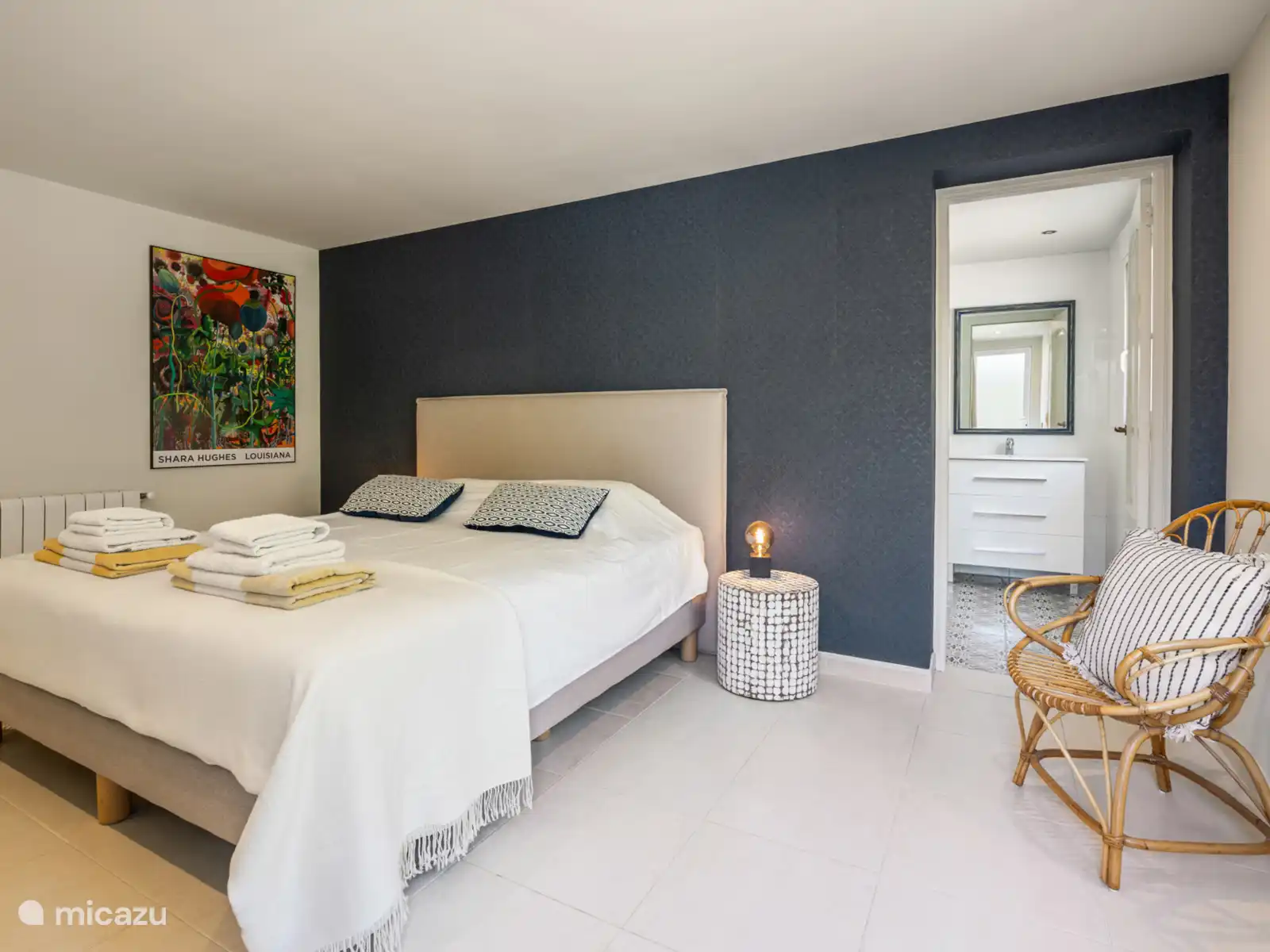 Op de aparte benedenverdieping bevindt zich nog een ruime tweepersoonsslaapkamer met eigen badkamer en buitenterras.