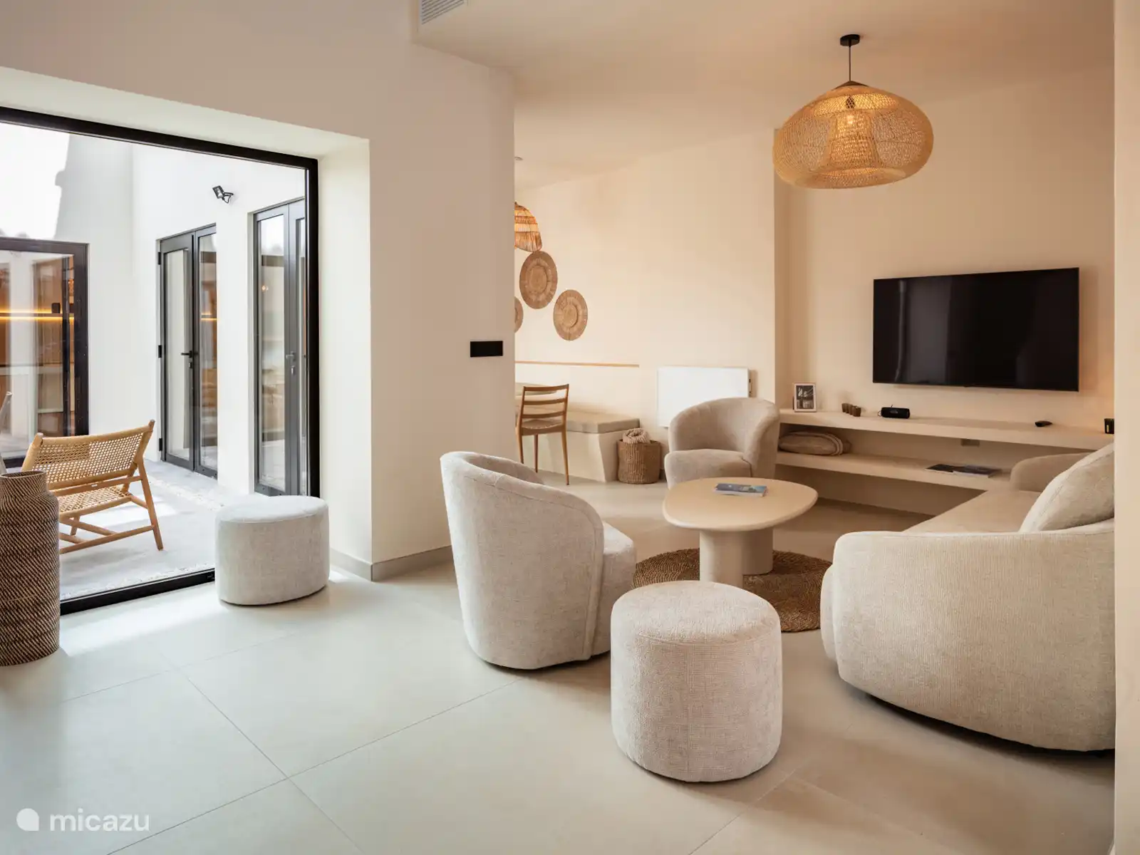 Het huis beschikt over drie slaapkamers met eigen en-suite badkamers, een gezellige living, een volledig uitgeruste keuken en een open eethoek. Vanuit de begane grond heb je toegang tot een sfeervolle patio, een rustige buitenruimte midden in het huis.