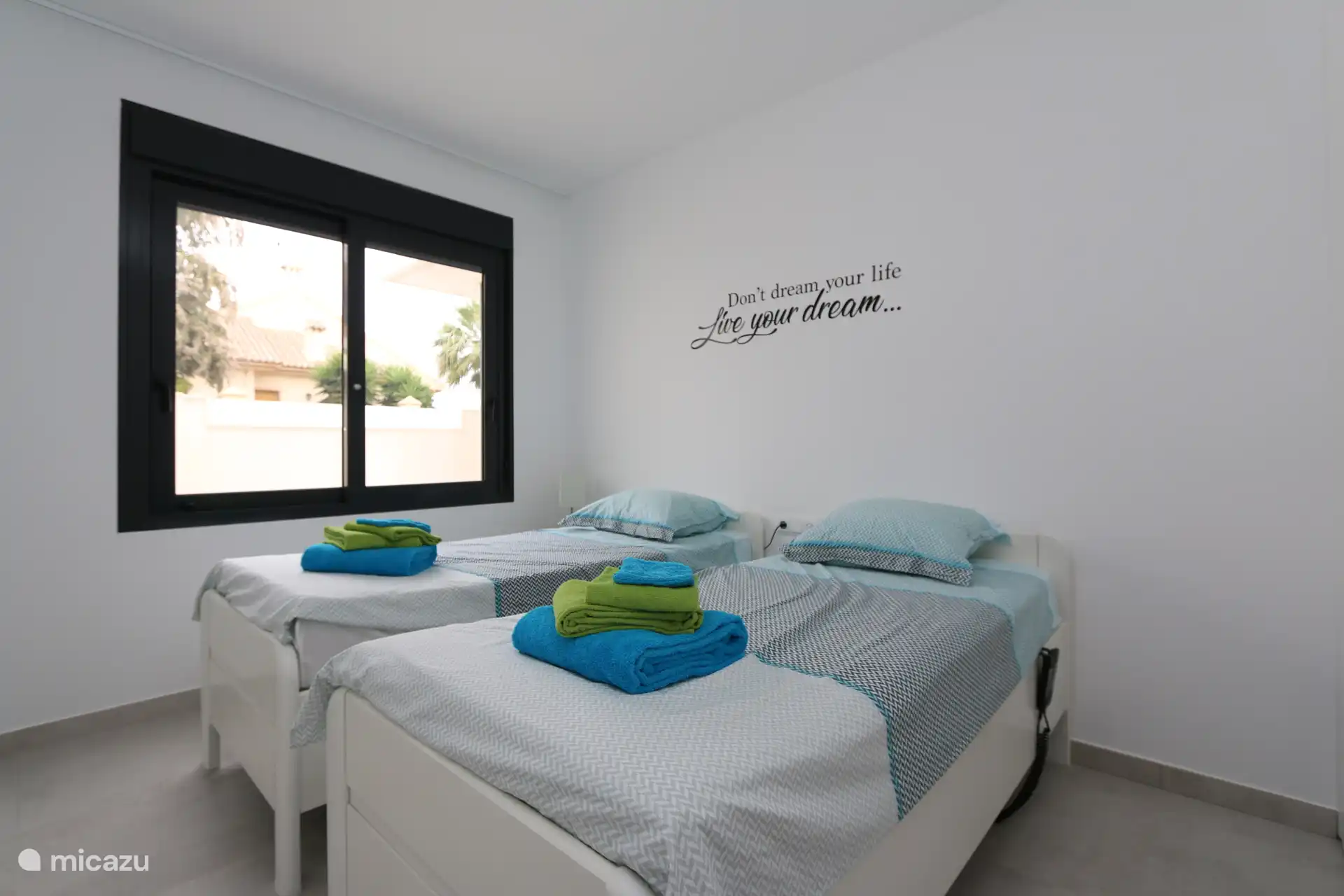 De hoofdslaapkamer heeft een tweepersoonsbed, ingebouwde kasten en een en-suite badkamer met tropische regendouche. De tweede slaapkamer heeft 2 eenpersoonsbedden, ingebouwde kasten en een badkamer met bad. Naast de personenlift is er ook een autolift voor een kleine/middelgrote auto, die u naar uw parkeerplaats brengt.