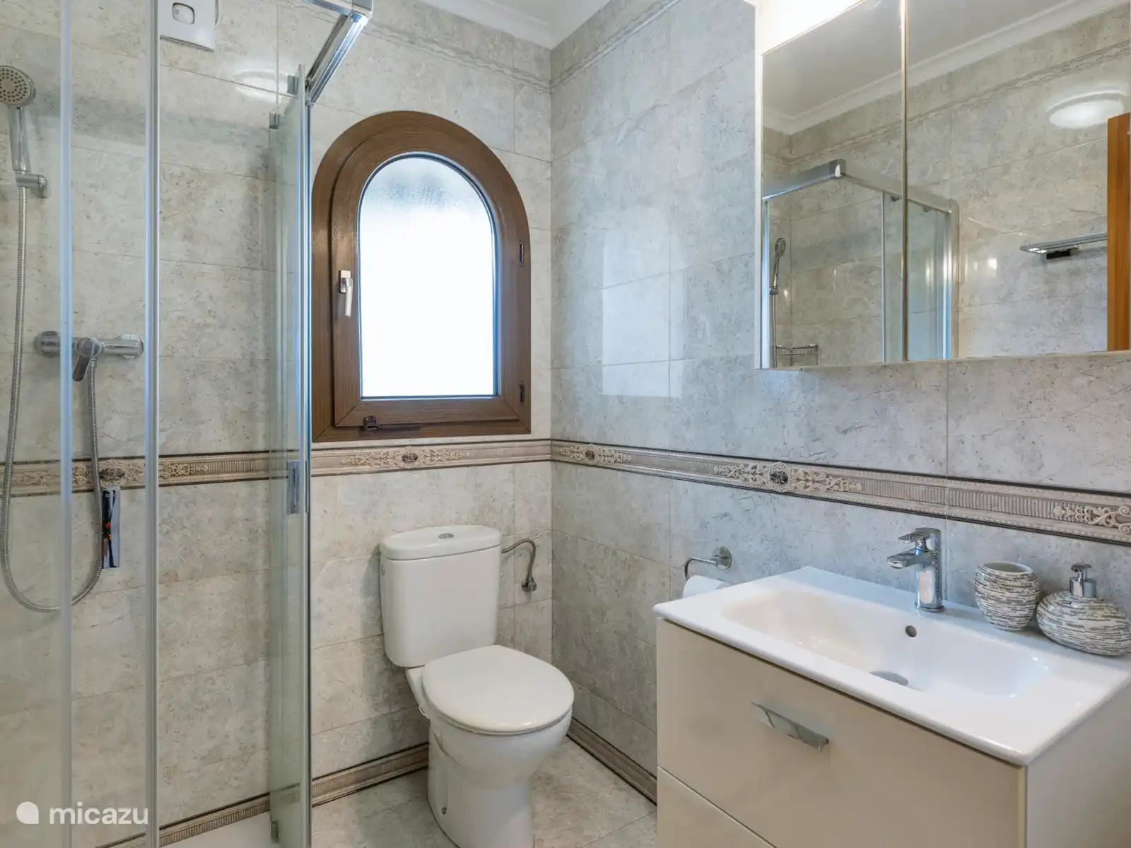 - Een tweede en-suite badkamer met douche, bidet en toilet.