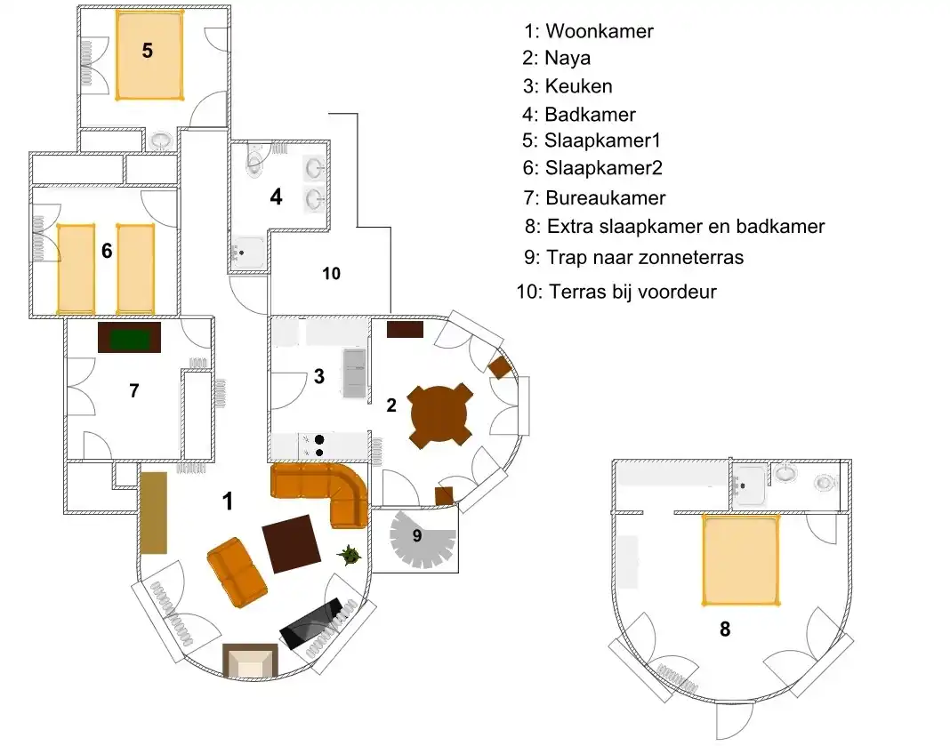 Op dit niveau ook de extra slaapkamer voor 5e persoon met eigen badkamer. (op aanvraag)