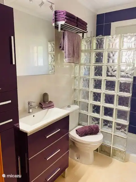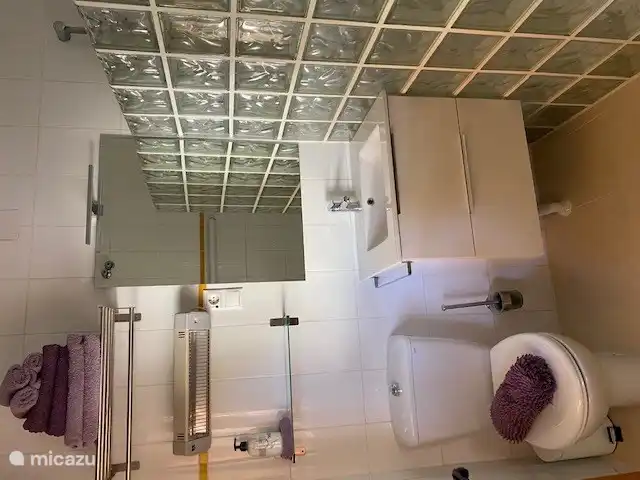 de badkamers hebben beiden instapdouche, badkamermeubel , haardroger