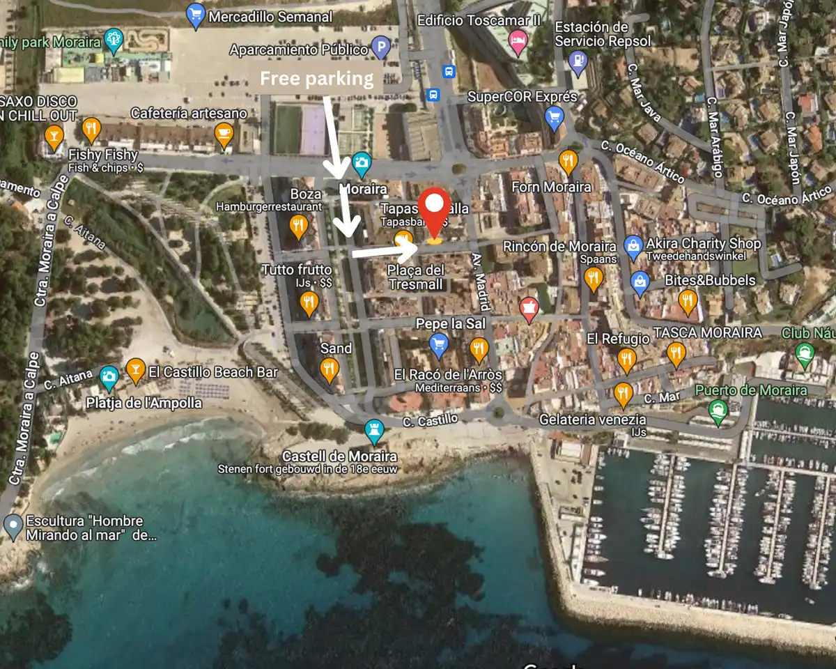 De auto kan je gratis parkeren op het marktplein op 2 minuutjes wandelen van het appartement. Maar je kan ook kiezen om met de bus, van bijvoorbeeld Beniconnect, of per privé transfer te reizen vanaf de